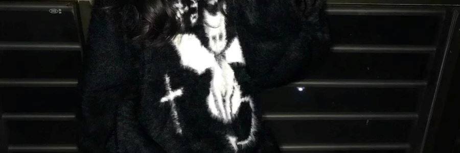 美式復古小惡魔貓咪做舊破洞設計感毛衣女冬季新款水貂毛針織上衣