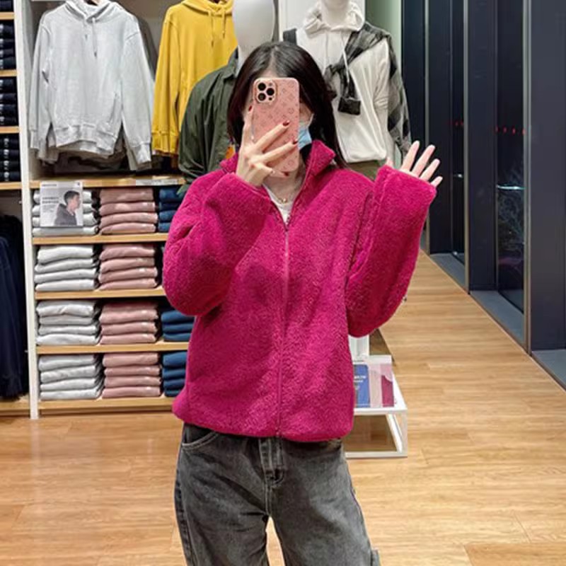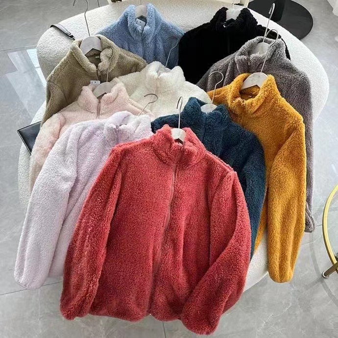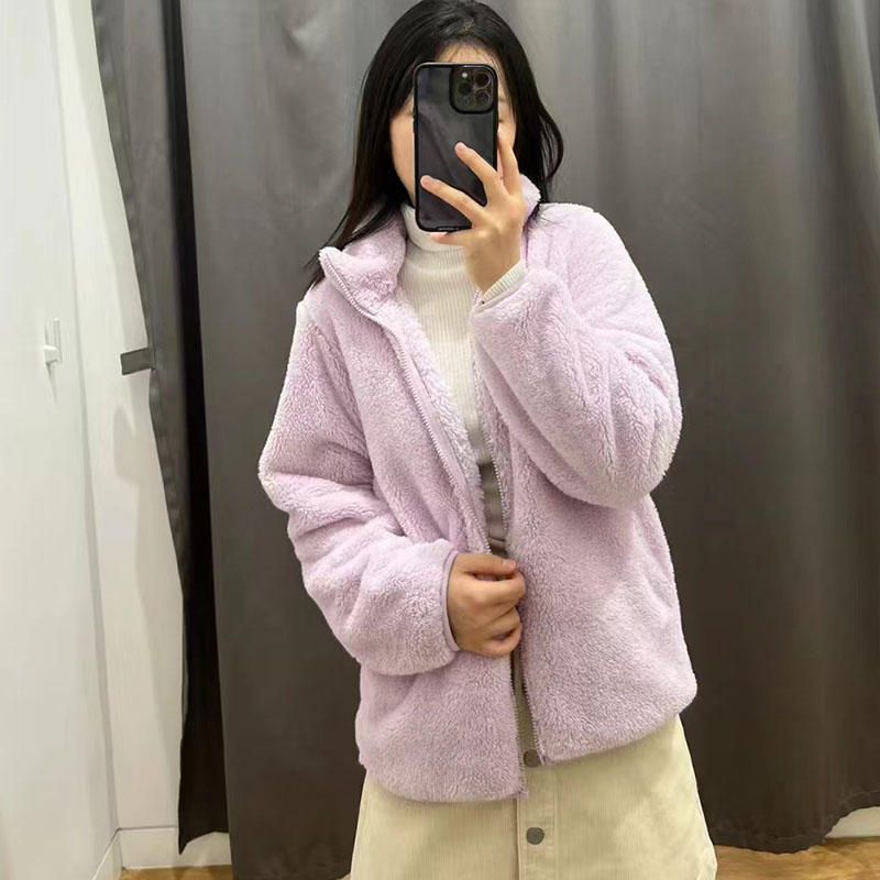 日單秋冬女裝長絨搖粒絨茄克長袖開衫立領保暖外套428330 439138