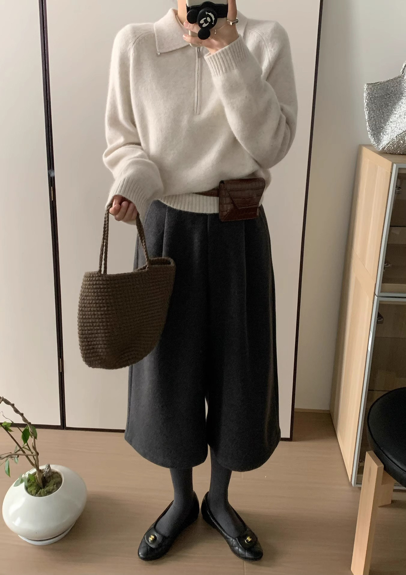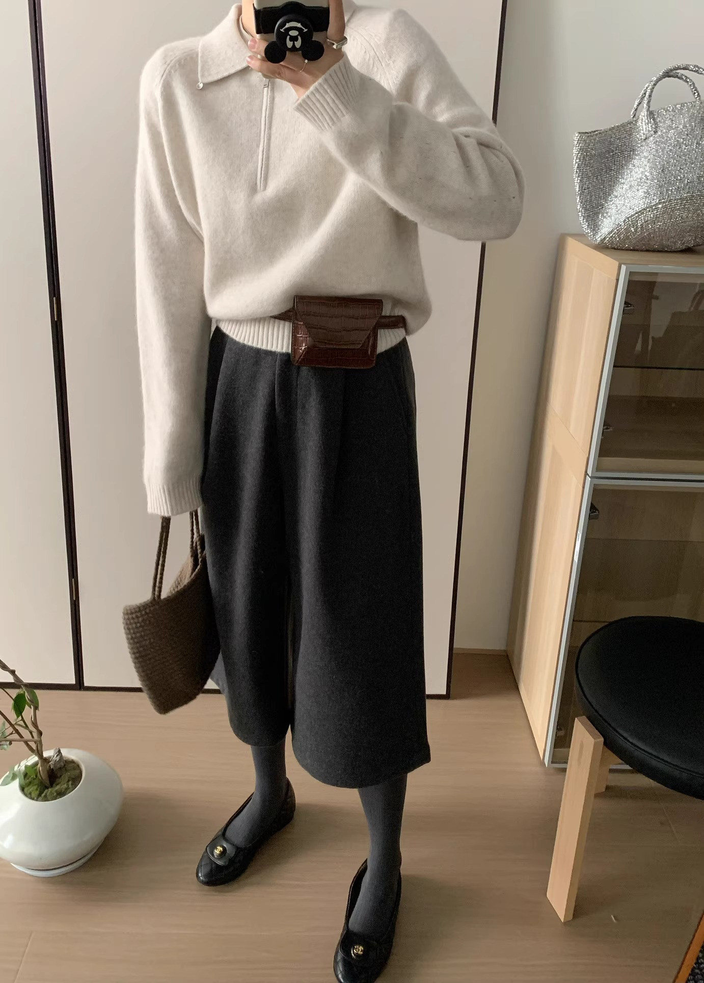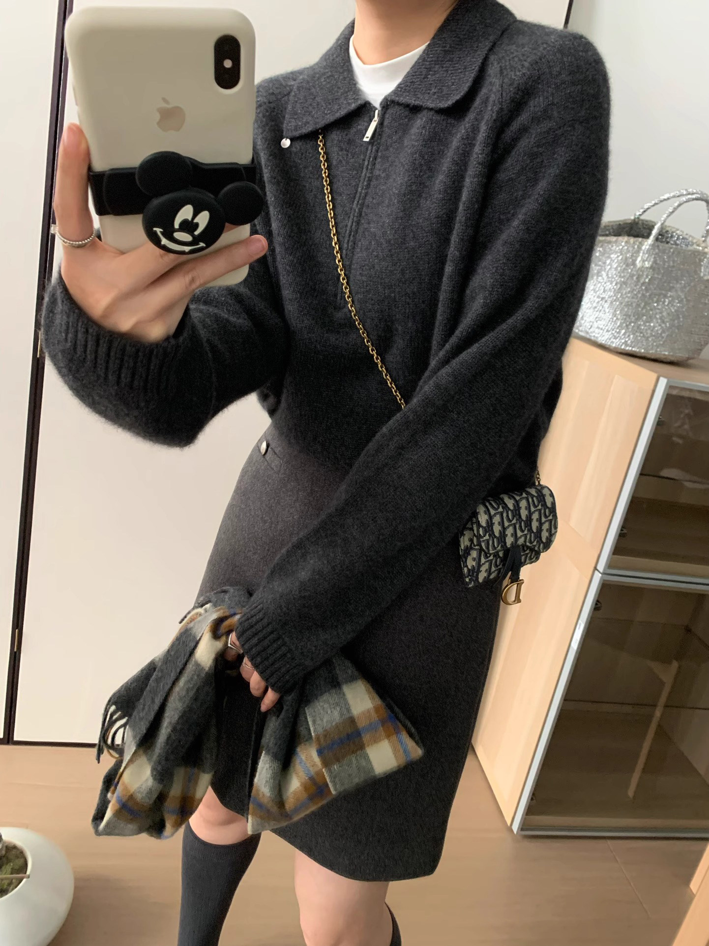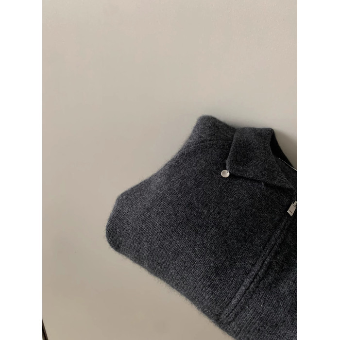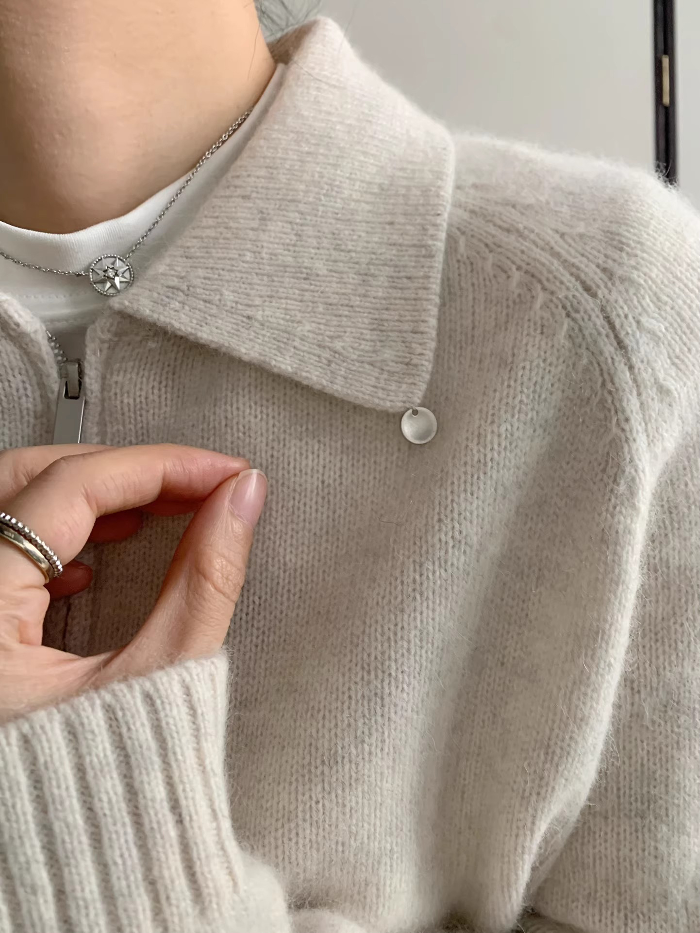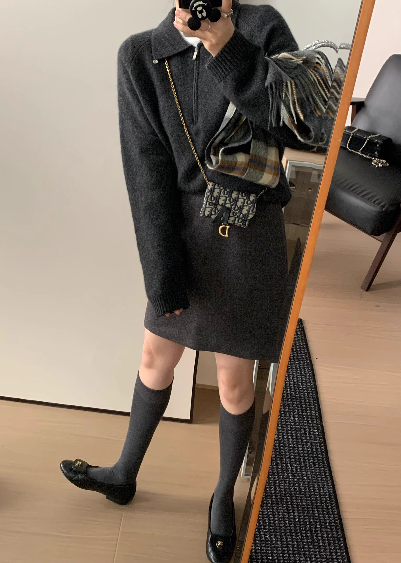 秋冬簡約半拉鍊polo翻領灰色浣熊絨毛衣女內搭針織衫加厚羊毛外穿