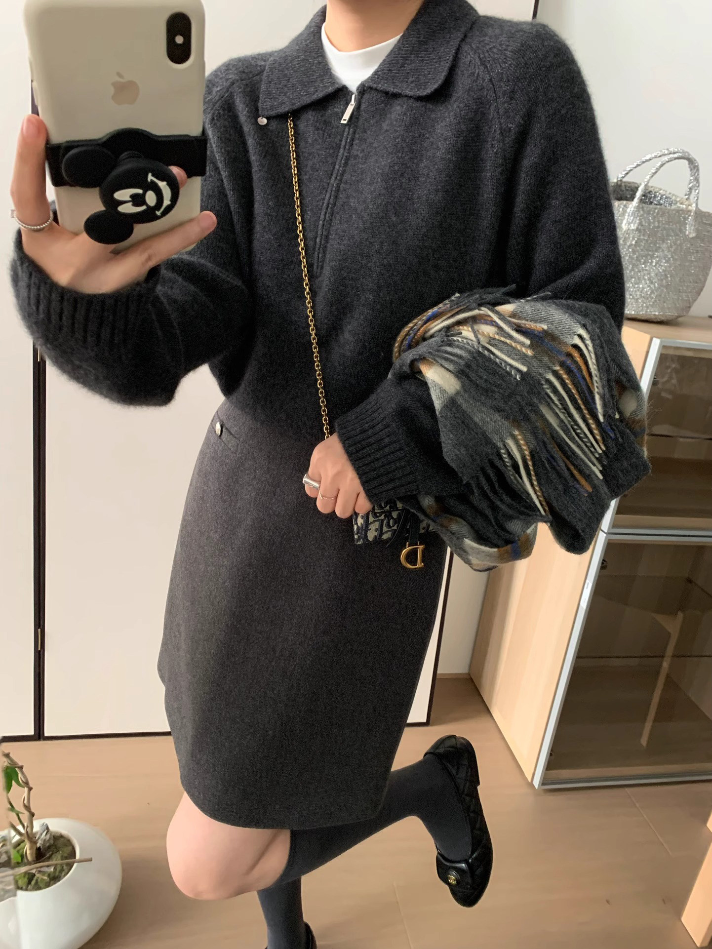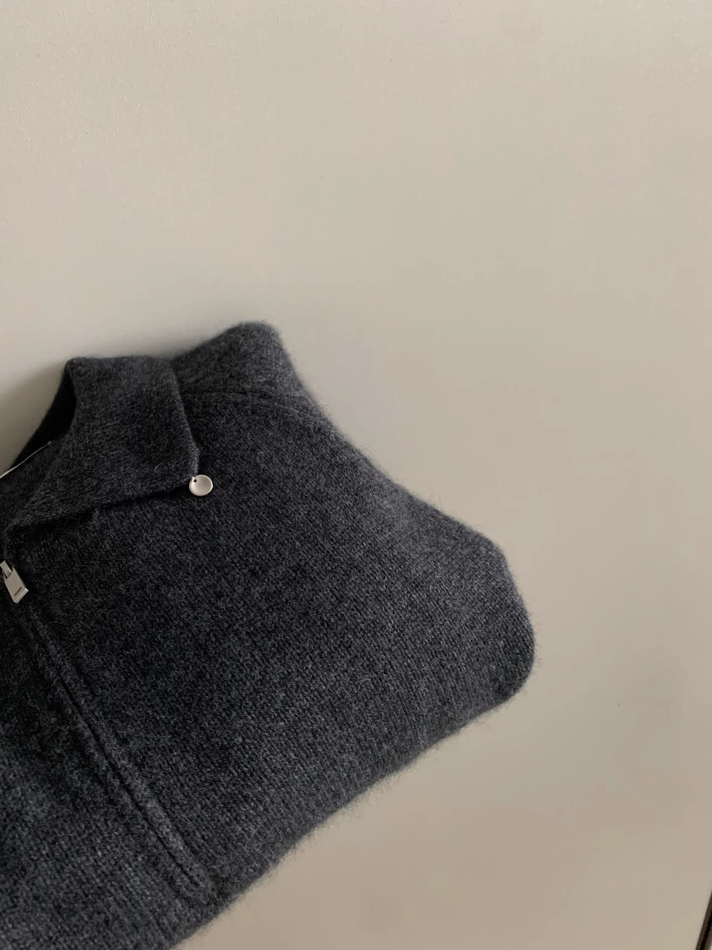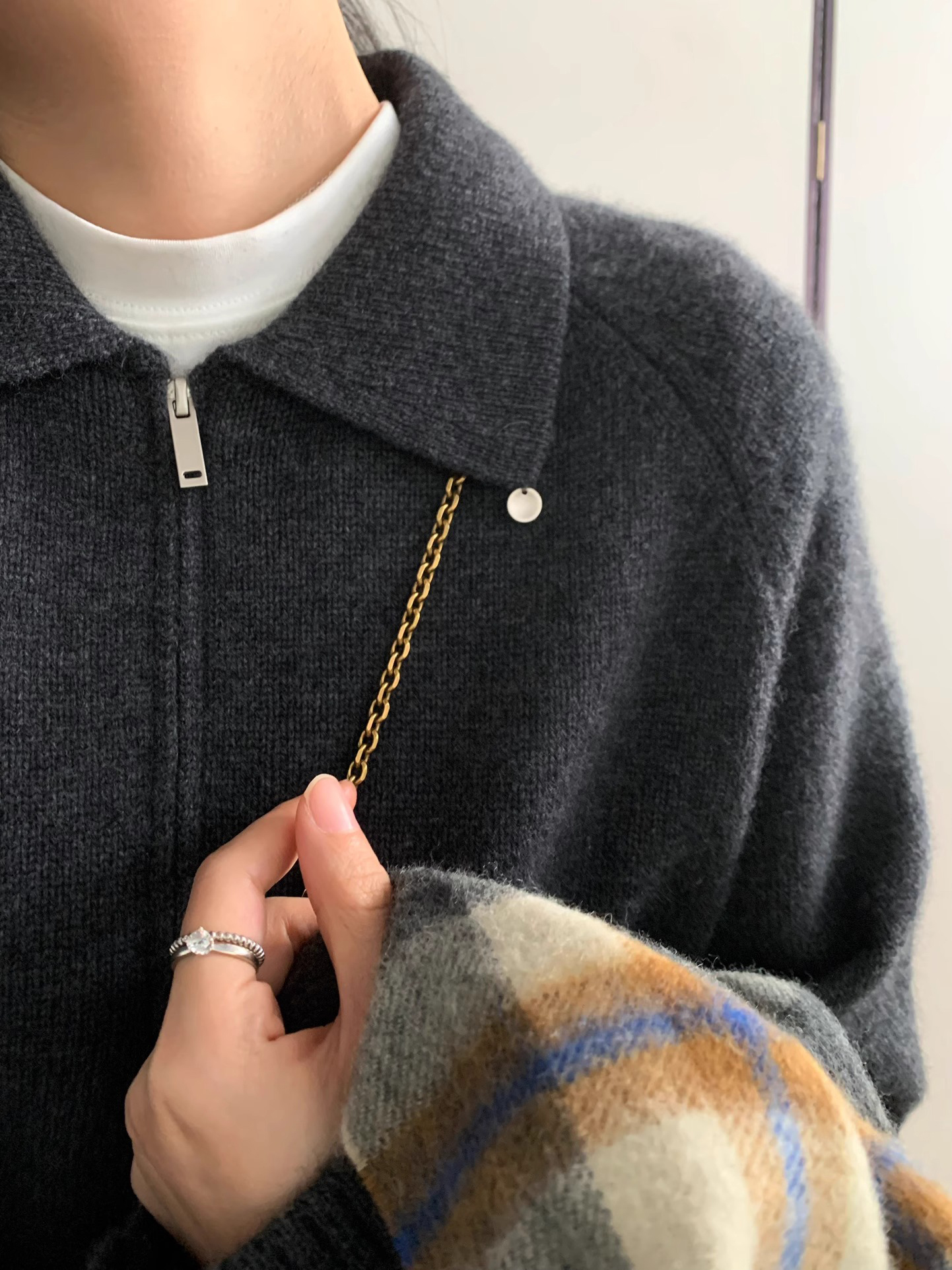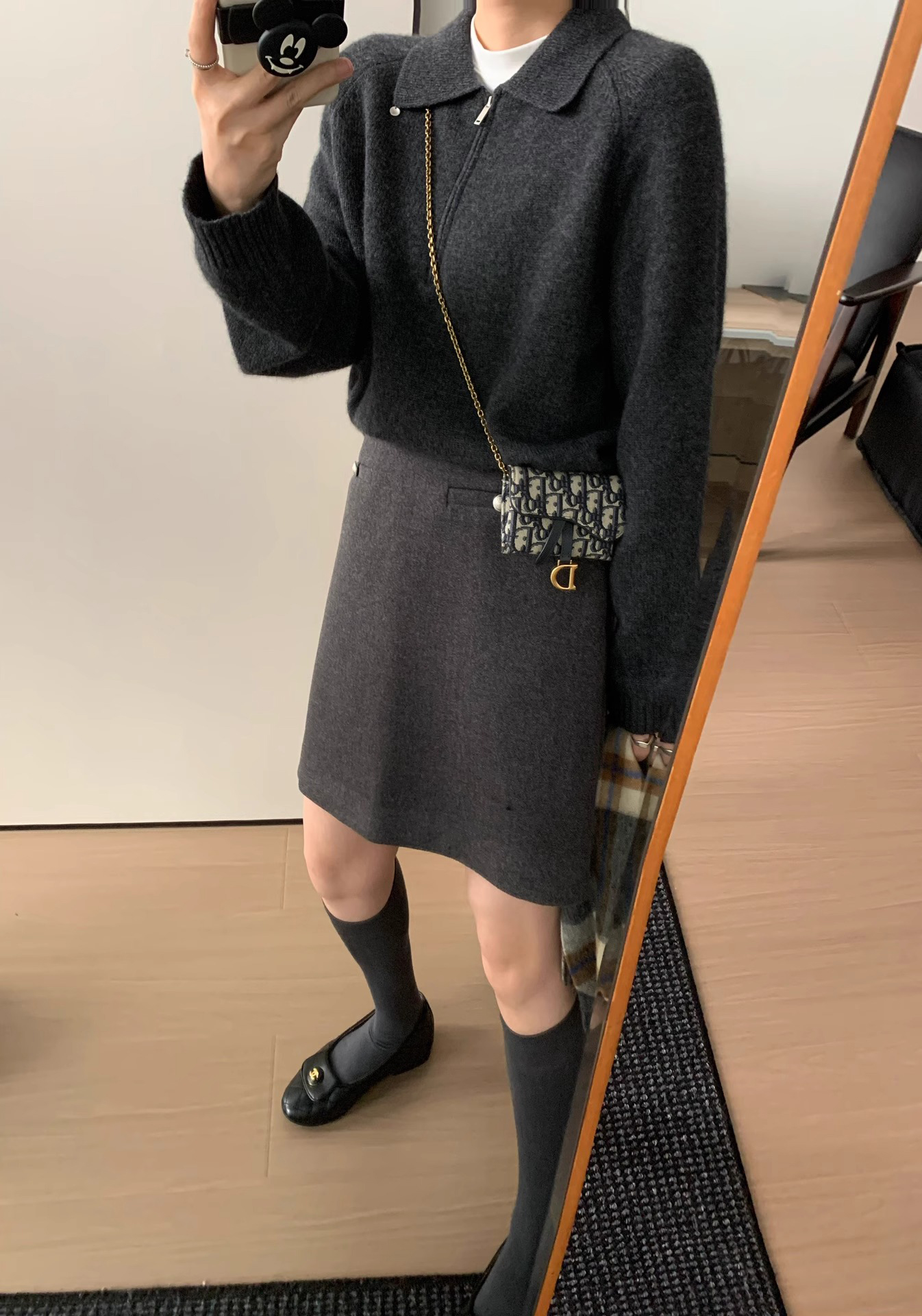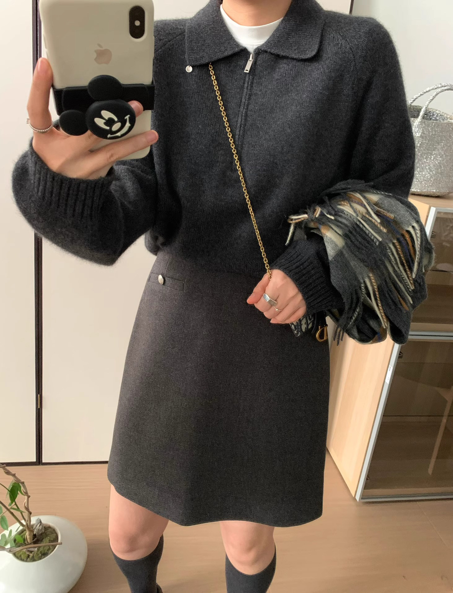 秋冬簡約半拉鍊polo翻領灰色浣熊絨毛衣女內搭針織衫加厚羊毛外穿