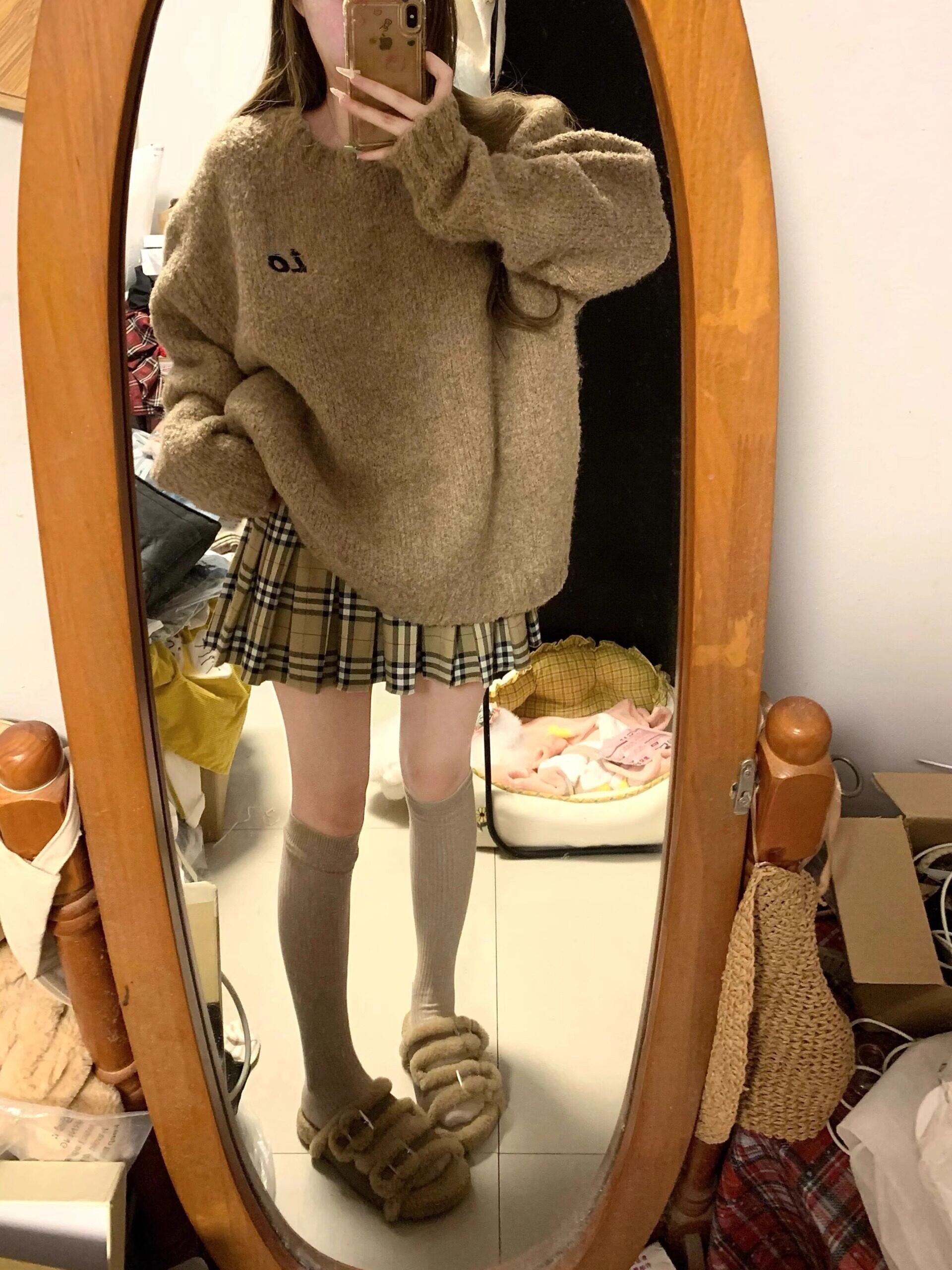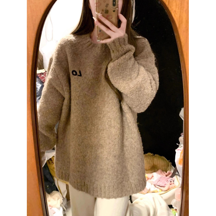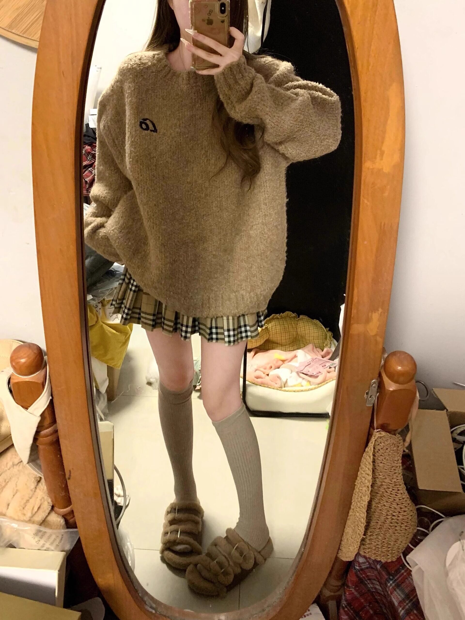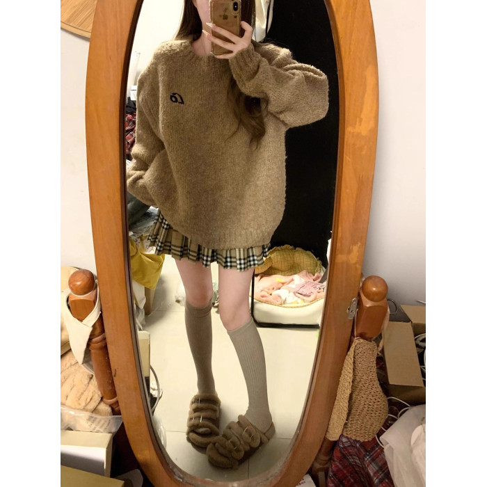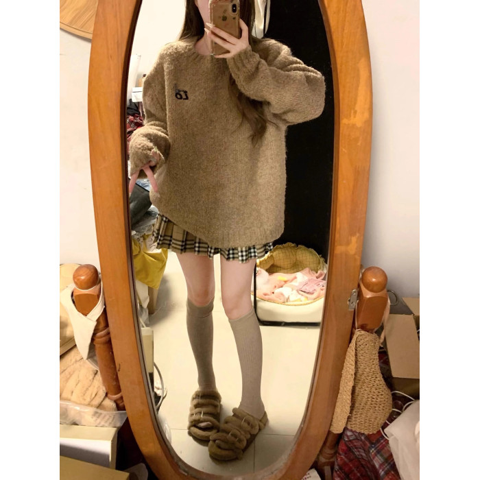 冬季韓系慵懶風棕色套頭毛衣女秋冬季2025新款小個子高級內搭上衣