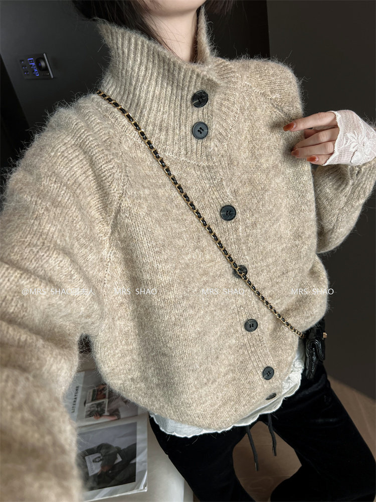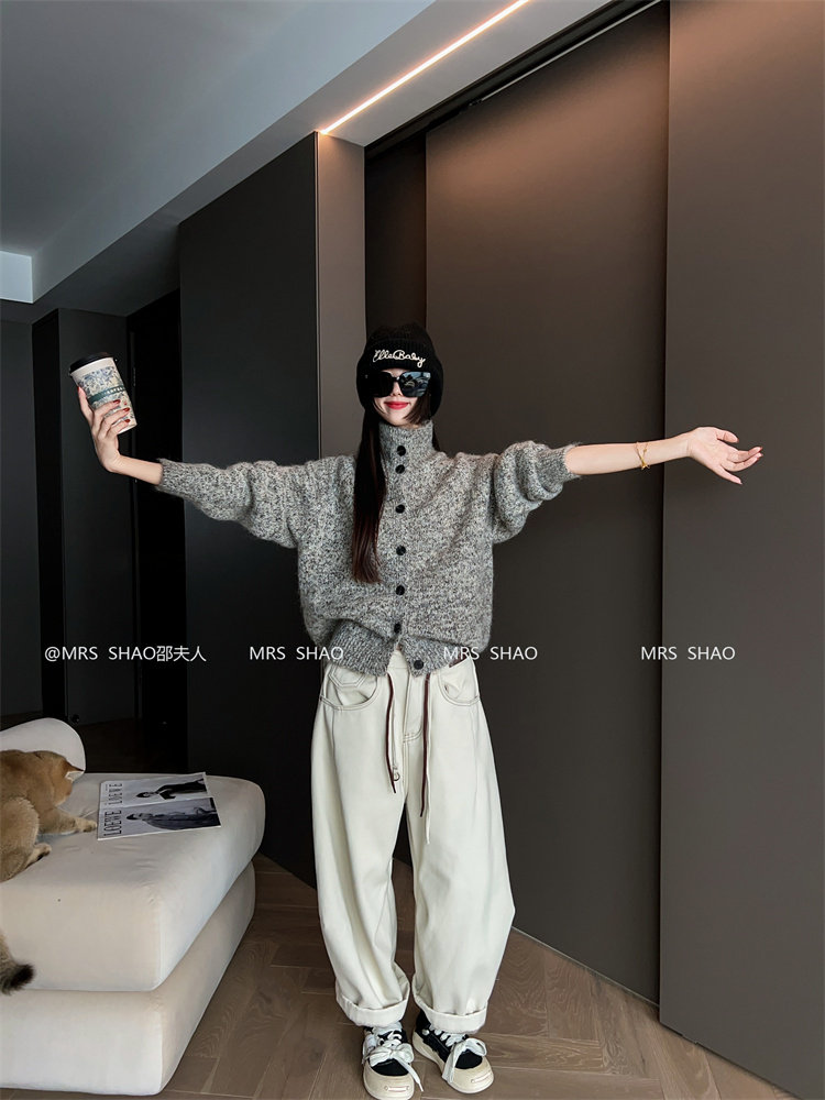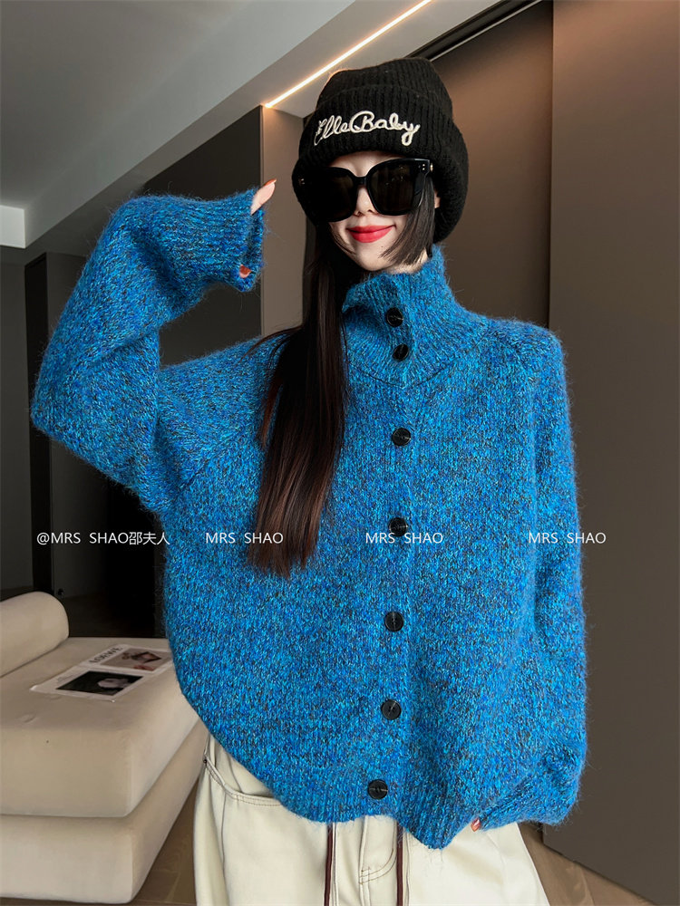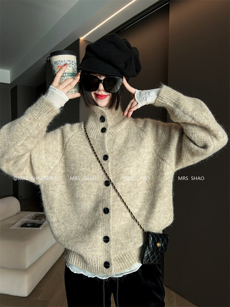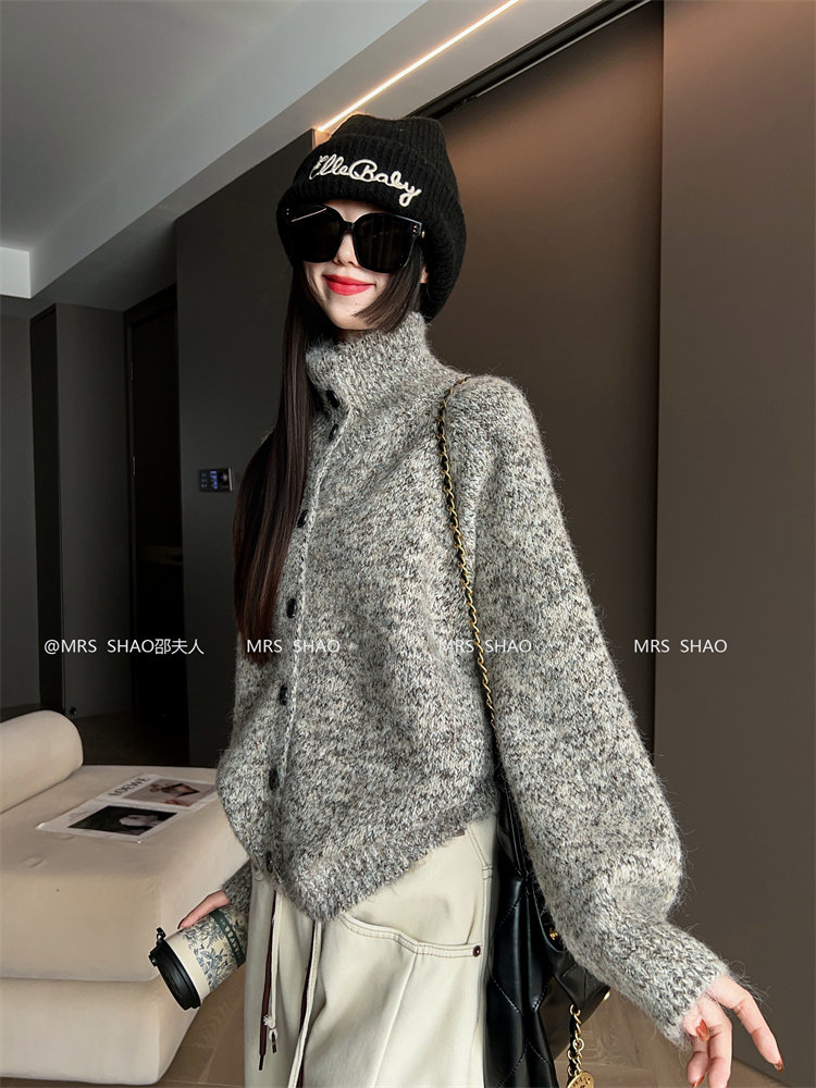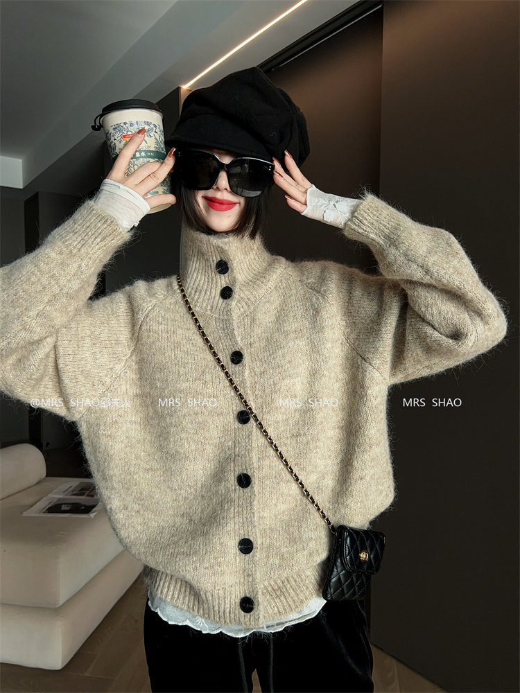 MRS SHAO簡約高領毛衣開衫外套女秋冬2025新款慵嬾松弛感毛線衣潮