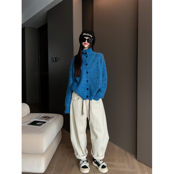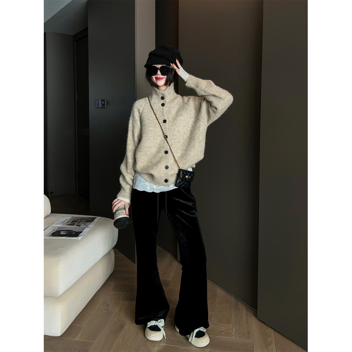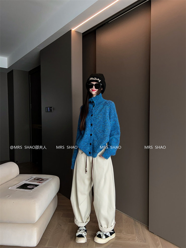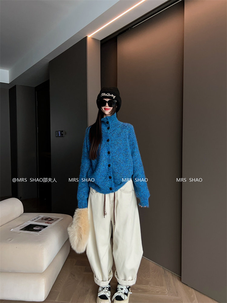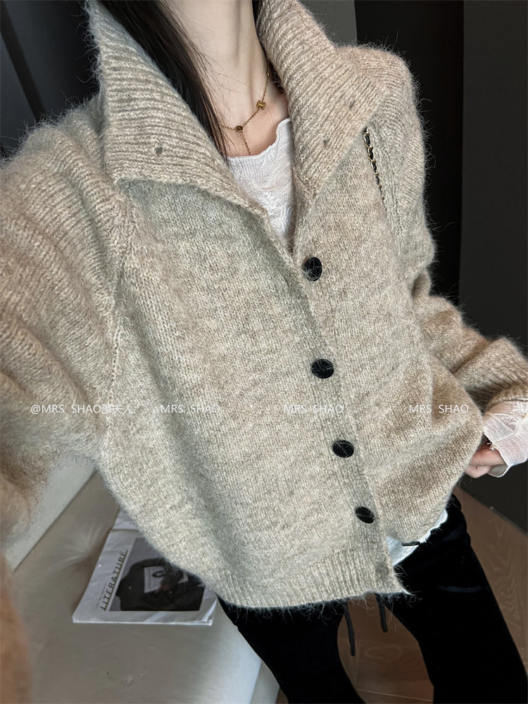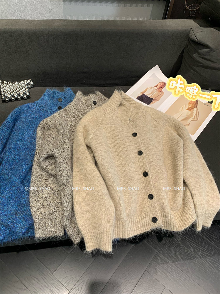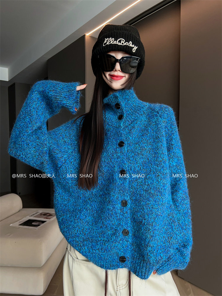 MRS SHAO簡約高領毛衣開衫外套女秋冬2025新款慵嬾松弛感毛線衣潮