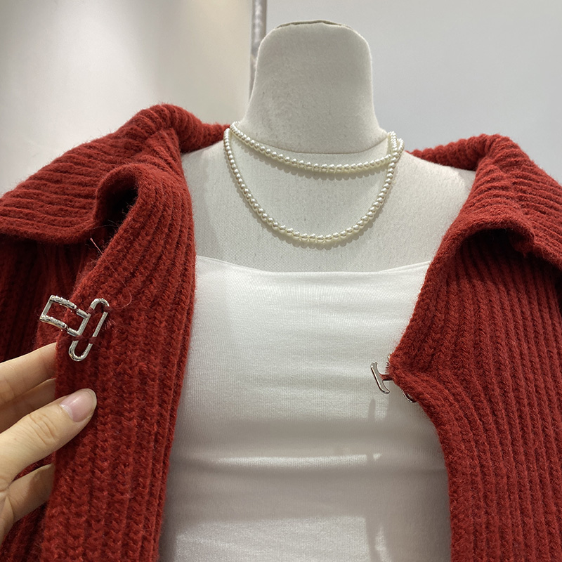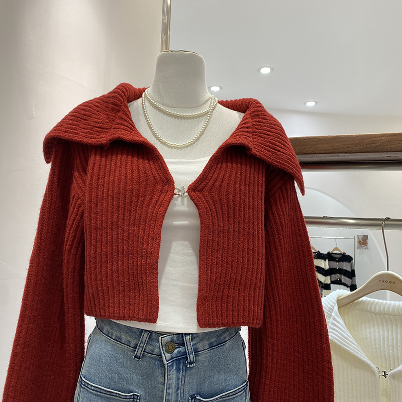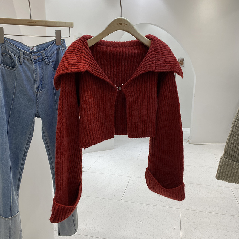 氣質短款紅色毛衣外套女冬季2024年新款韓版時尚百搭長袖針織開衫