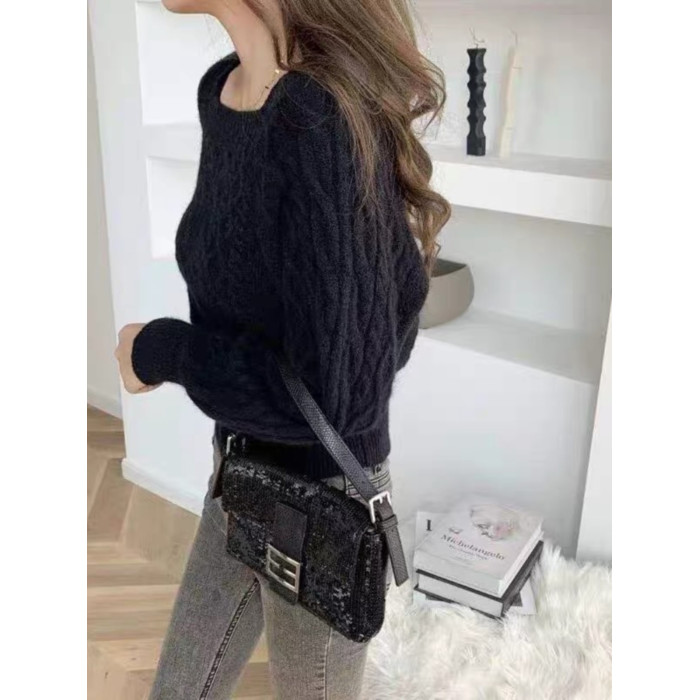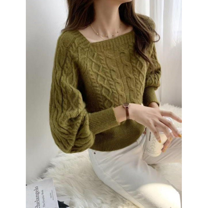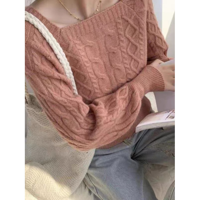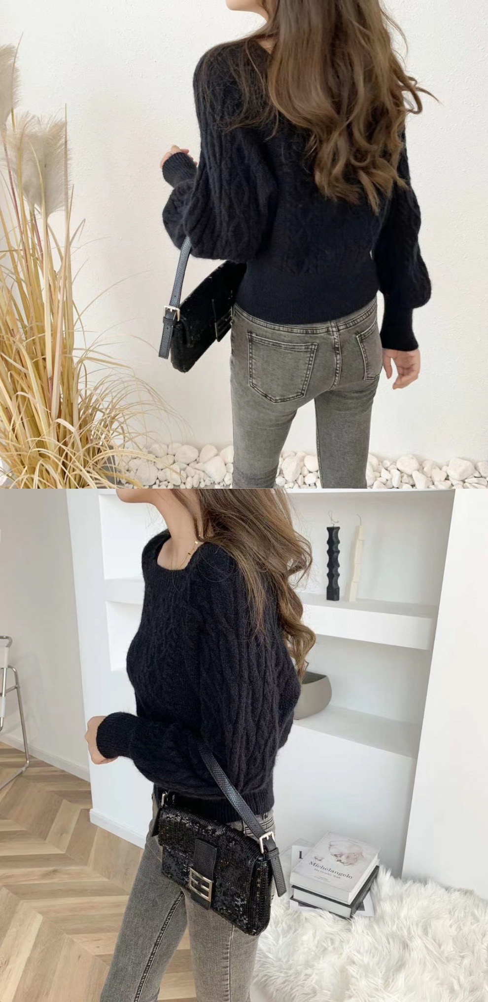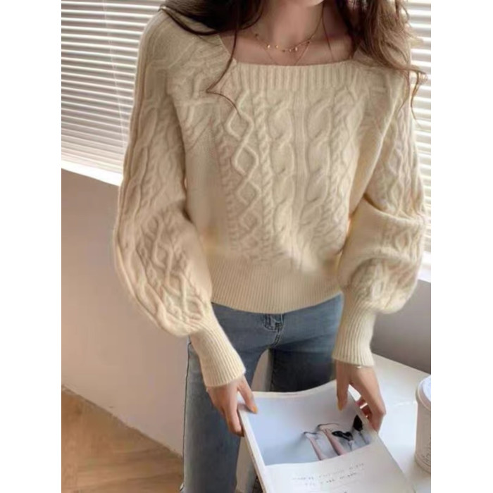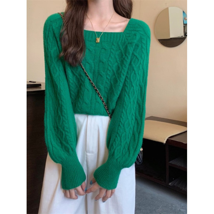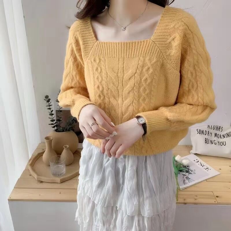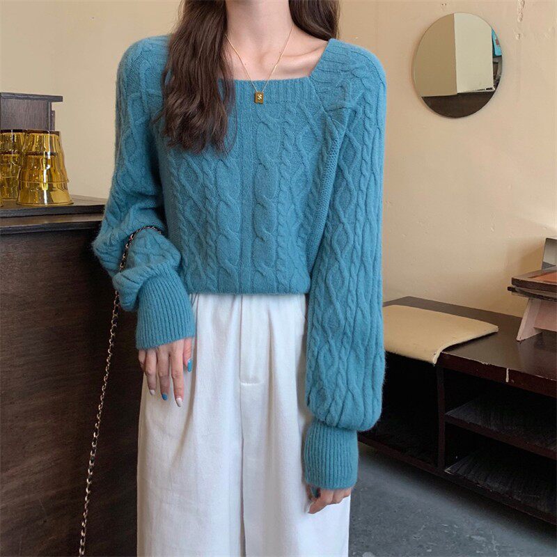 法式麻花毛衣女設計感2023年秋冬新款加厚復古方領短款針織上衣