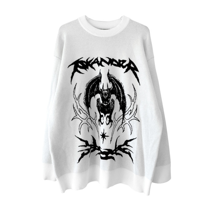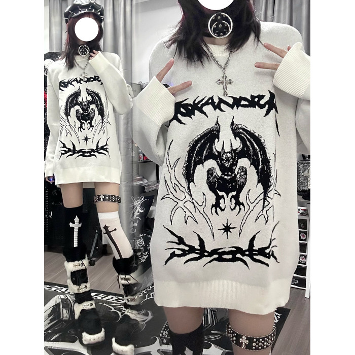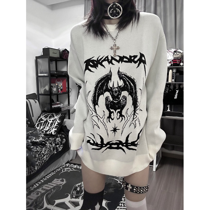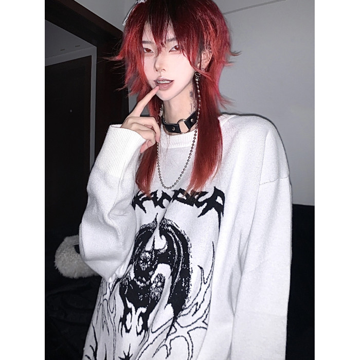 溼體WETBODY 原創小衆暗黑寬松套頭毛衣白色中性秋冬街頭上衣