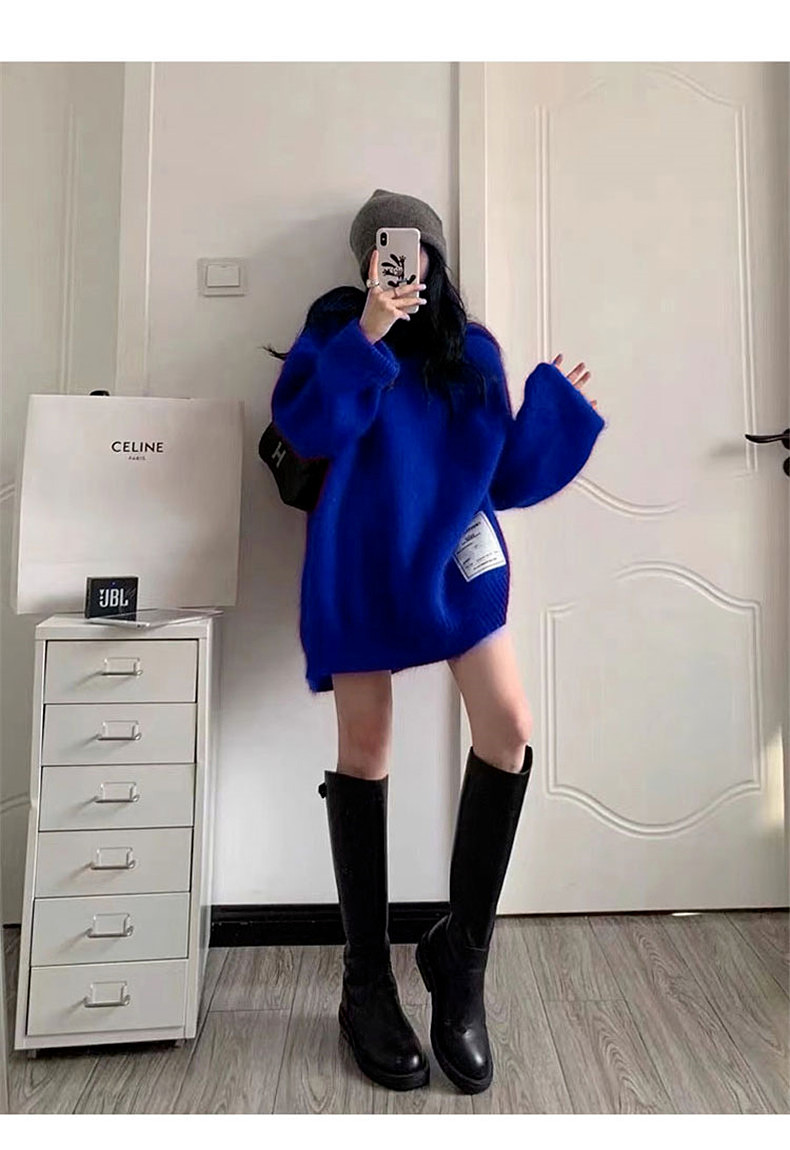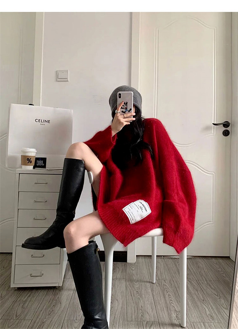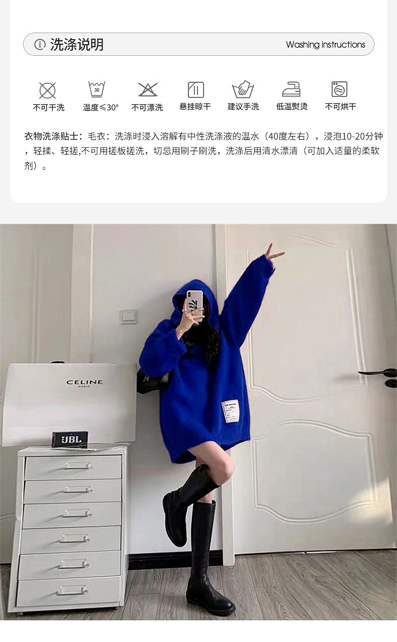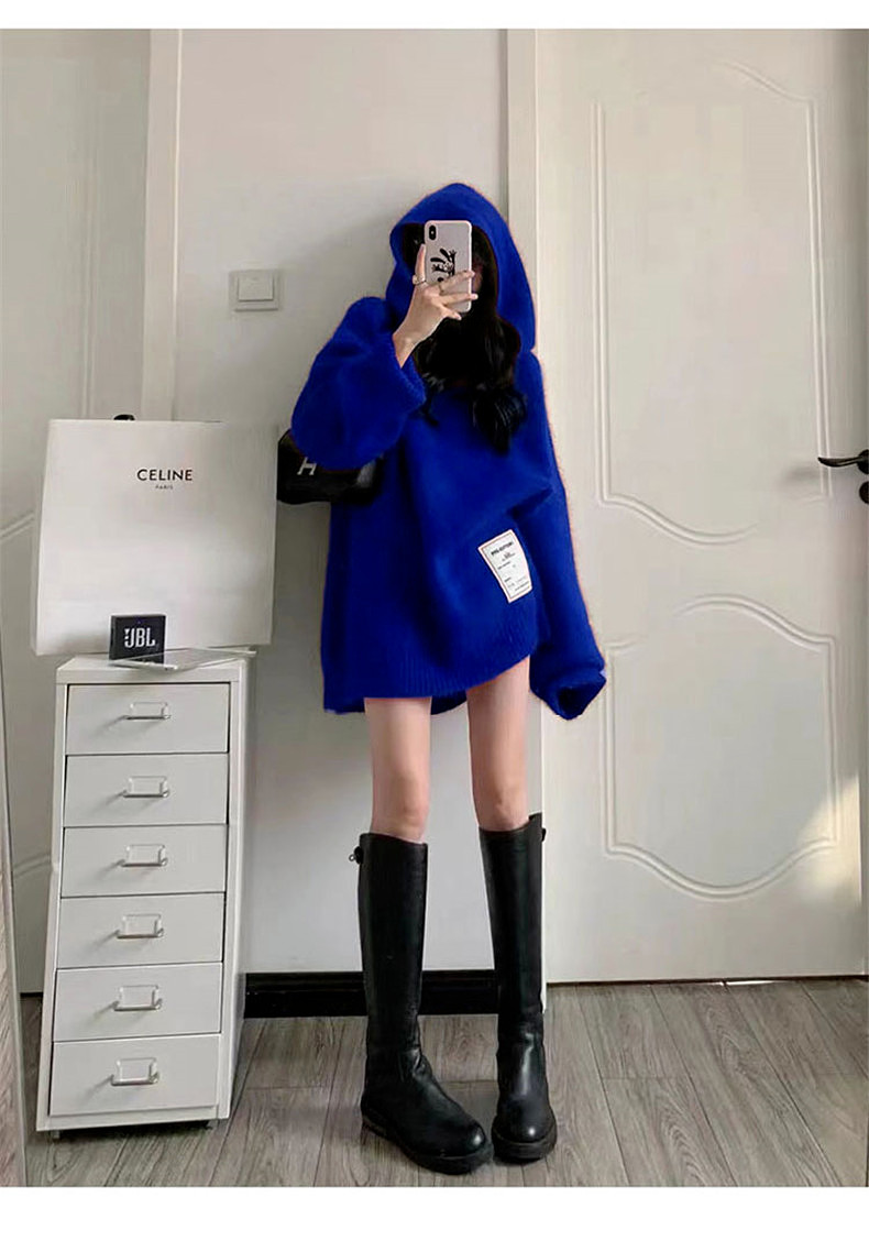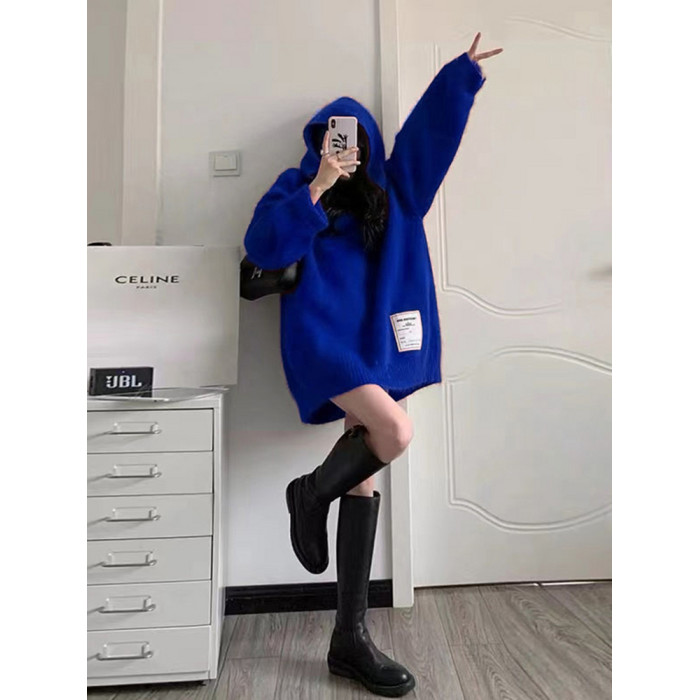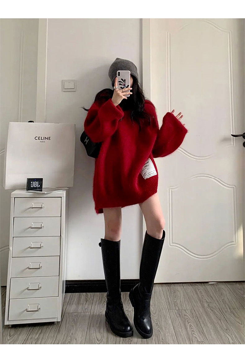 中長款寬松慵懶風聖誕紅色連帽毛衣女秋冬季2025新款打底針織上衣