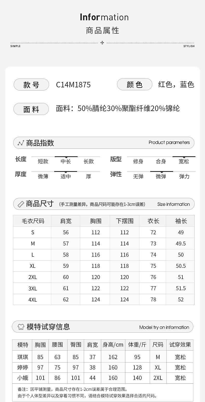 | 材質成分 | 聚丙烯腈纖維(腈綸)50.0% 聚酯纖維30.0% 聚醯胺纖維(錦綸)20.0% |
