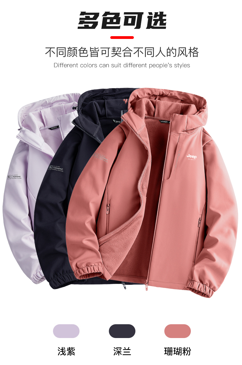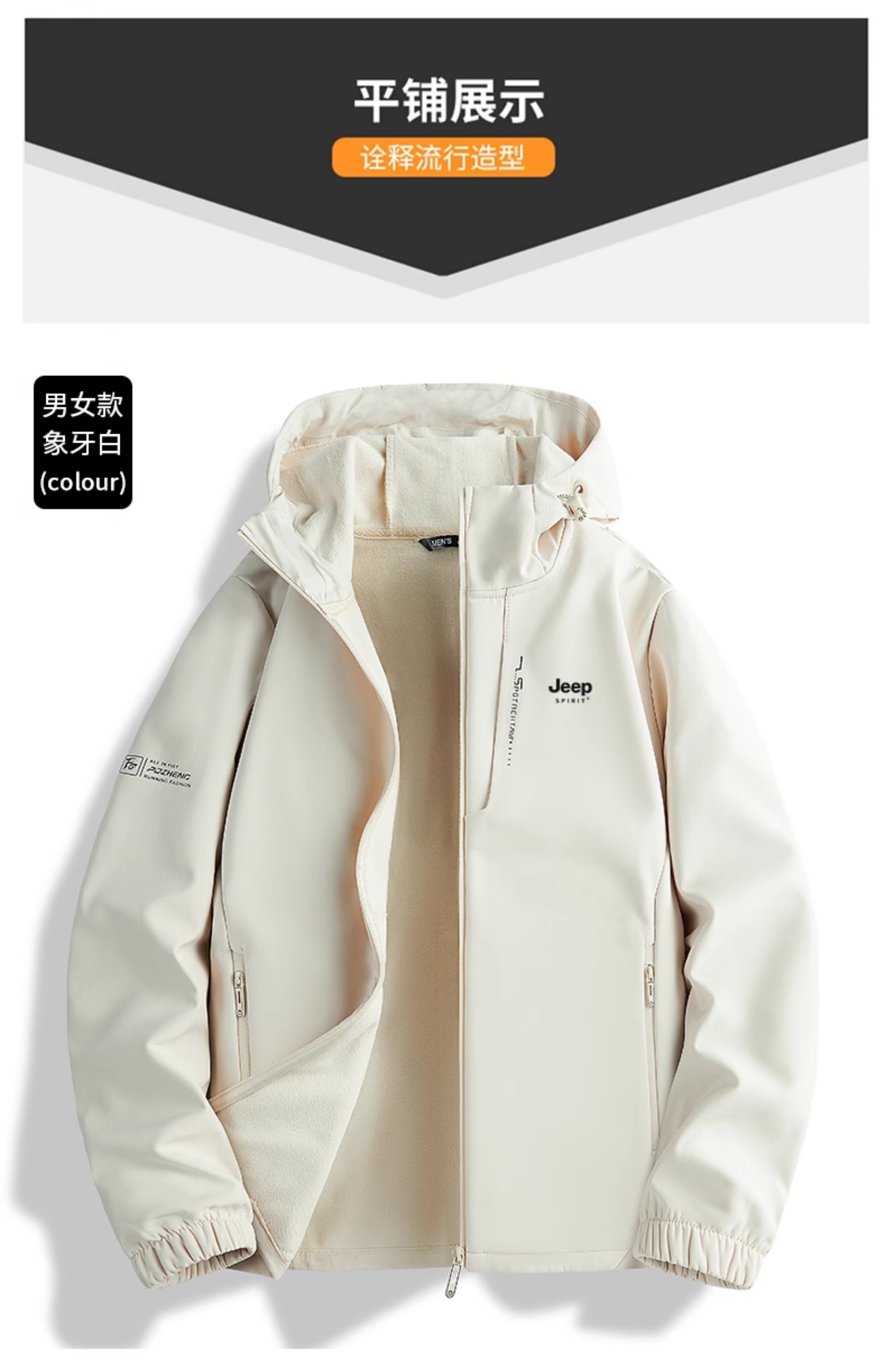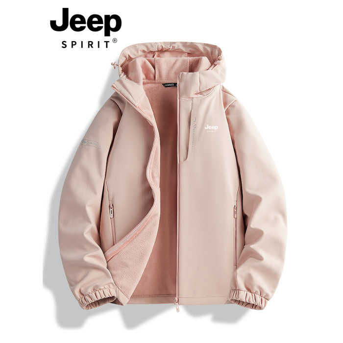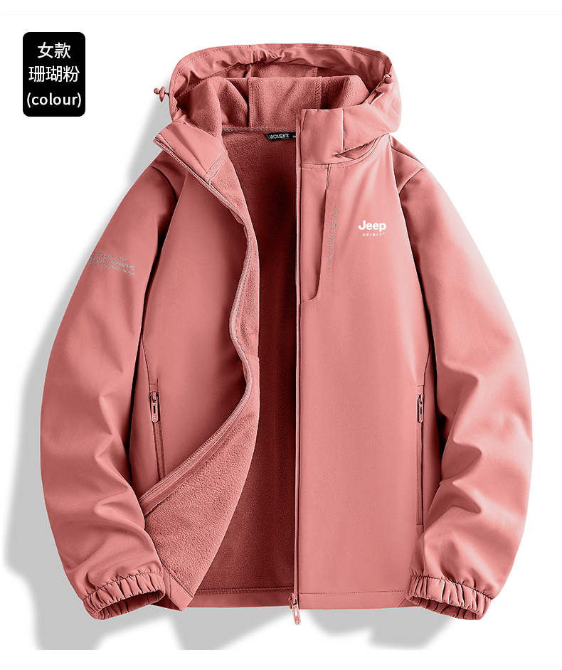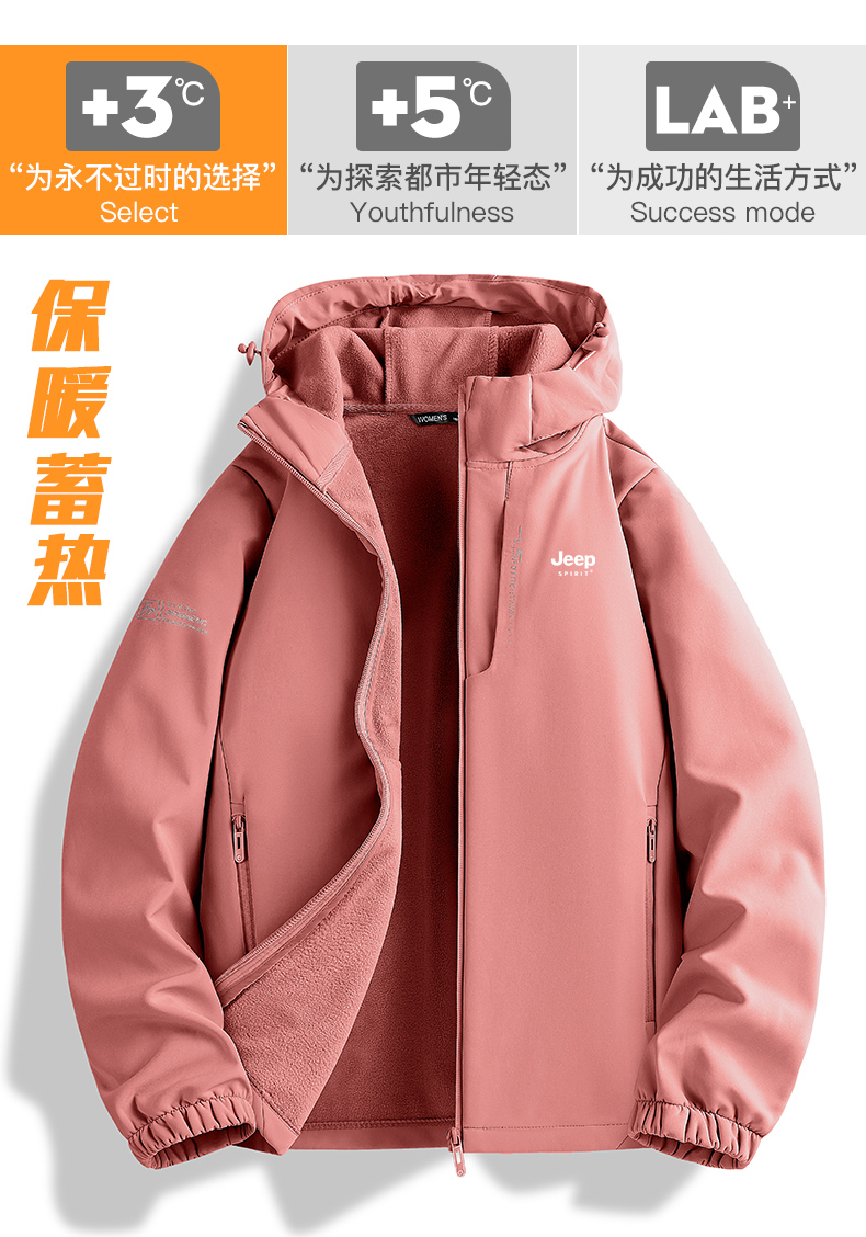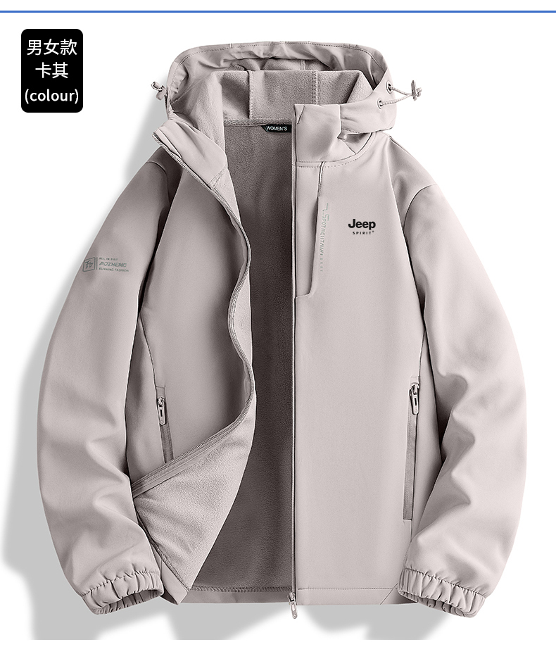 JEEP軟殼沖鋒衣女2025年新款春秋情侶小個子加絨防風防水連帽外套