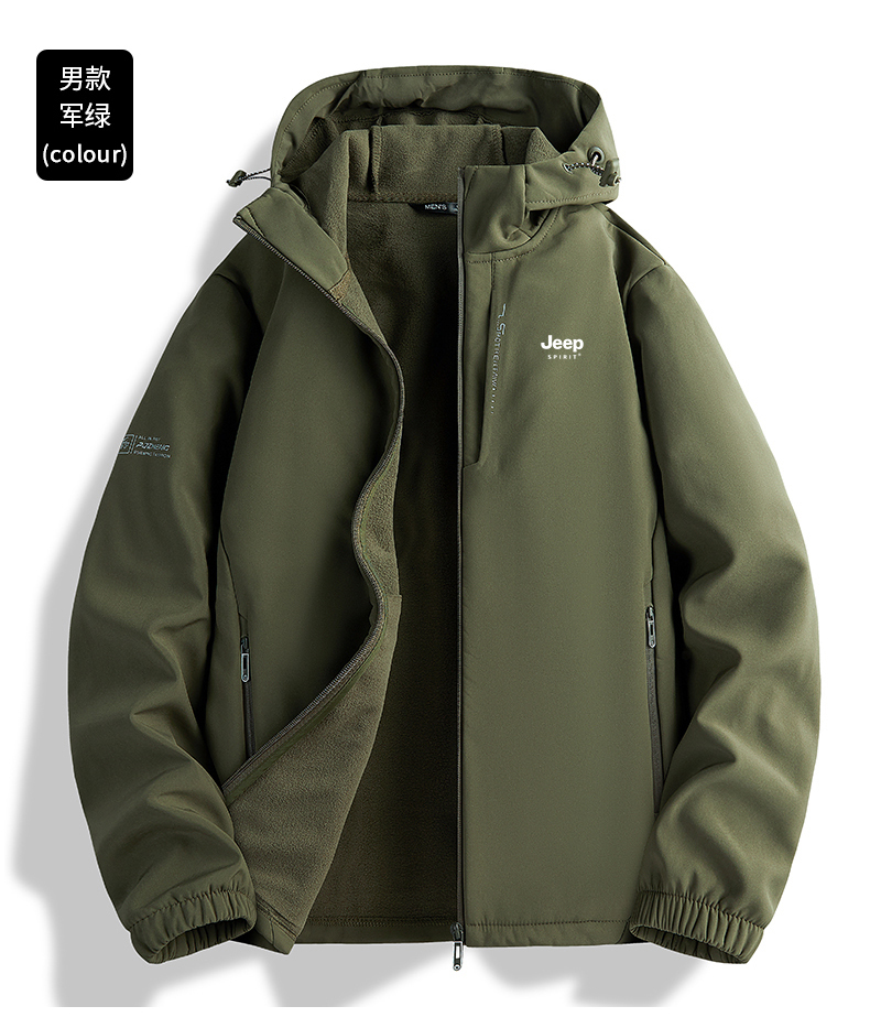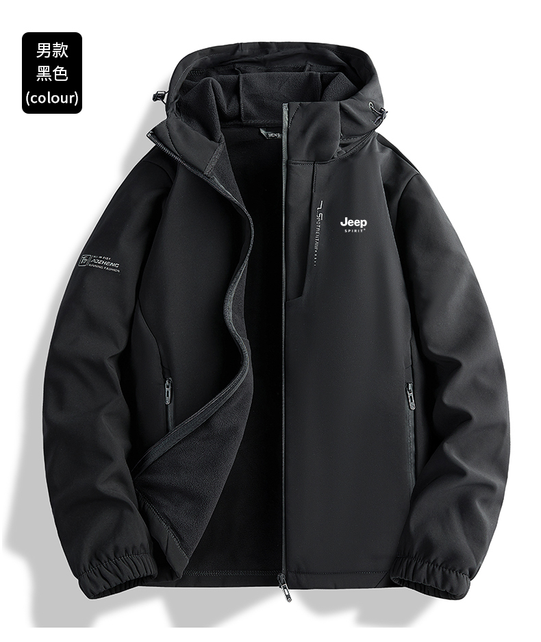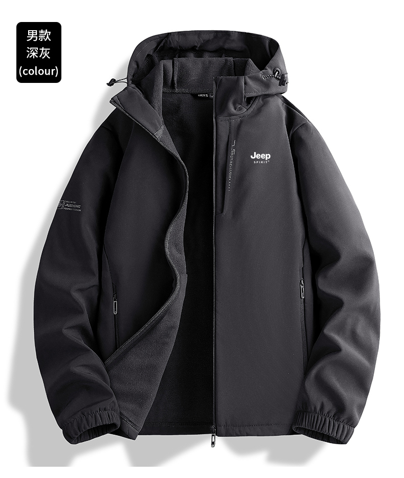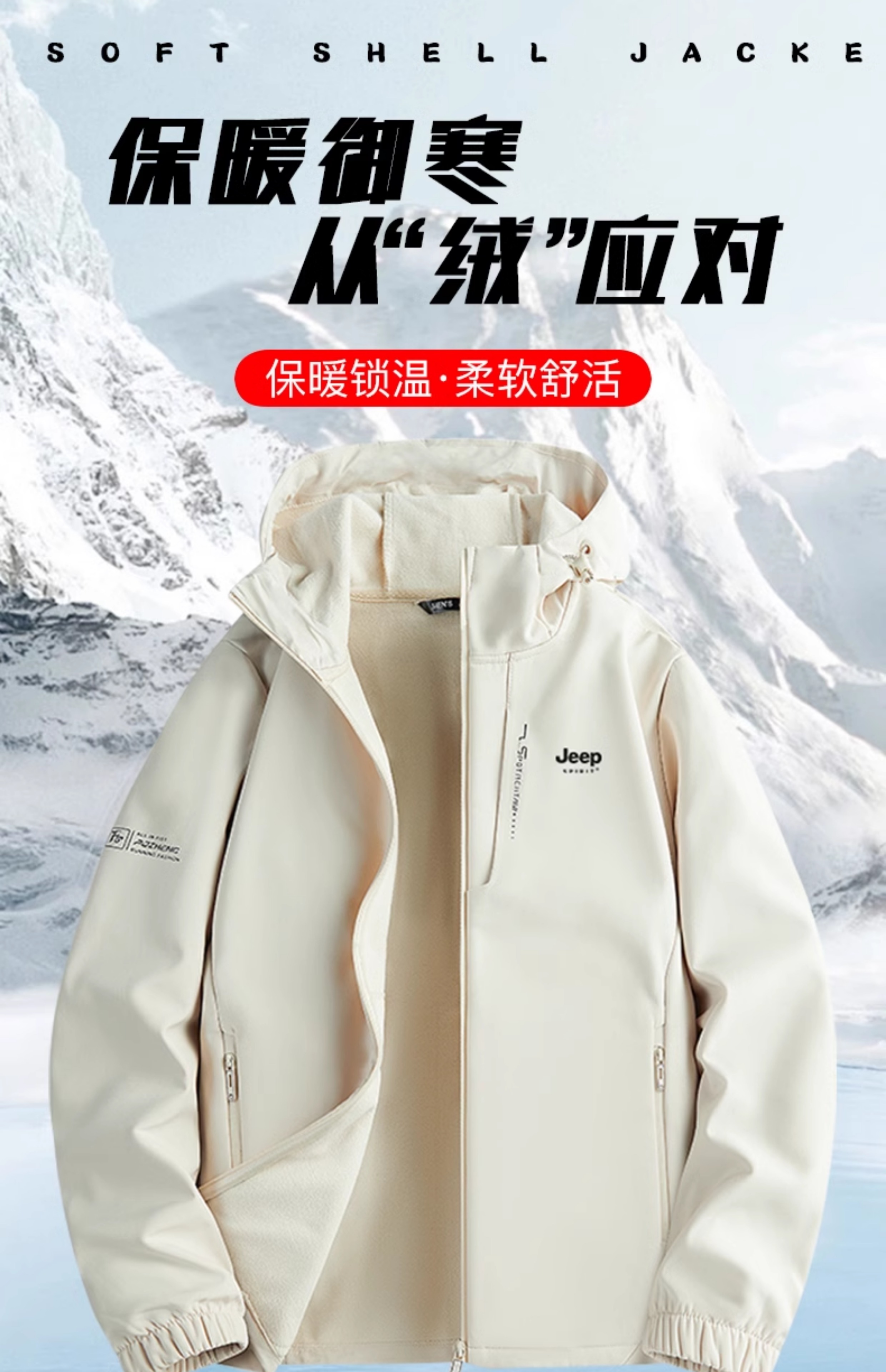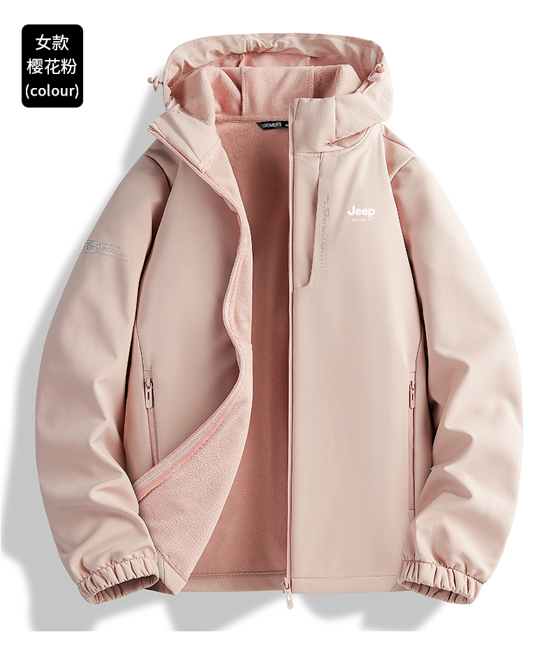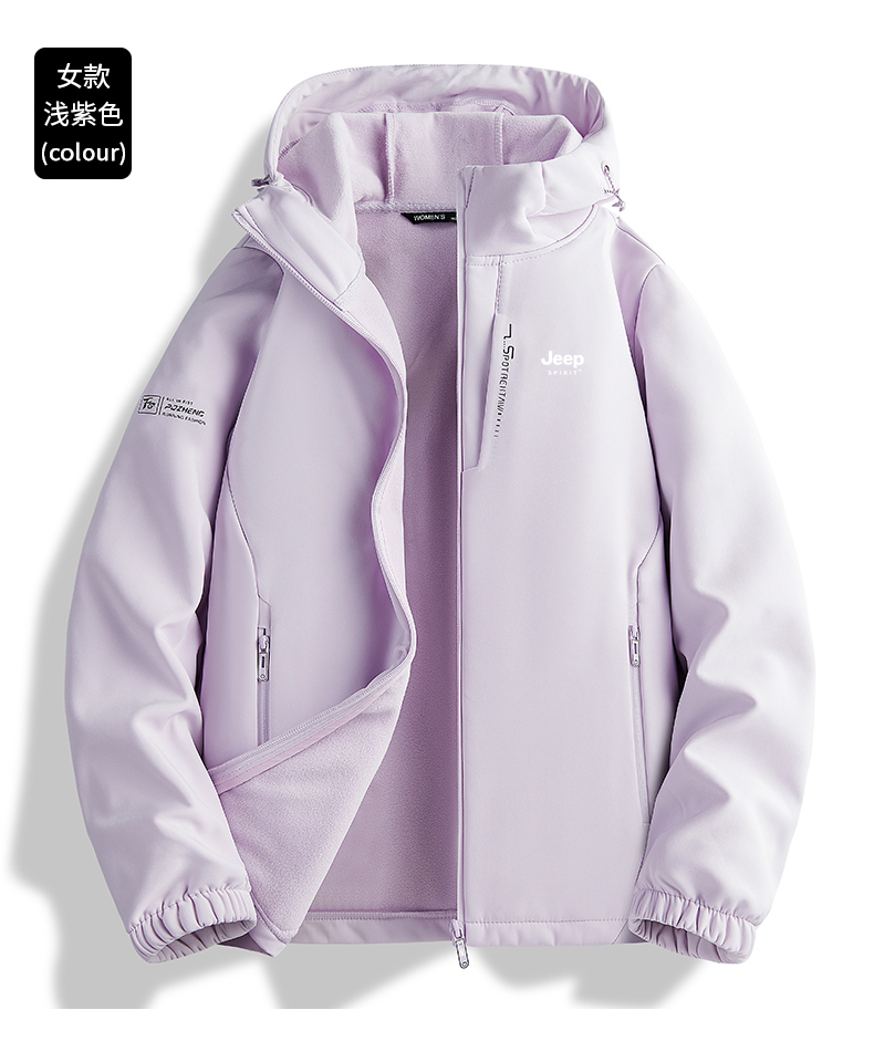 JEEP軟殼沖鋒衣女2025年新款春秋情侶小個子加絨防風防水連帽外套