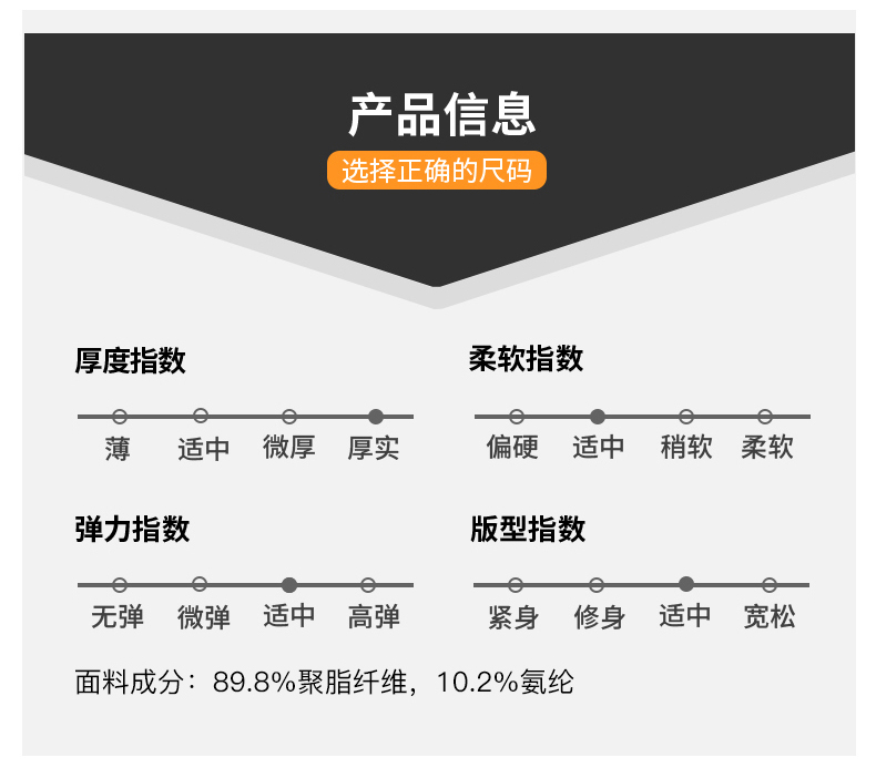 | 材質成分 | 聚酯纖維89.8% 聚氨酯彈性纖維(氨綸)10.2% |