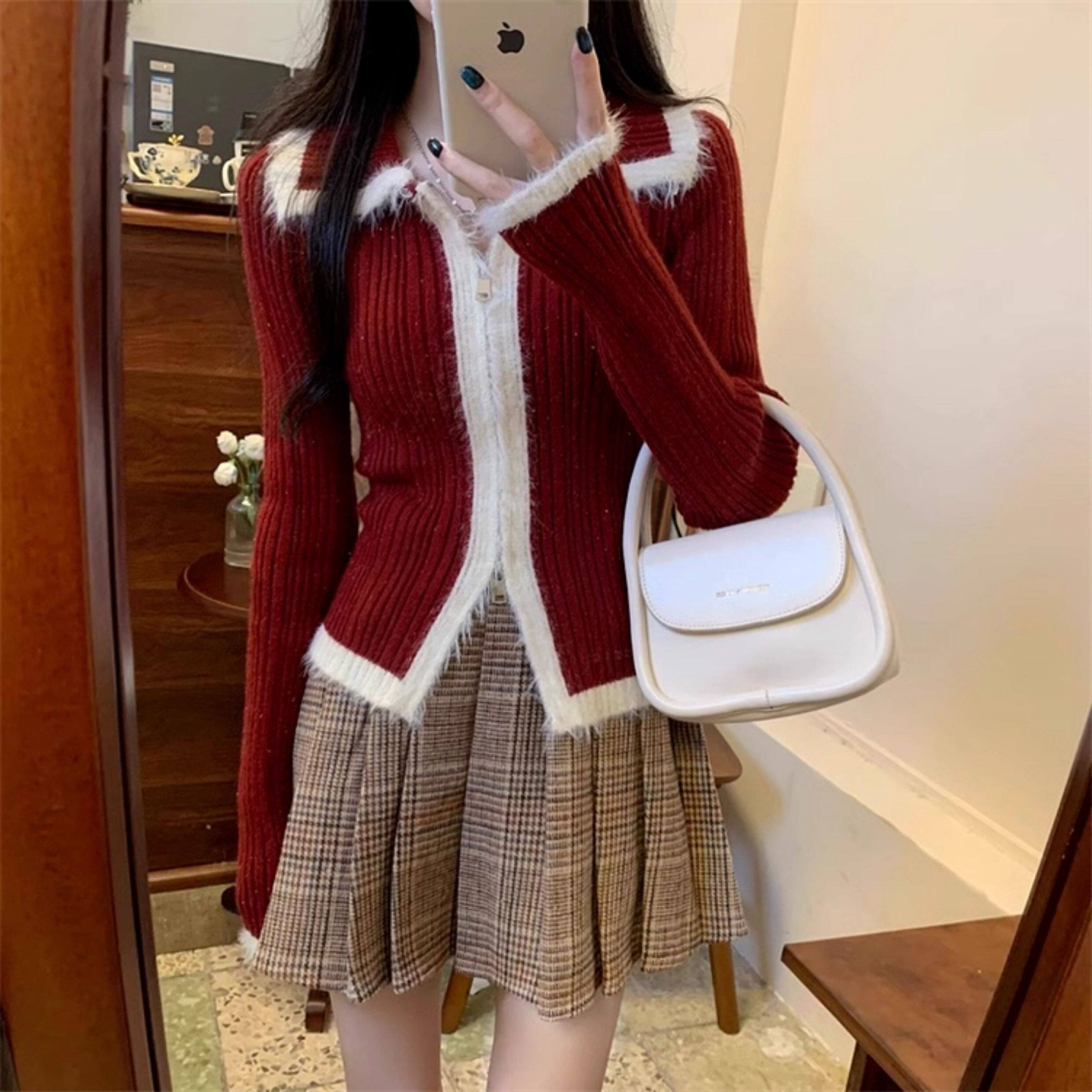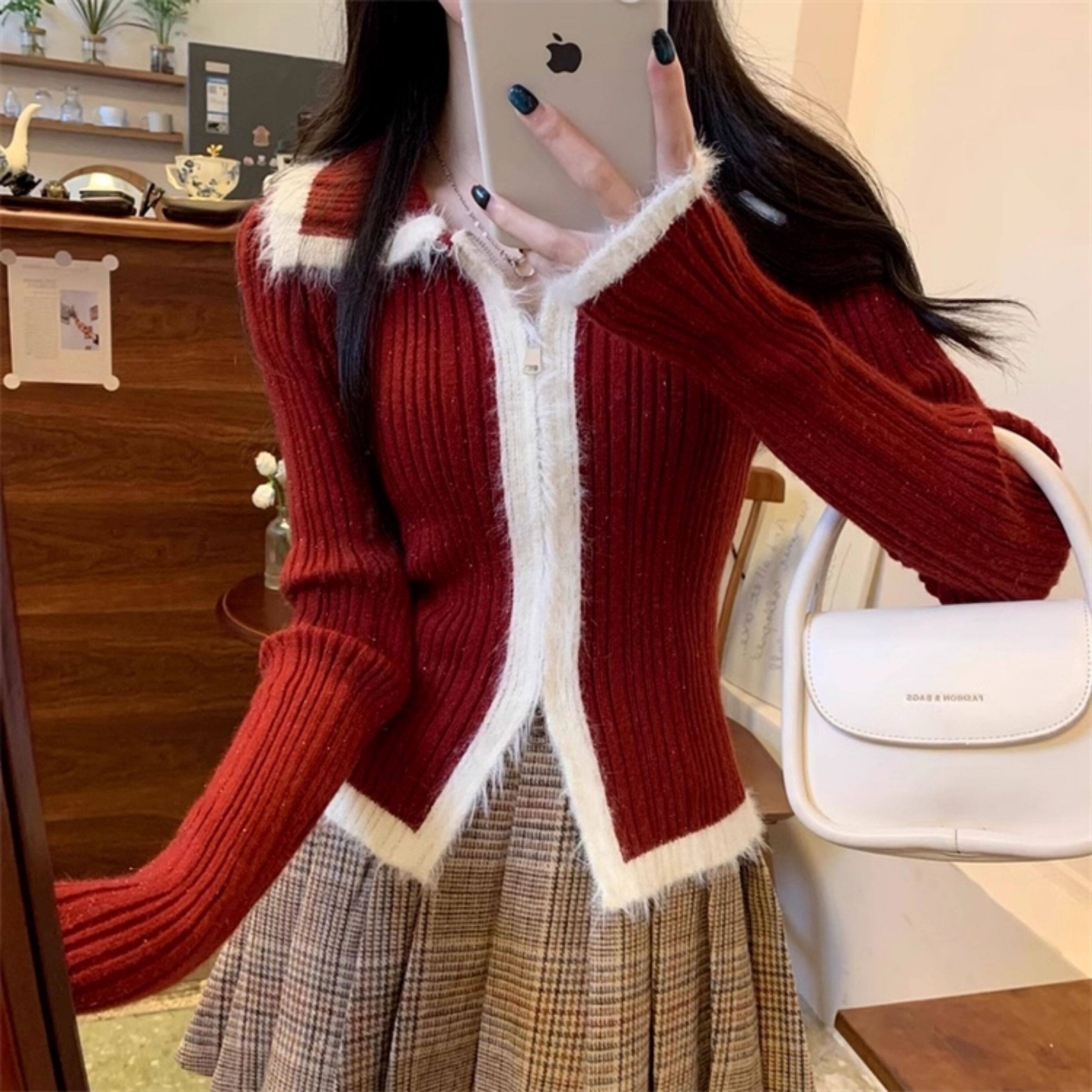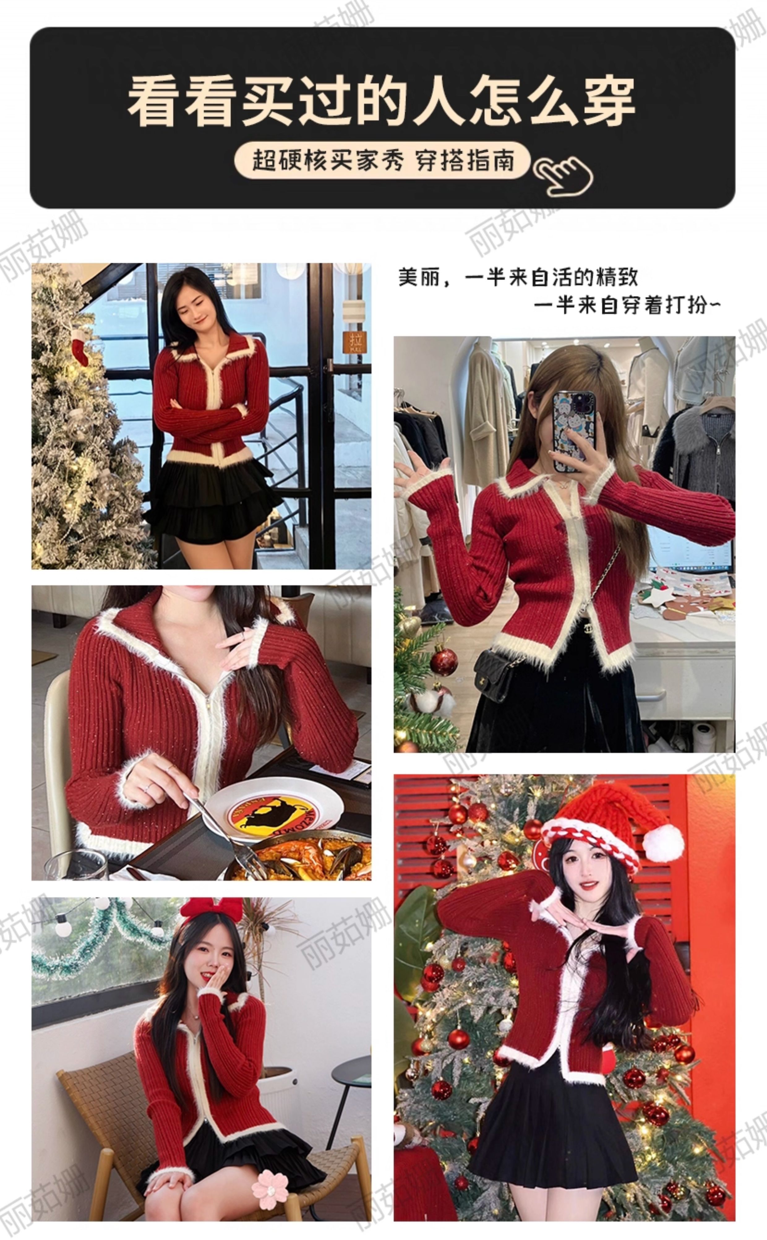 聖誕穿搭小個子紅色毛衣外套女2025秋冬季新款加厚針織上衣高級感