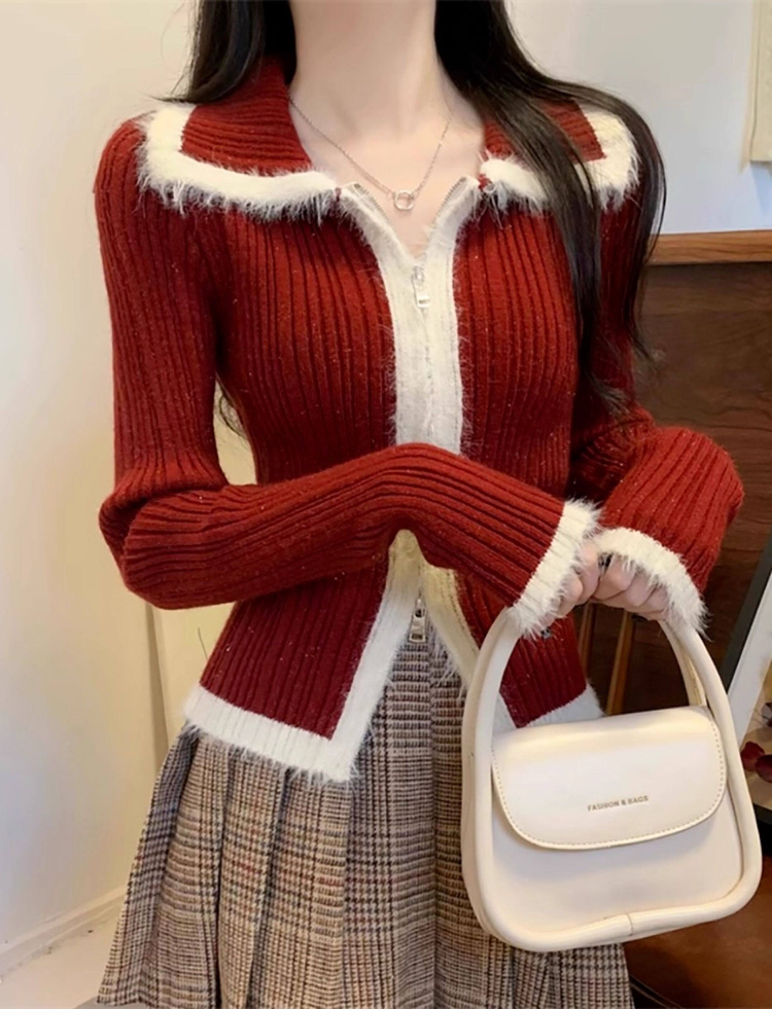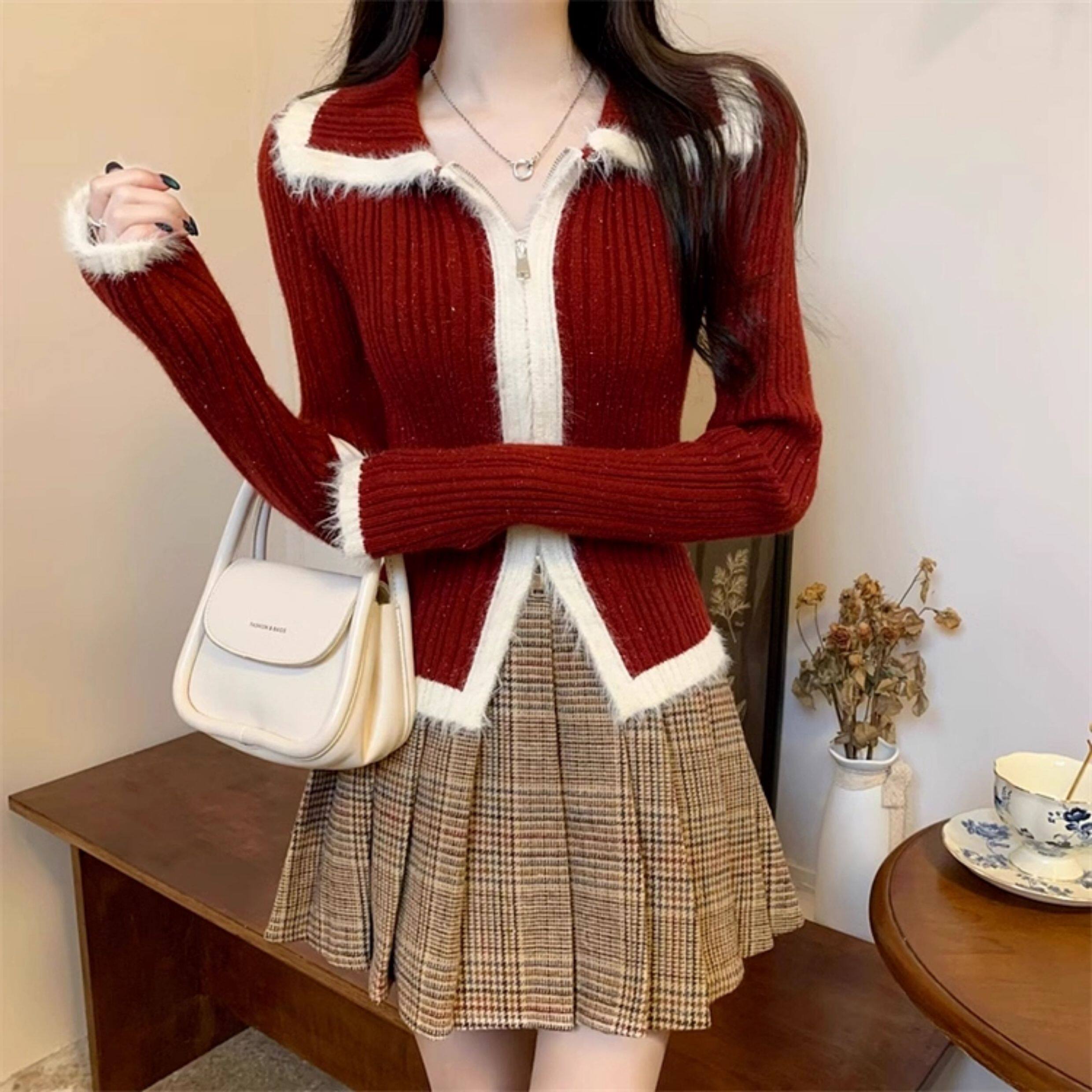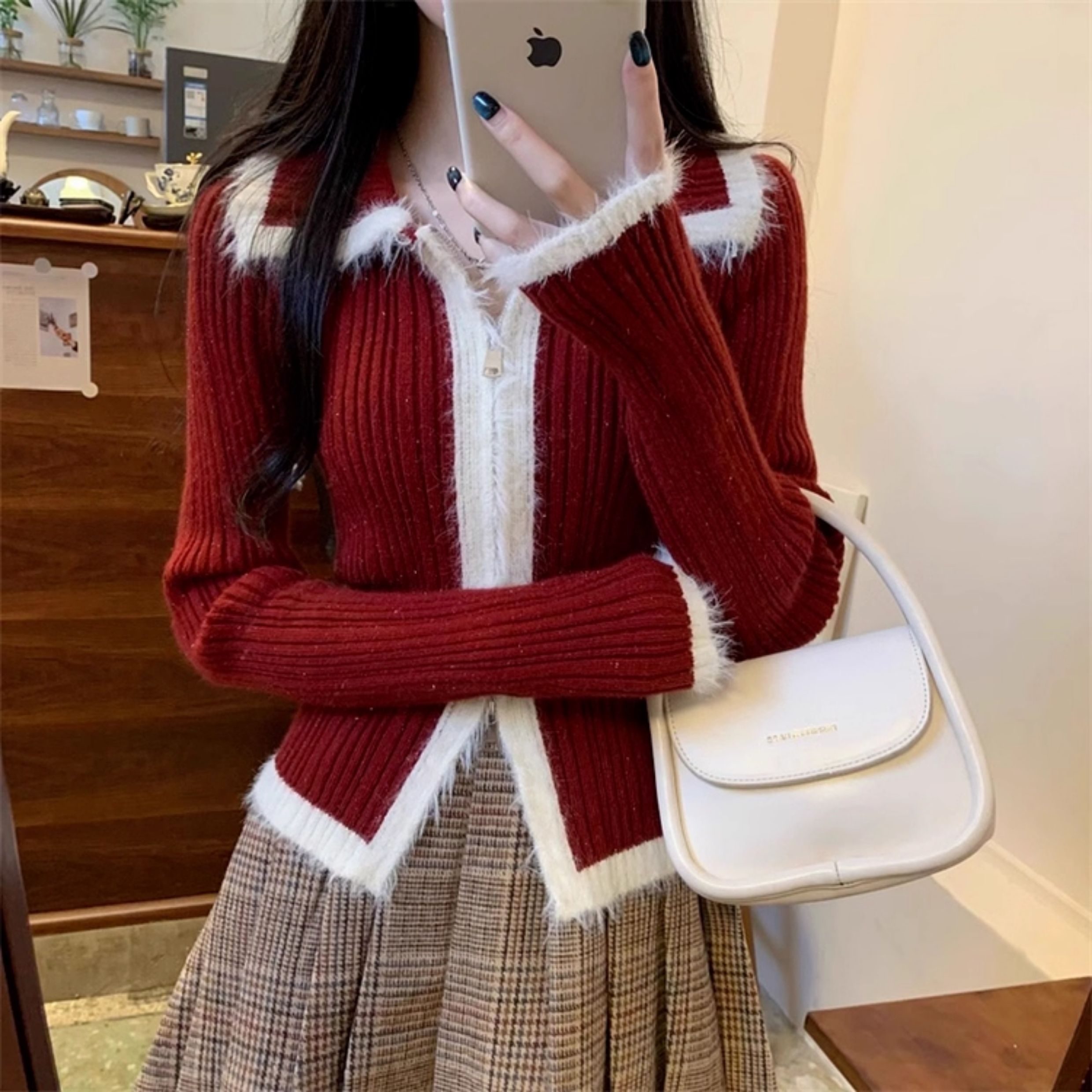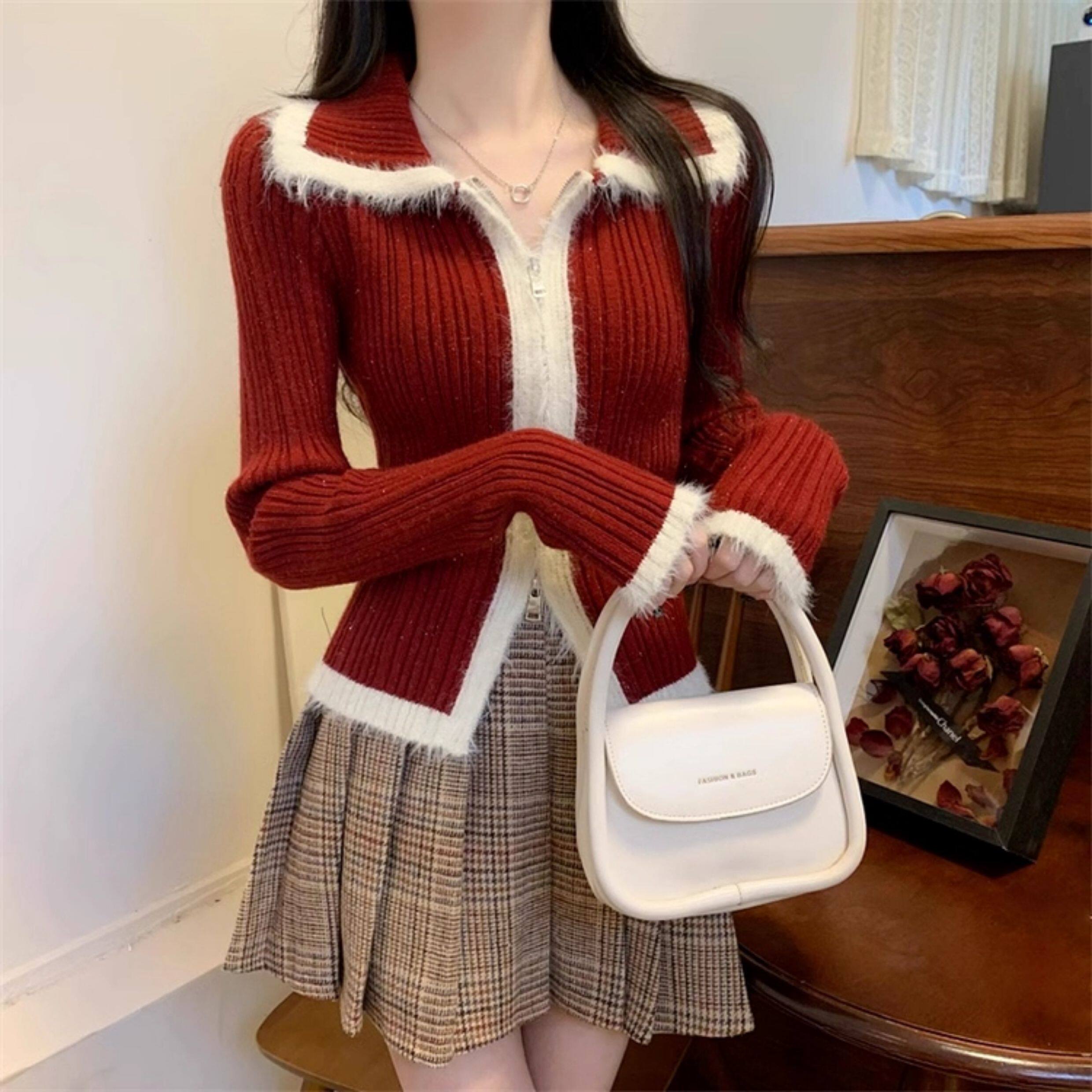 聖誕穿搭小個子紅色毛衣外套女2025秋冬季新款加厚針織上衣高級感