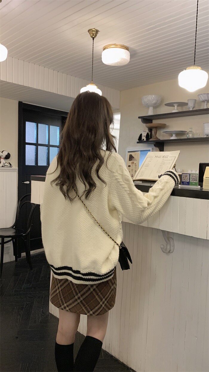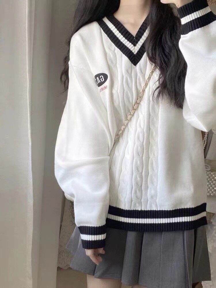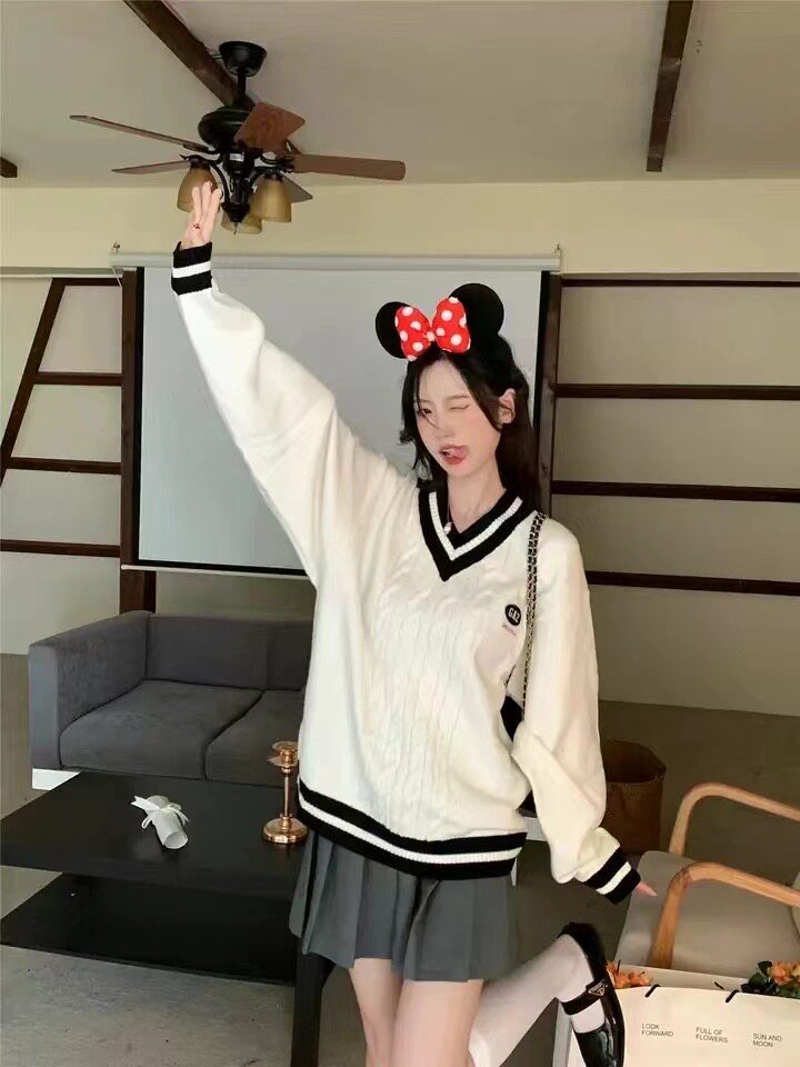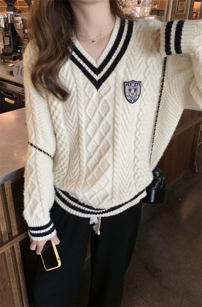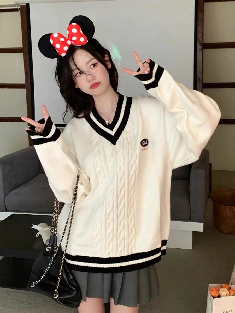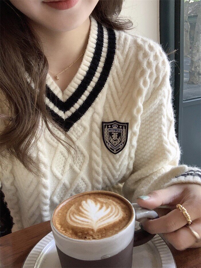 英倫學院風毛衣韓系溫柔小個子女V領2024秋冬新款針織上衣慵懶風