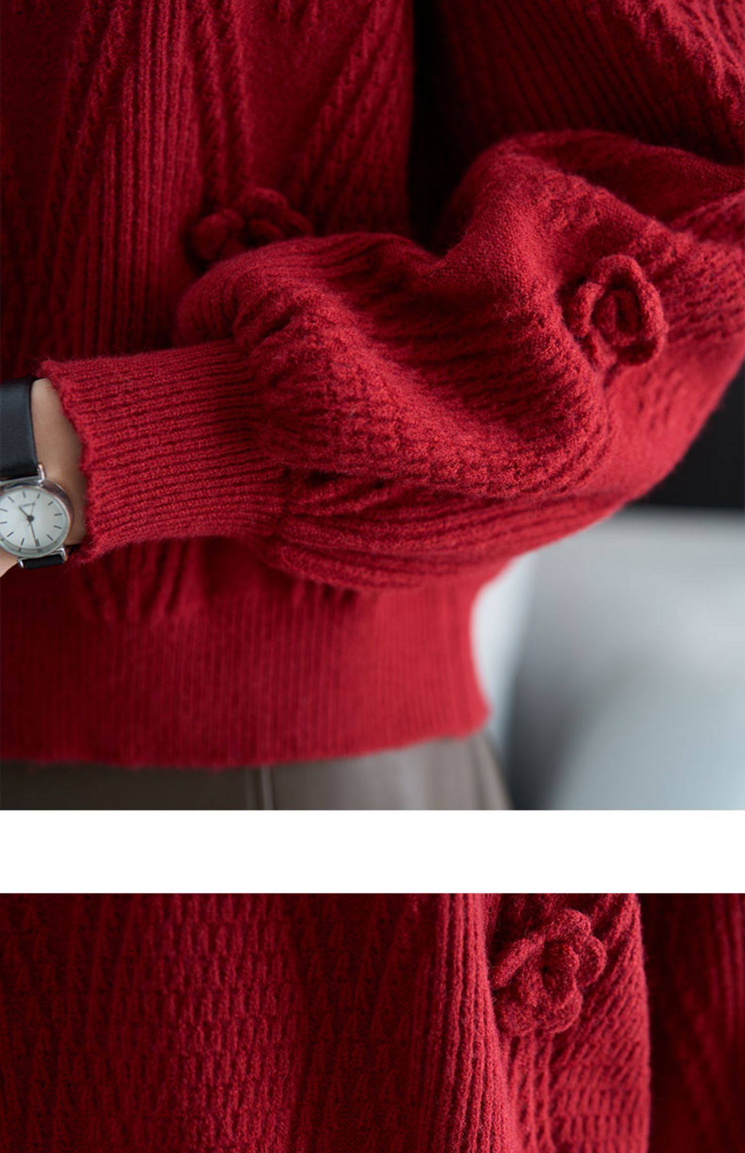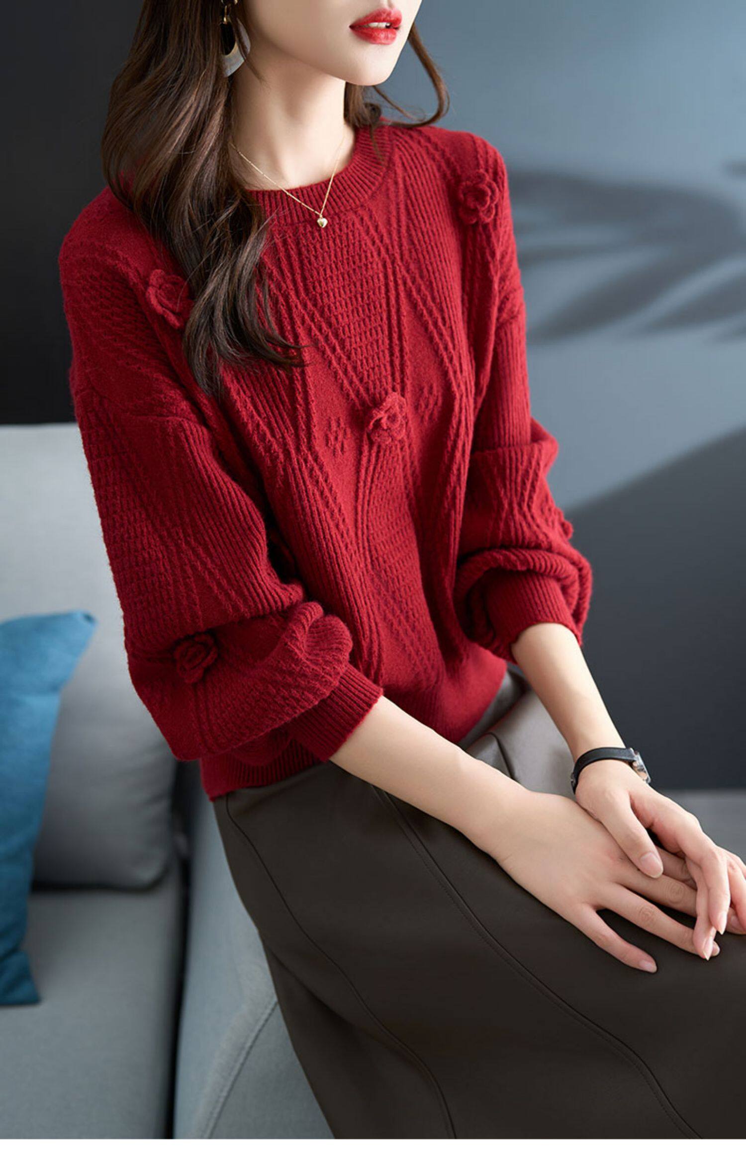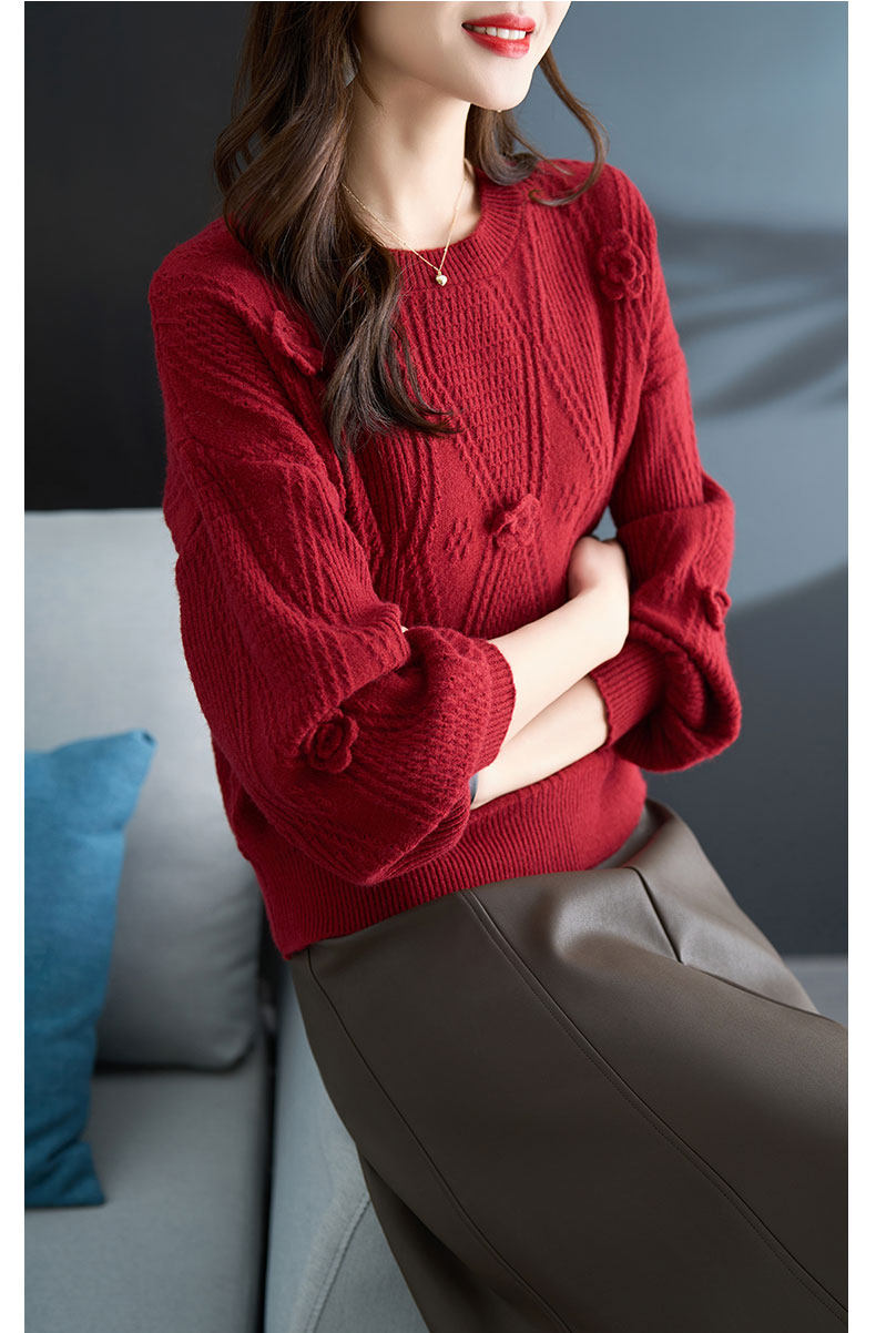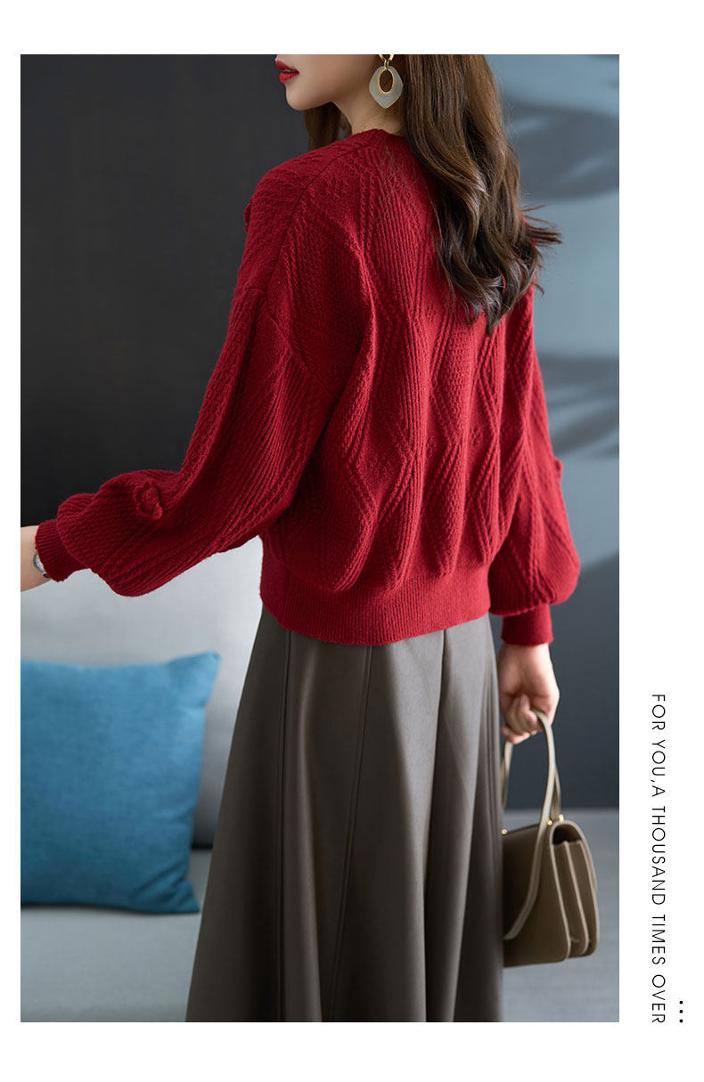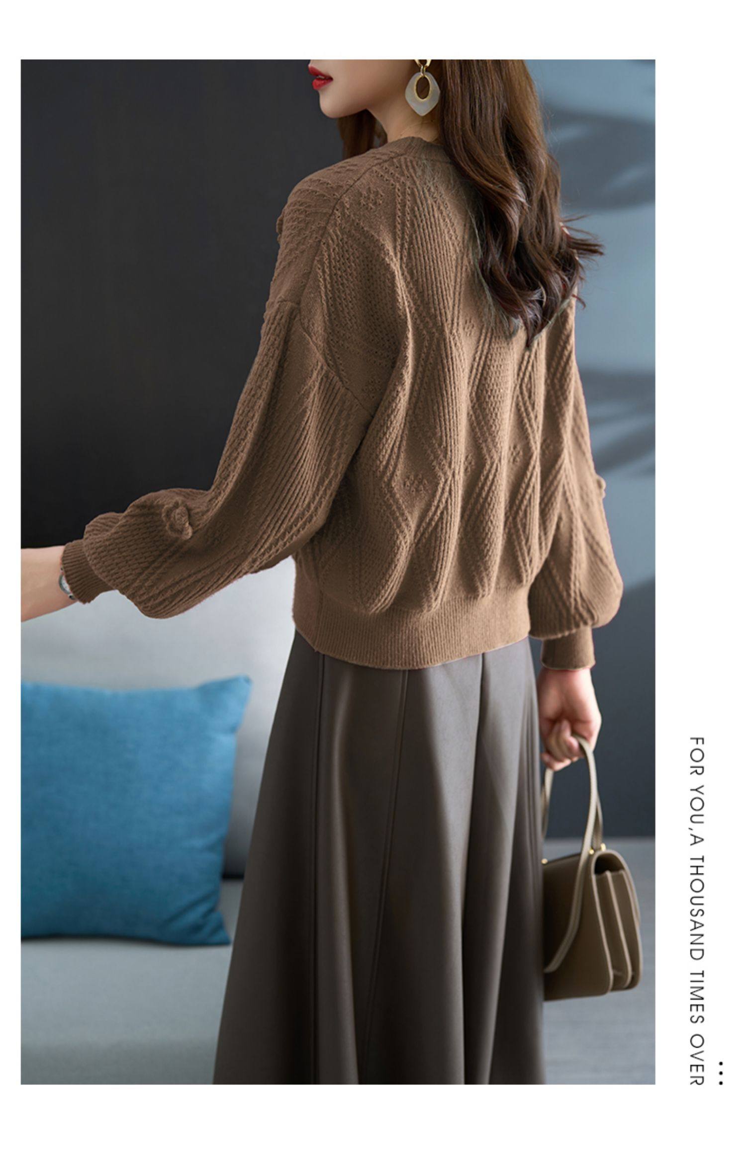 圓領針織衫上衣女秋冬胖mm寬松遮肚子燈籠袖超好看粉色毛衣打底衫