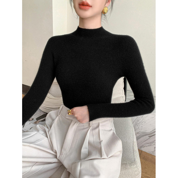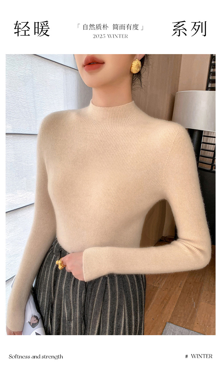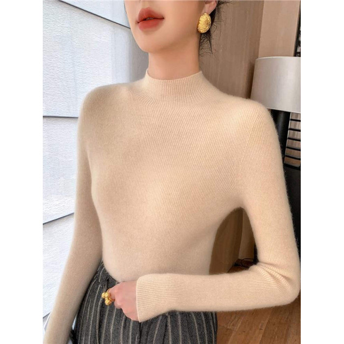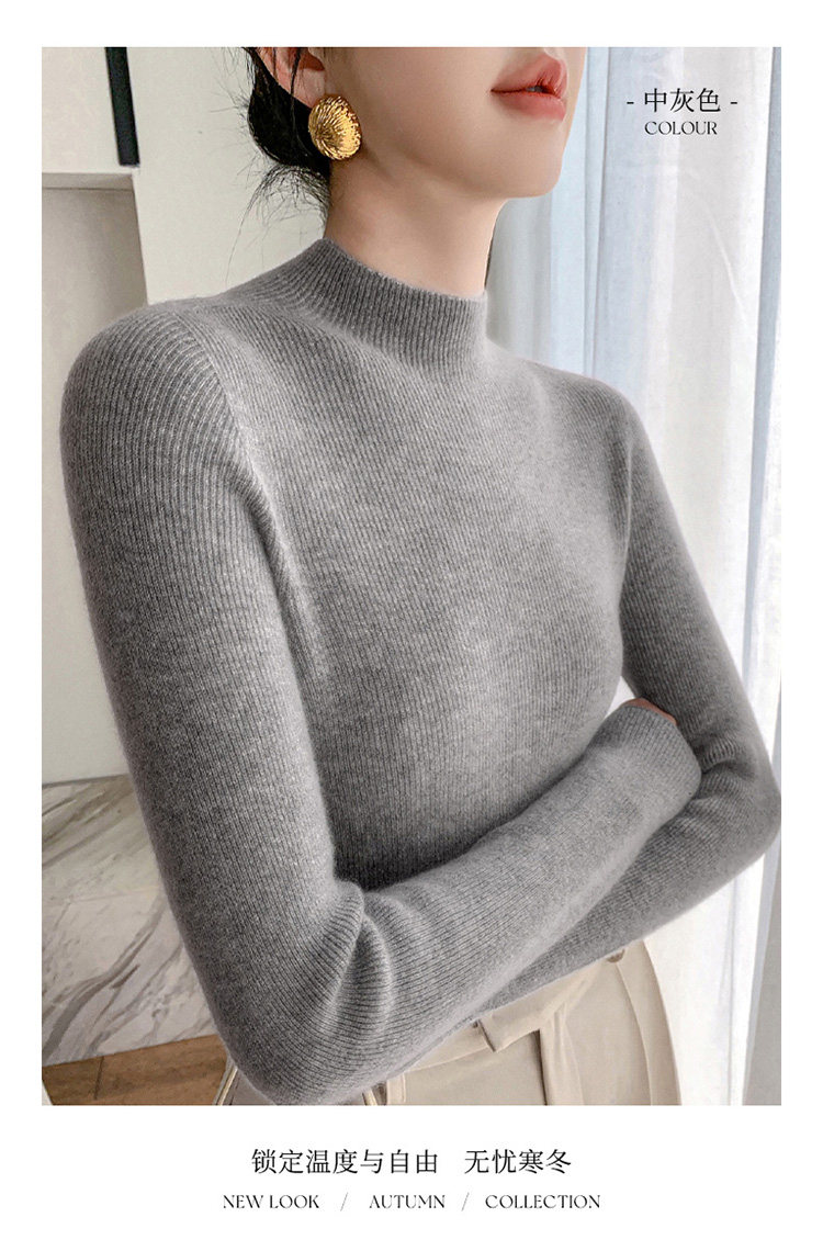 高級質感羊毛衫女半高領修身內搭打底衫秋冬新款加厚百搭針織毛衣