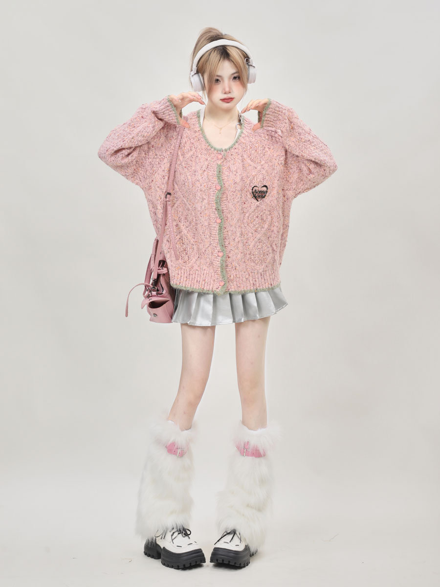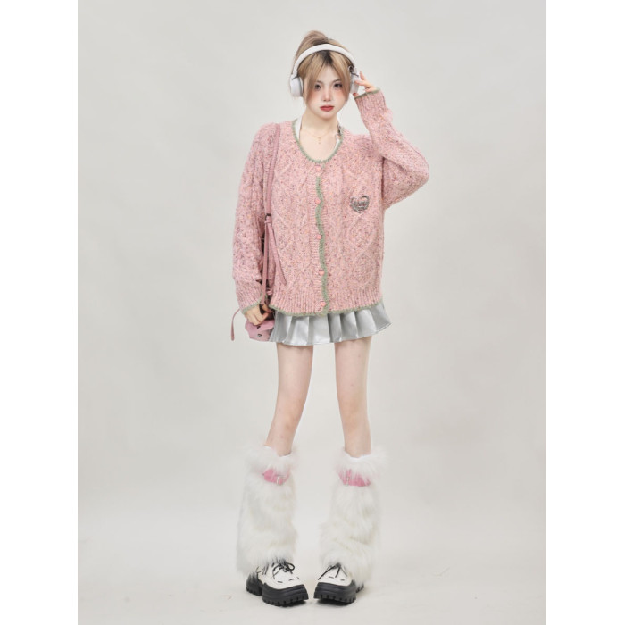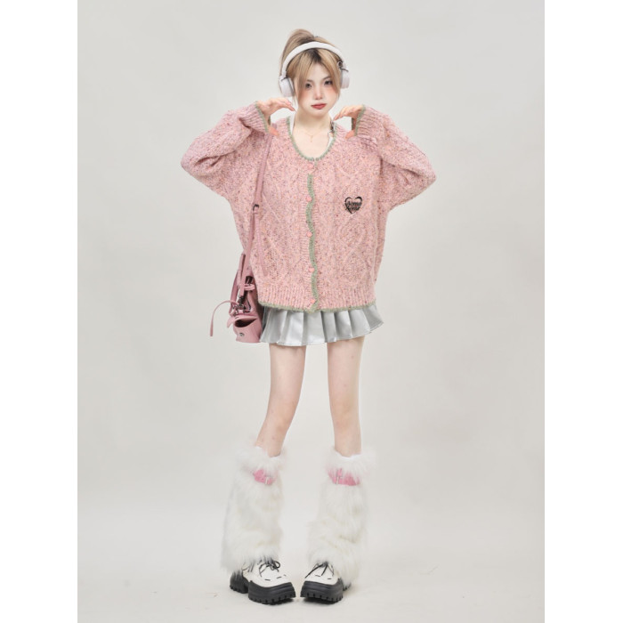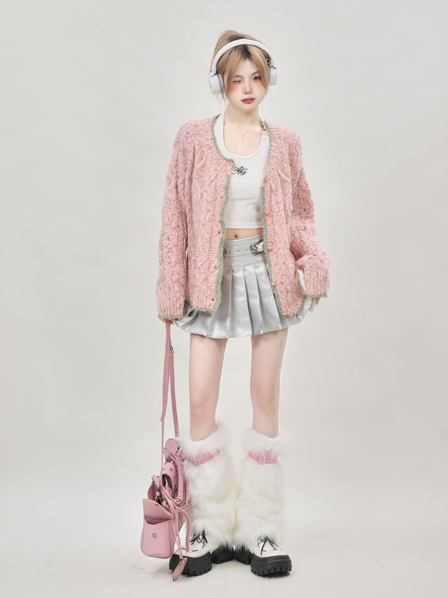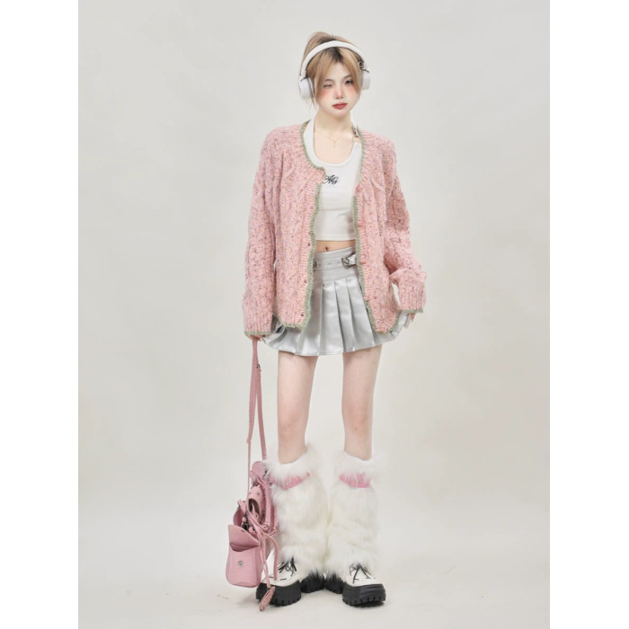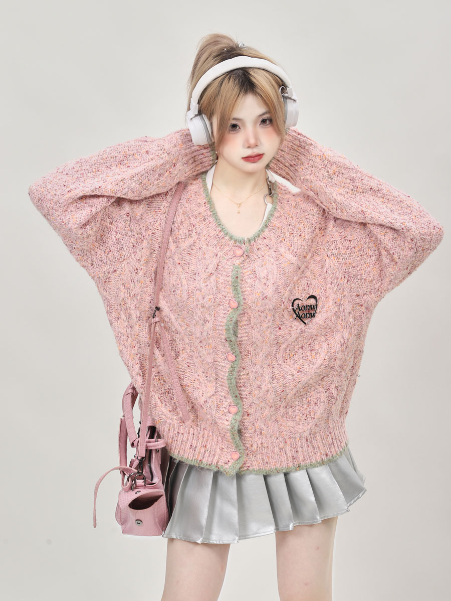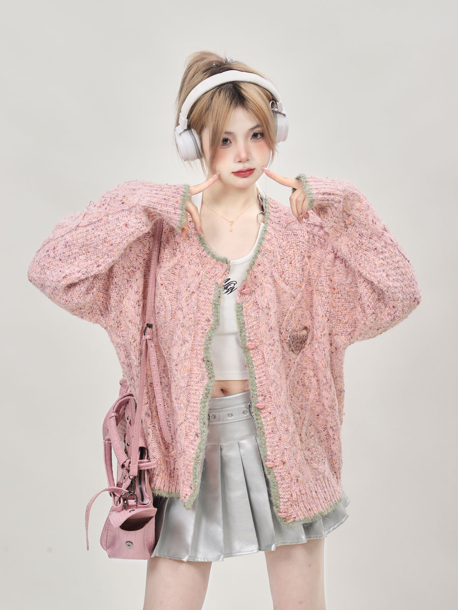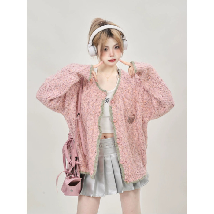 2025秋季新款法式高級感小香風針織開衫粉色毛衣外套女春秋慵懶風