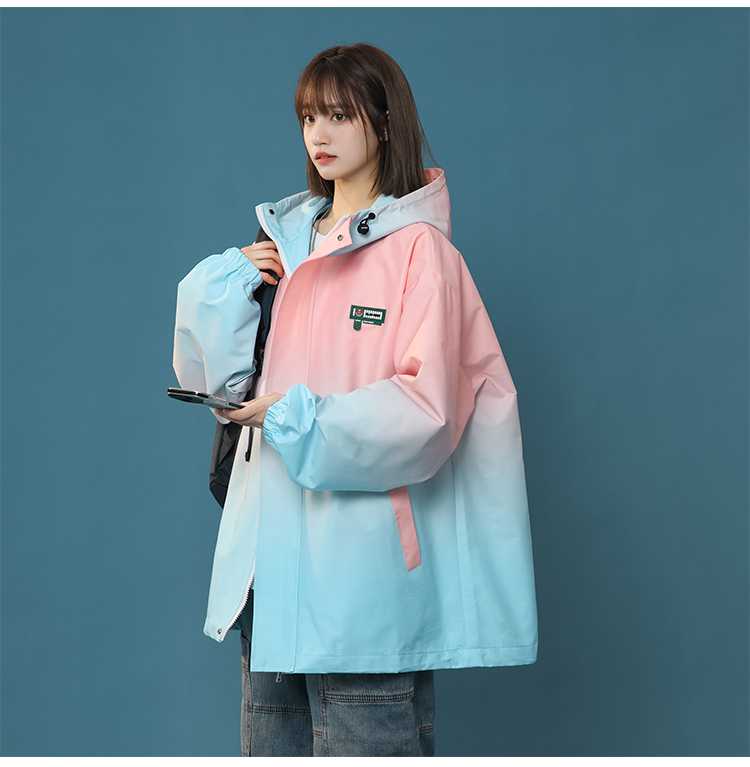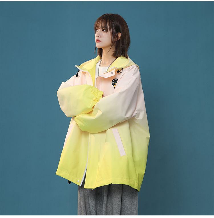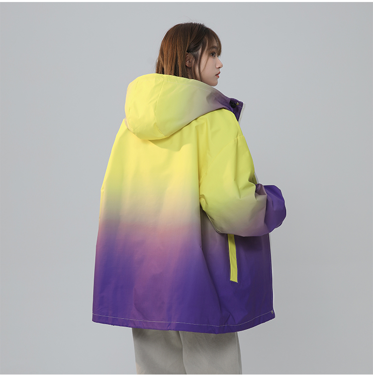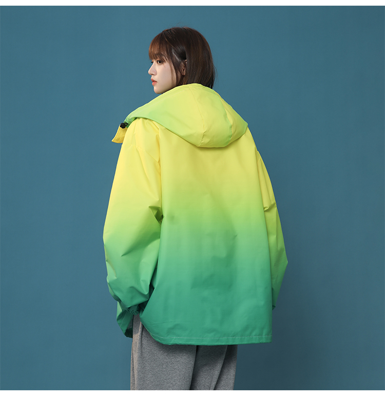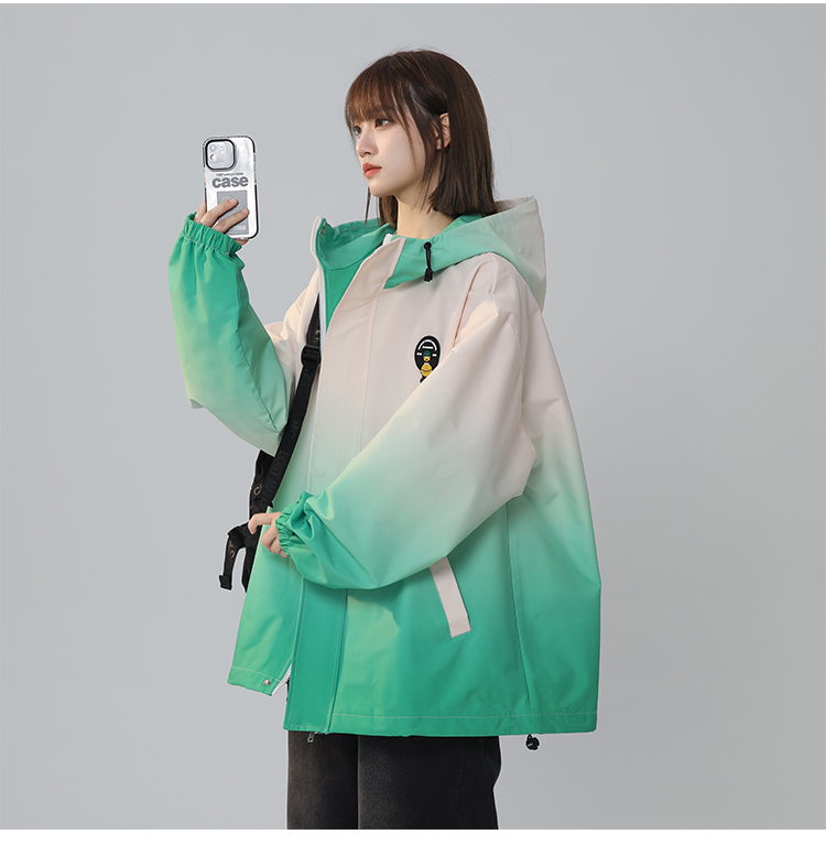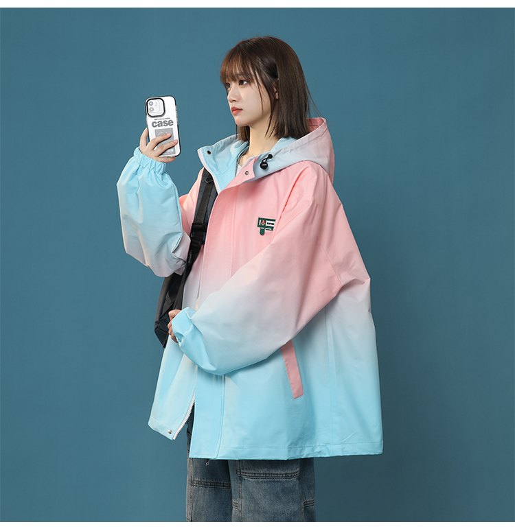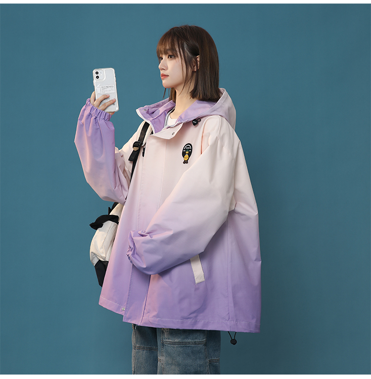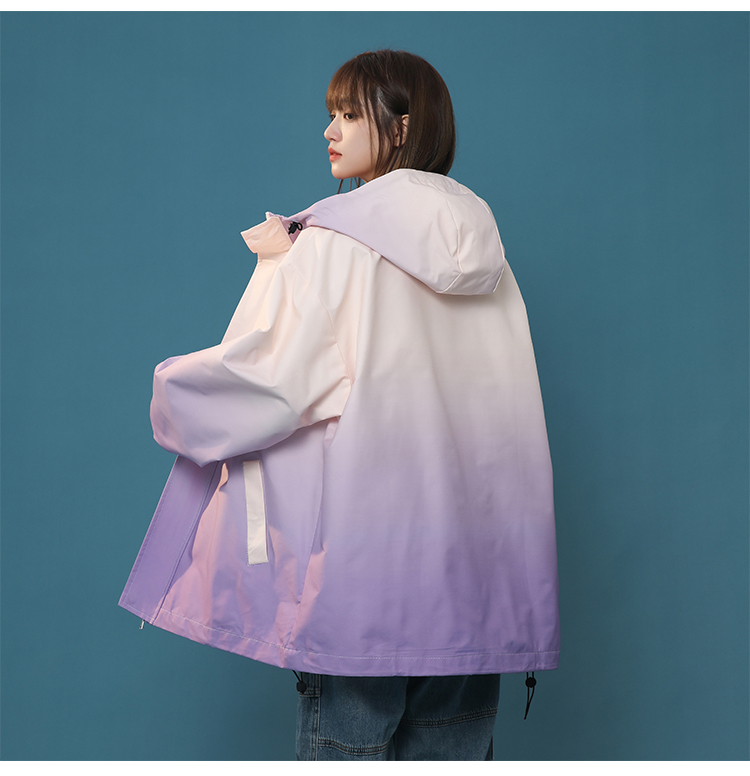 紥染漸變色沖鋒衣外套女春季胖mm學生大碼寬松拼色連帽棒球服夾克