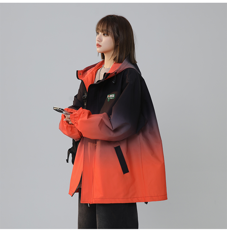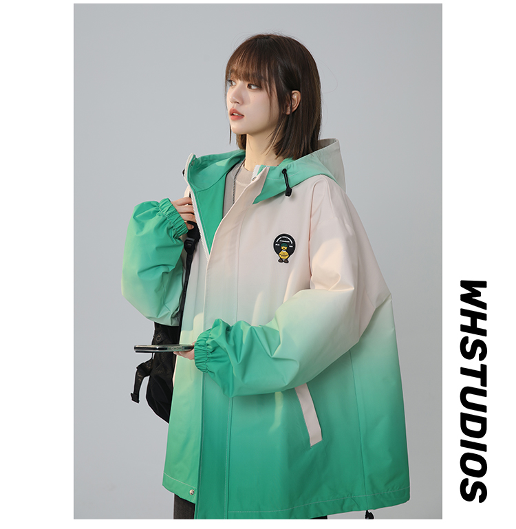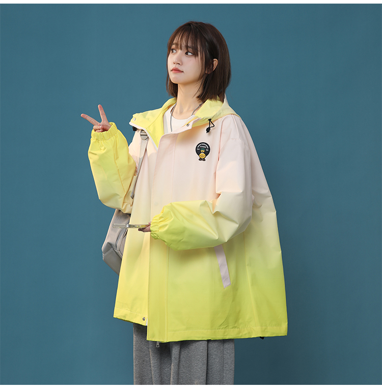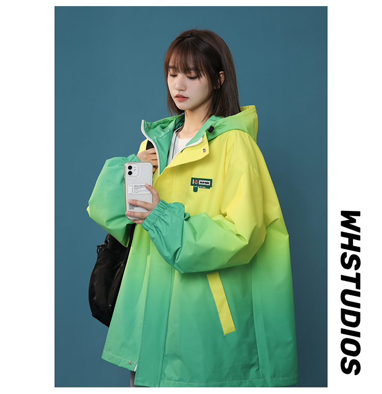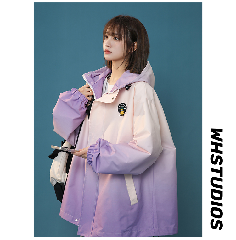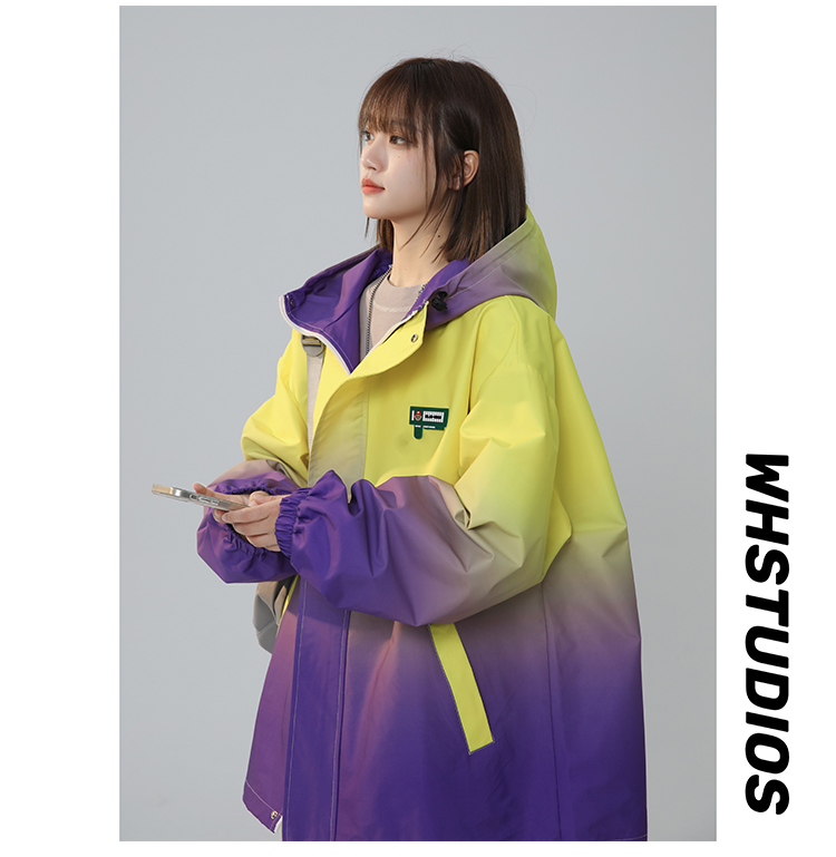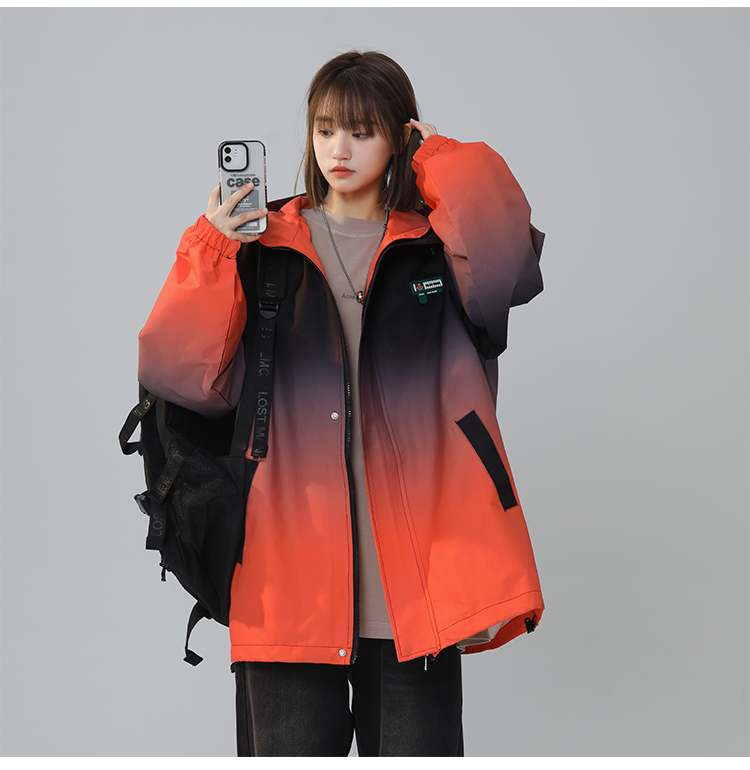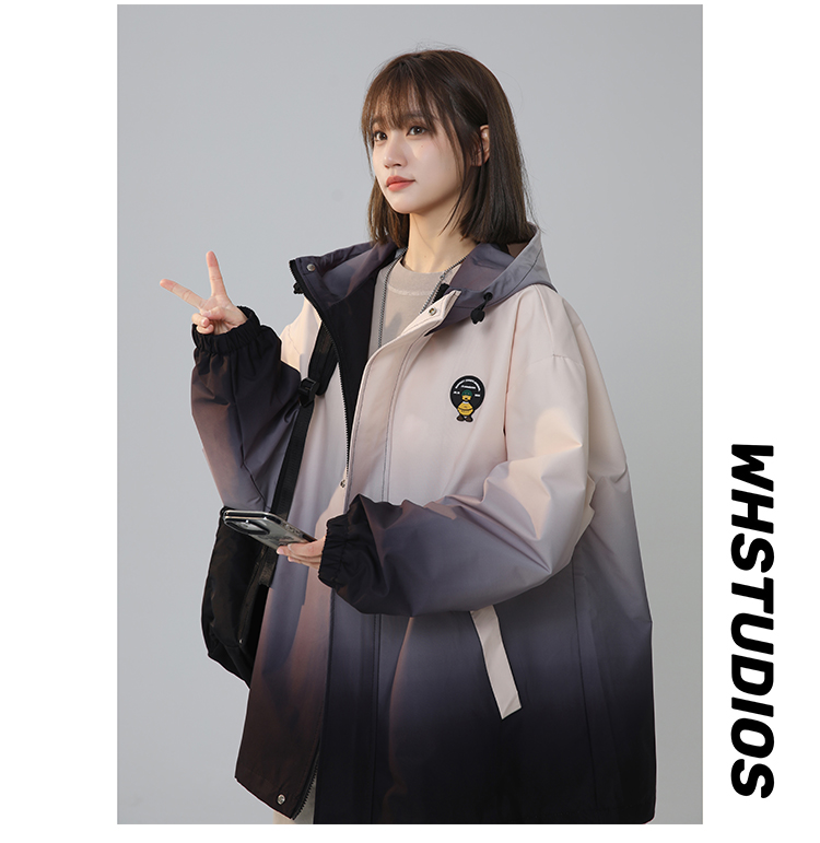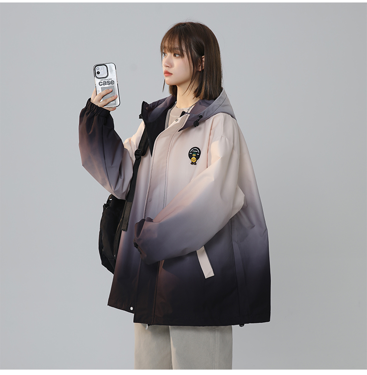 紥染漸變色沖鋒衣外套女春季胖mm學生大碼寬松拼色連帽棒球服夾克
