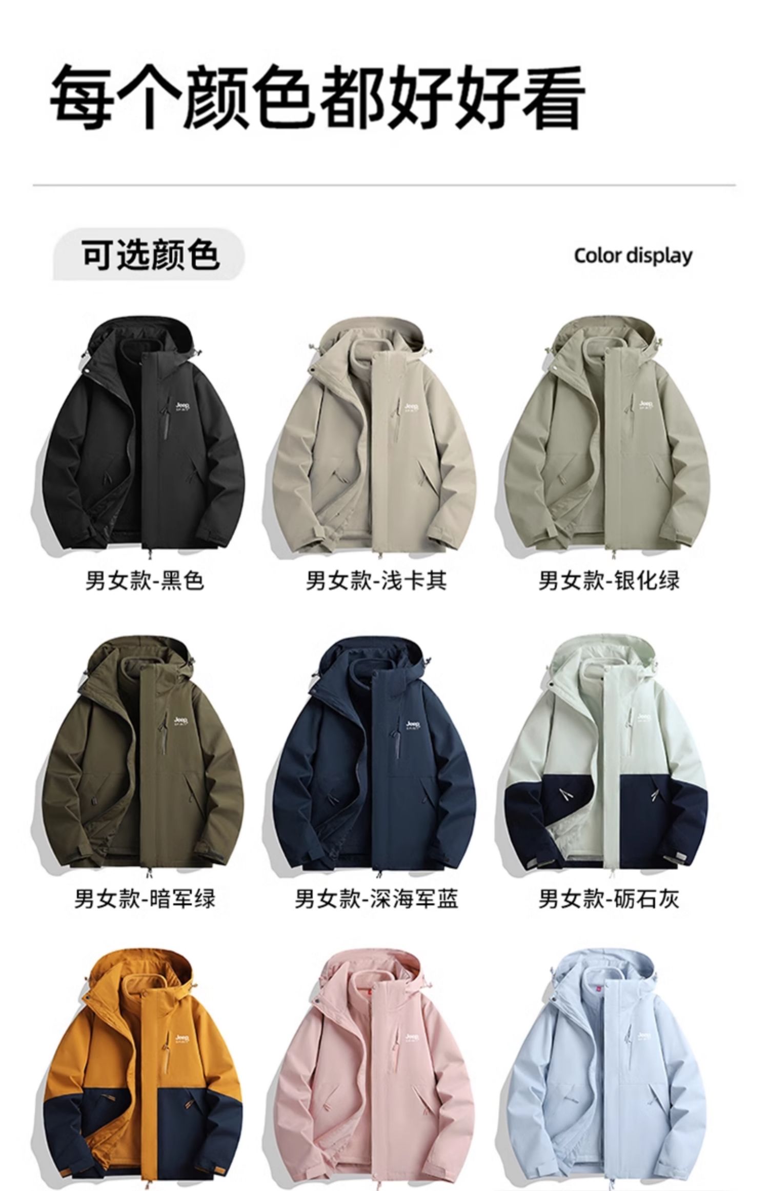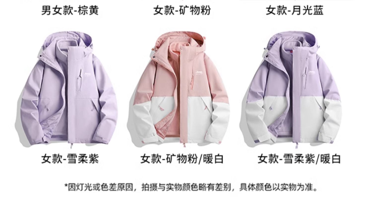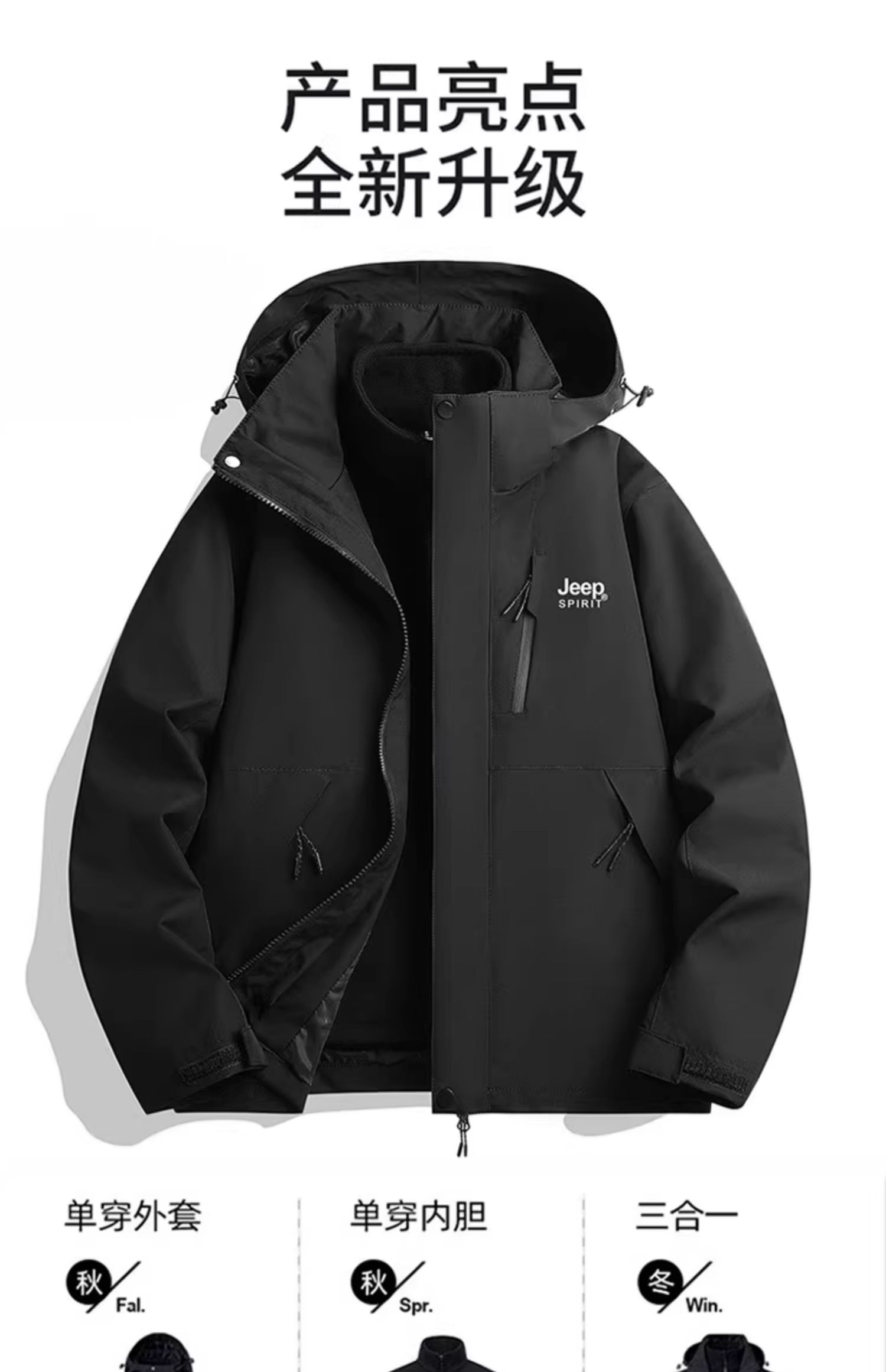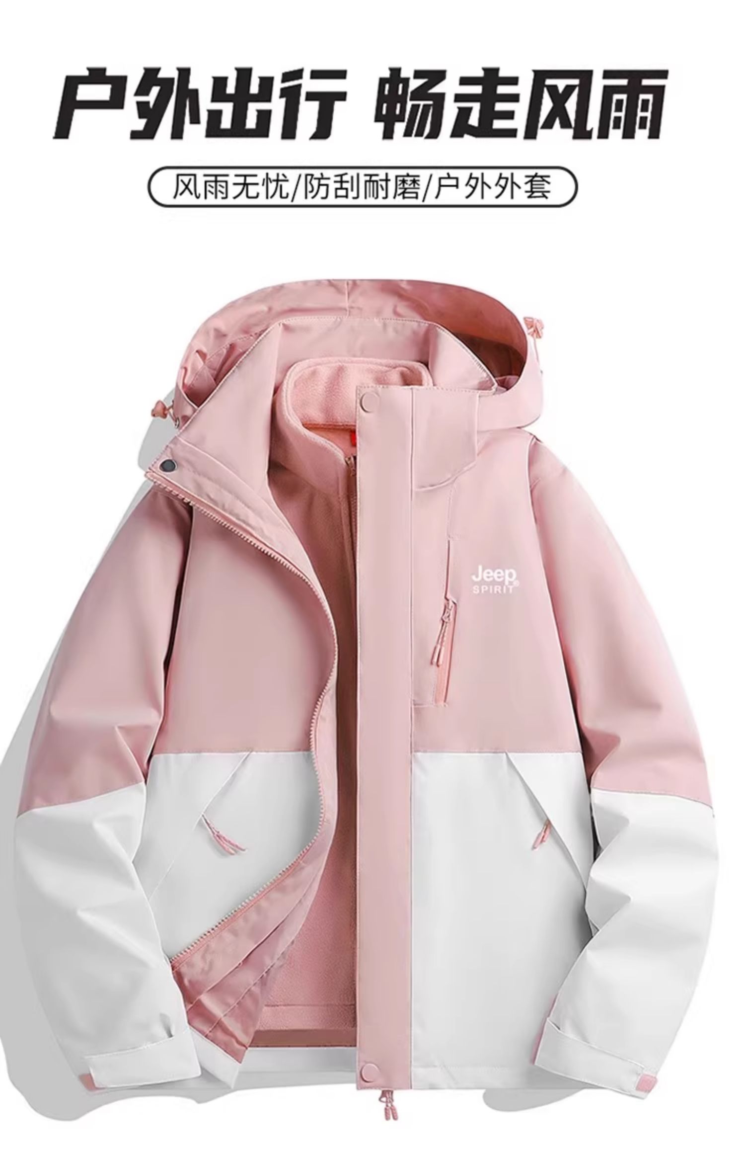 JEEP沖鋒衣女2025春秋季新款戶外三合一可拆卸冬天徒步旅行外套男