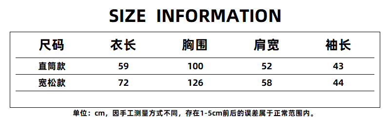 款式及尺寸: