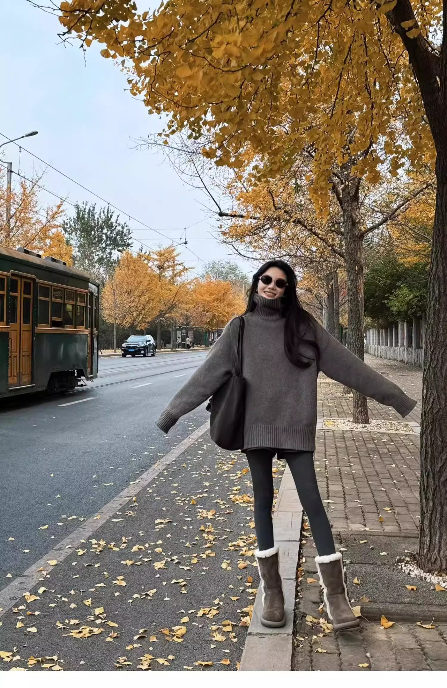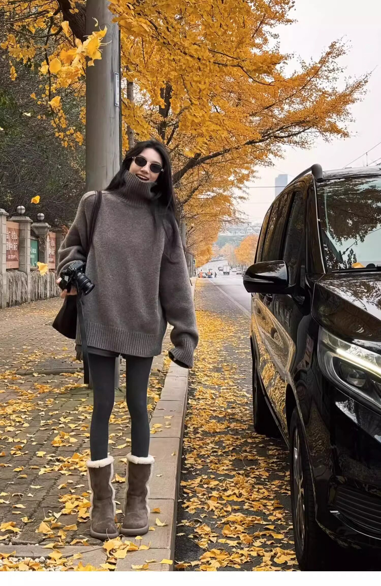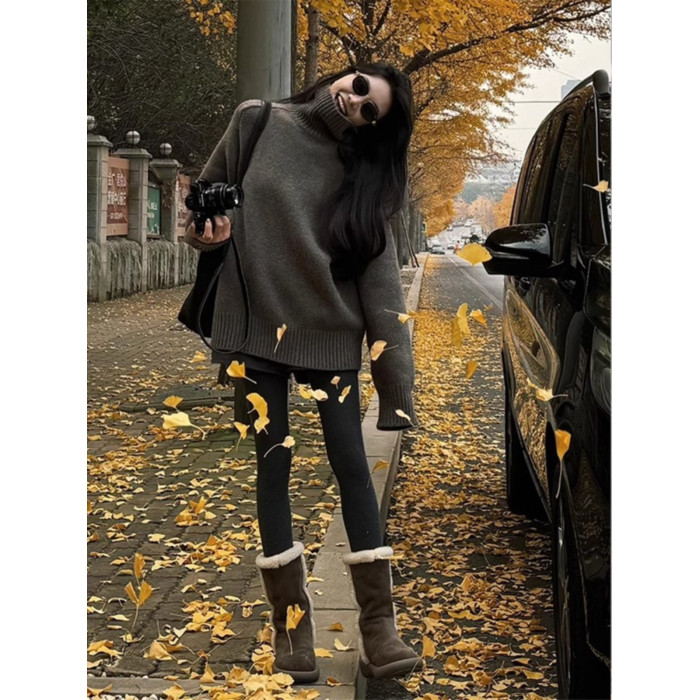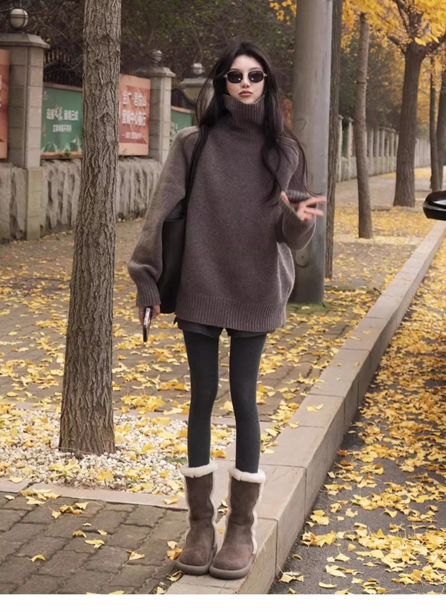 冬季高領套頭毛衣女秋冬加厚外穿慵懶風寬松中長款遮屁股針織上衣