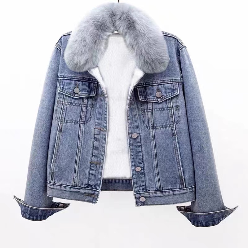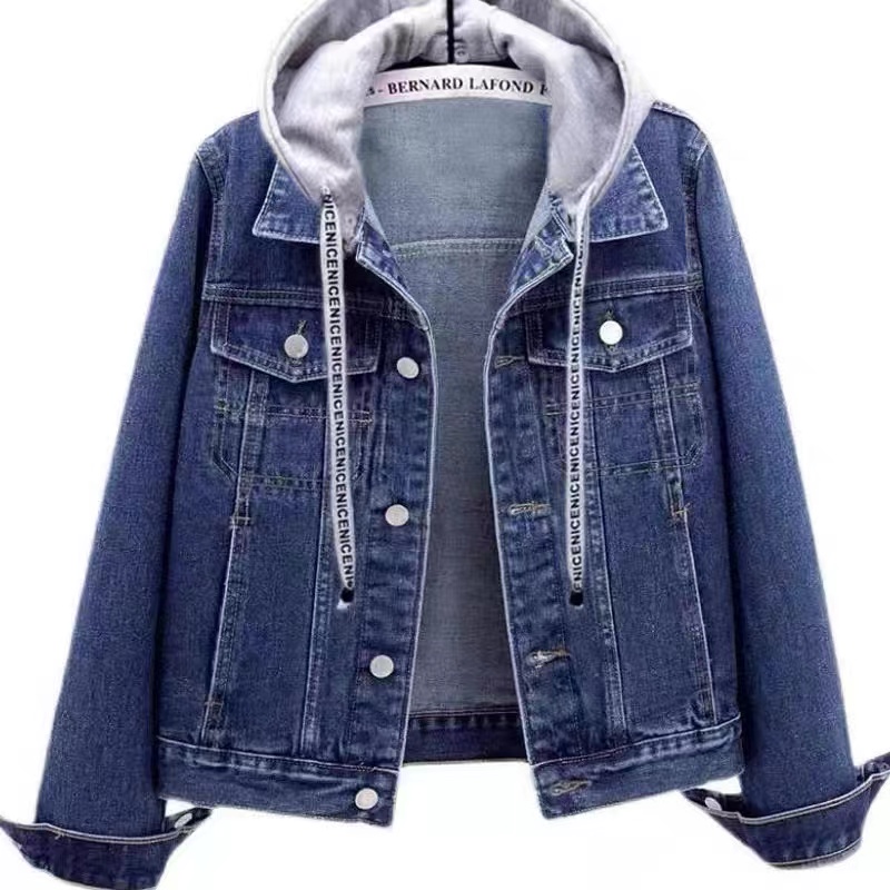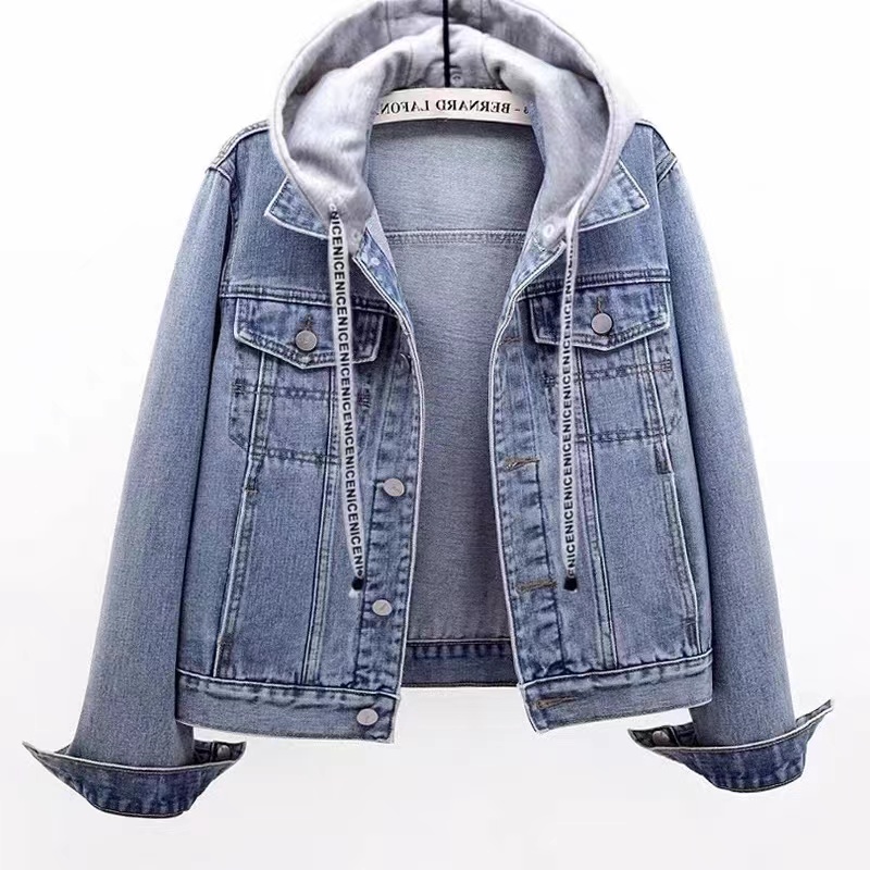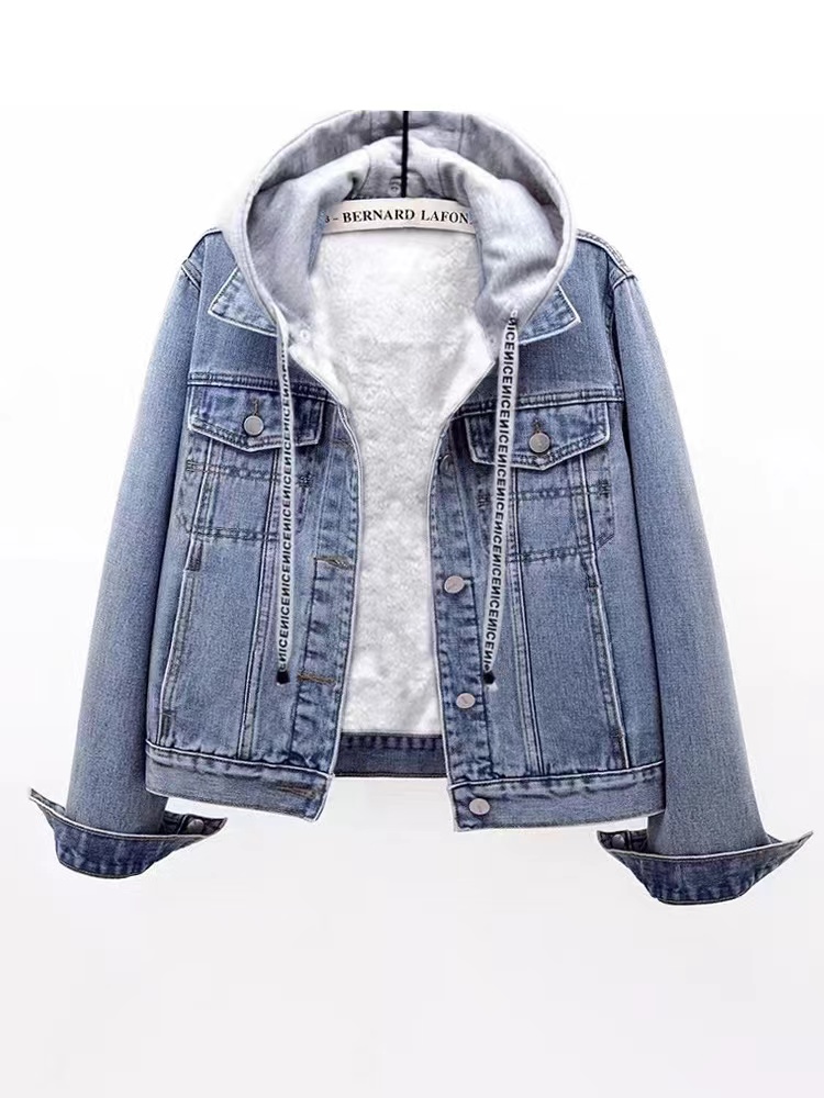連帽牛仔外套女寬松2025秋冬季新款韓版加絨加厚上衣棉服短款字母