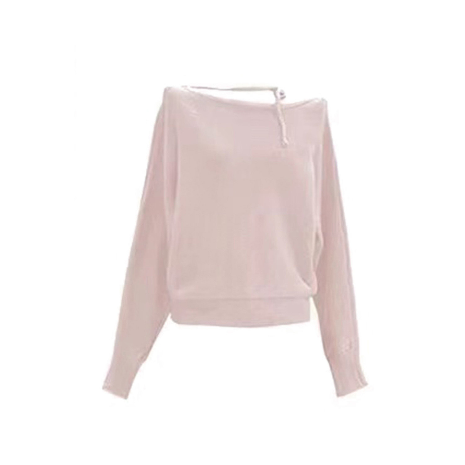 粉色不規則斜肩掛脖毛衣女款秋季2025新款韓系穿搭短款針織衫上衣
