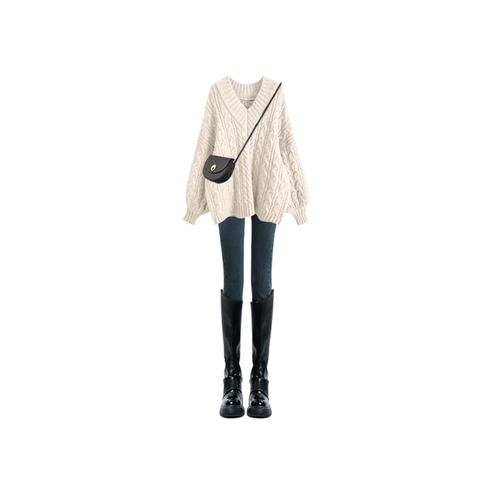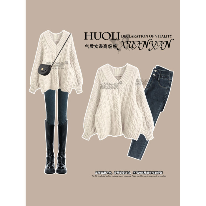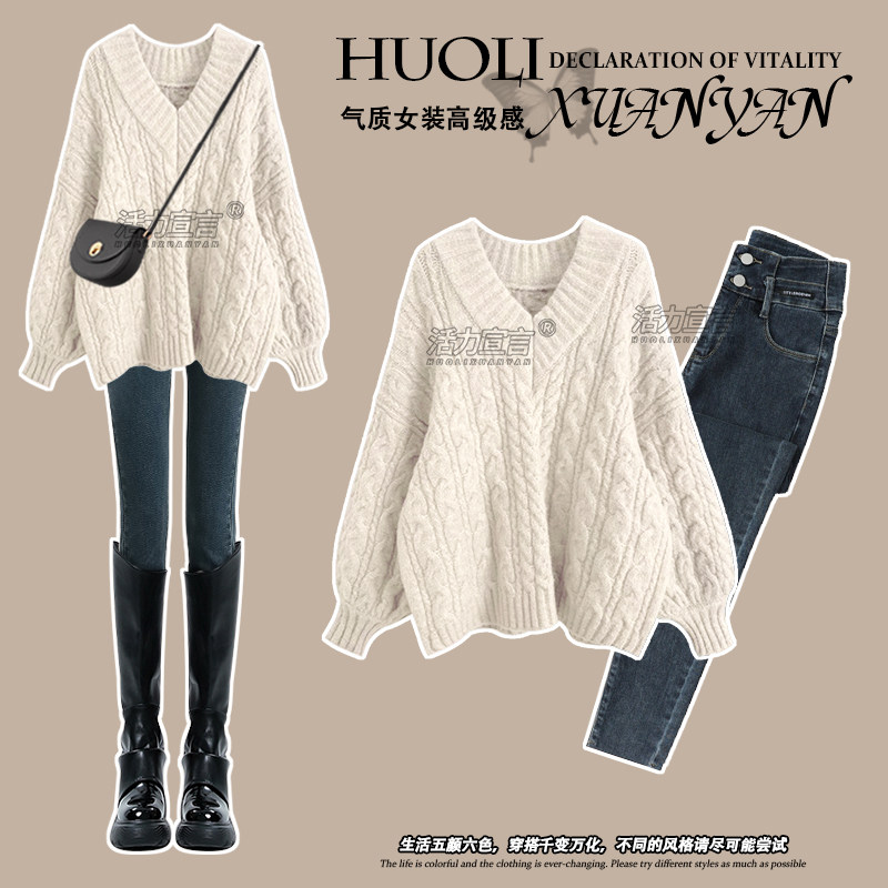 韓系冬季穿搭寬松慵懶v領毛衣女巨好看的冬裝高級感衣服針織上衣