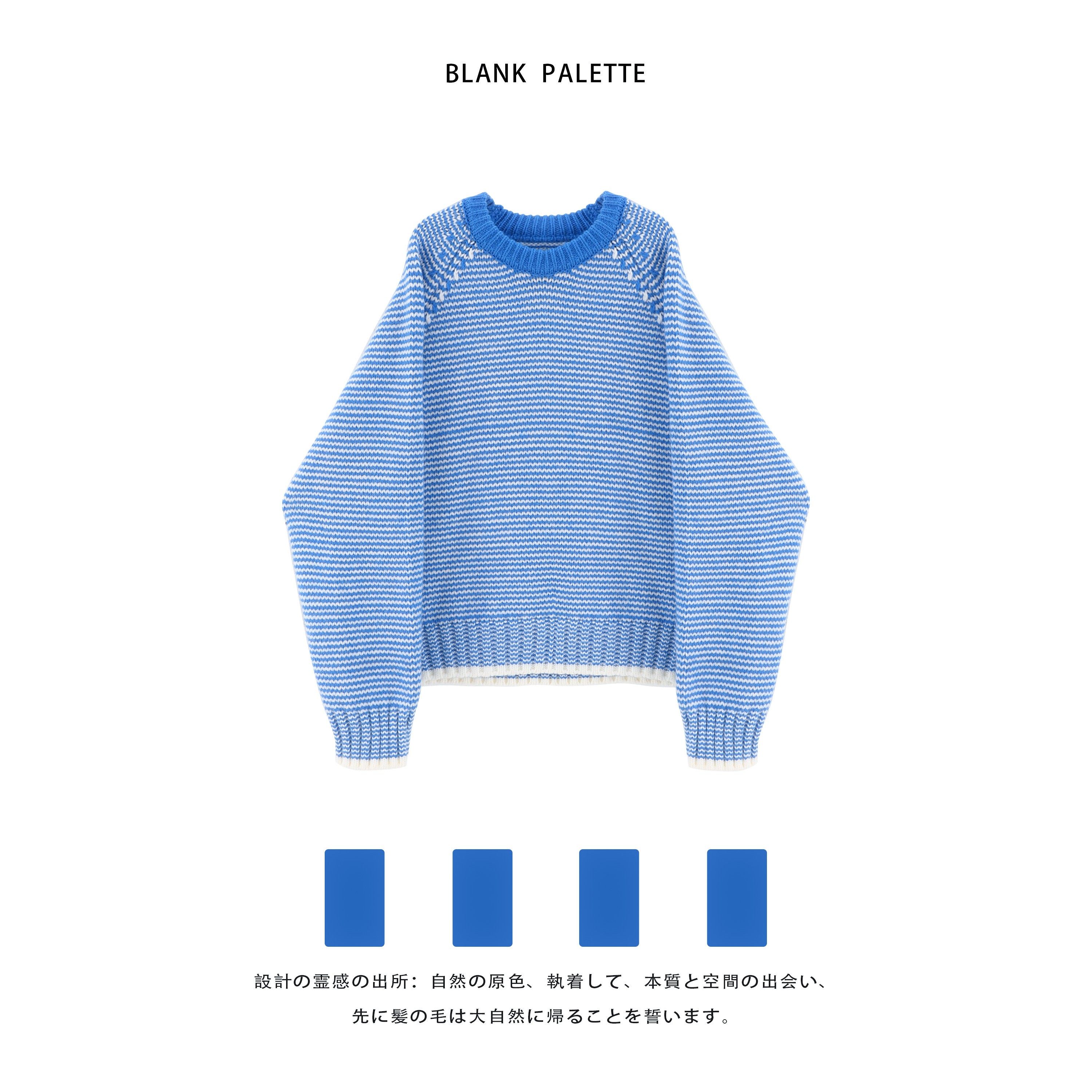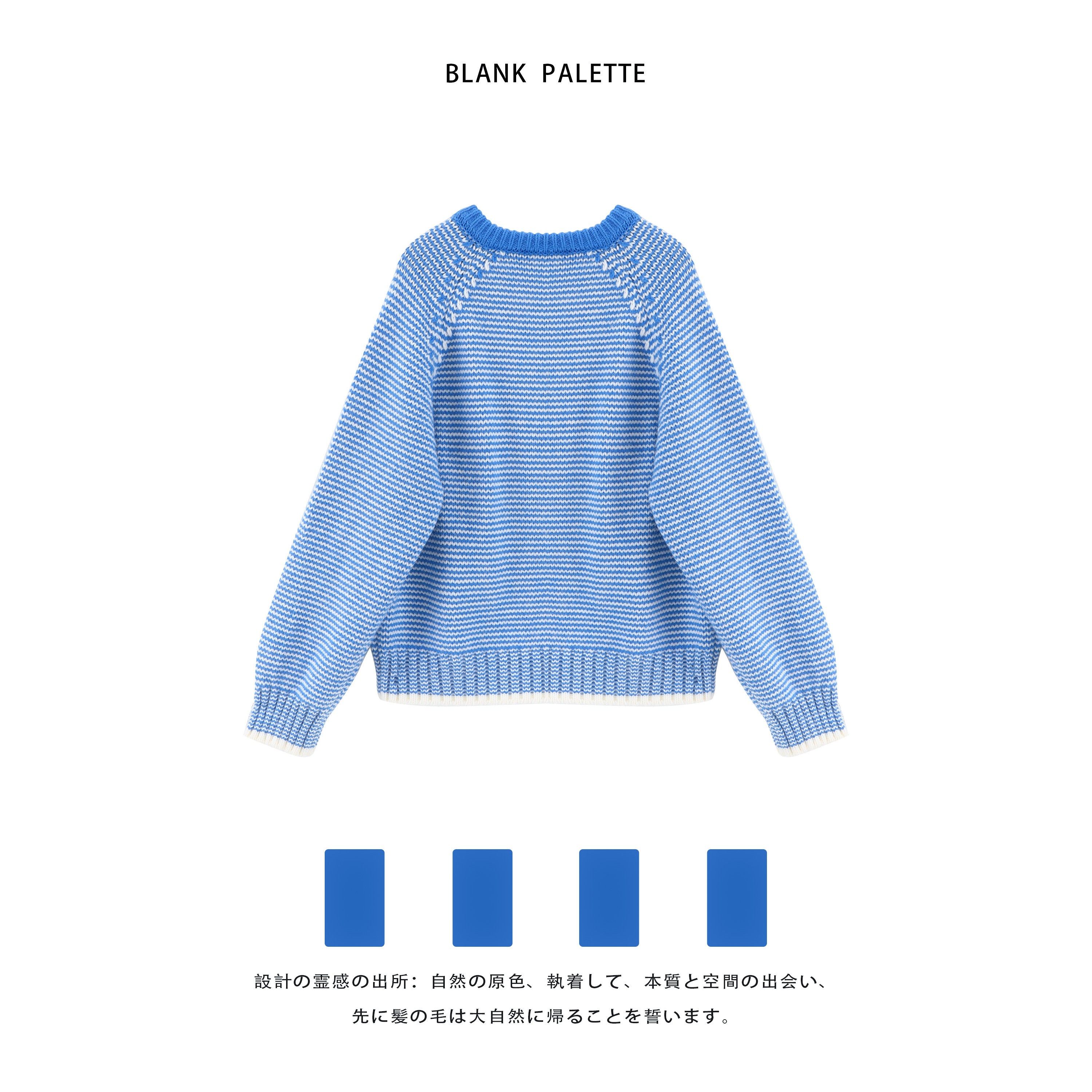Blank palette|條紋藍色設計感毛衣慵懶高級感上衣小衆秋冬穿搭