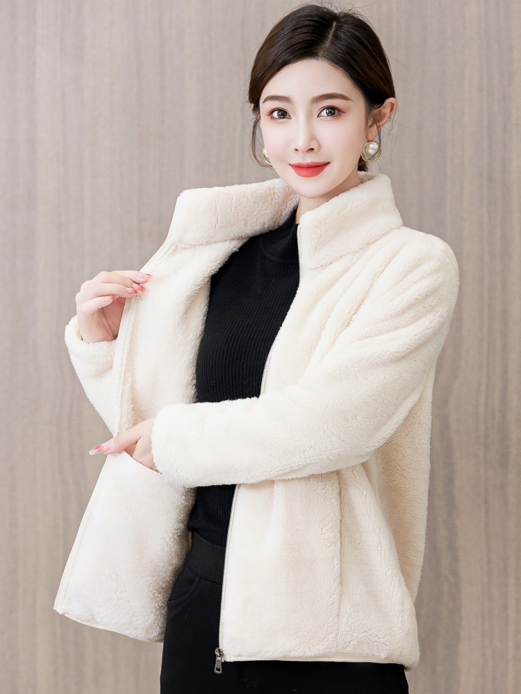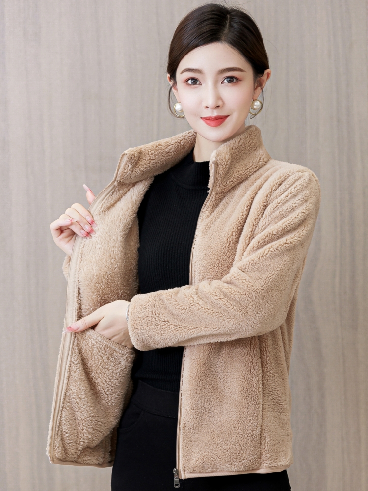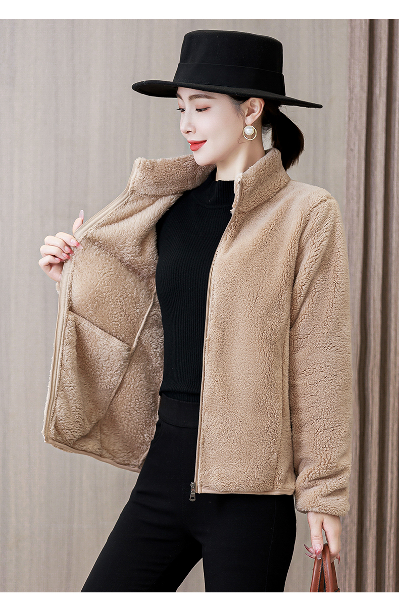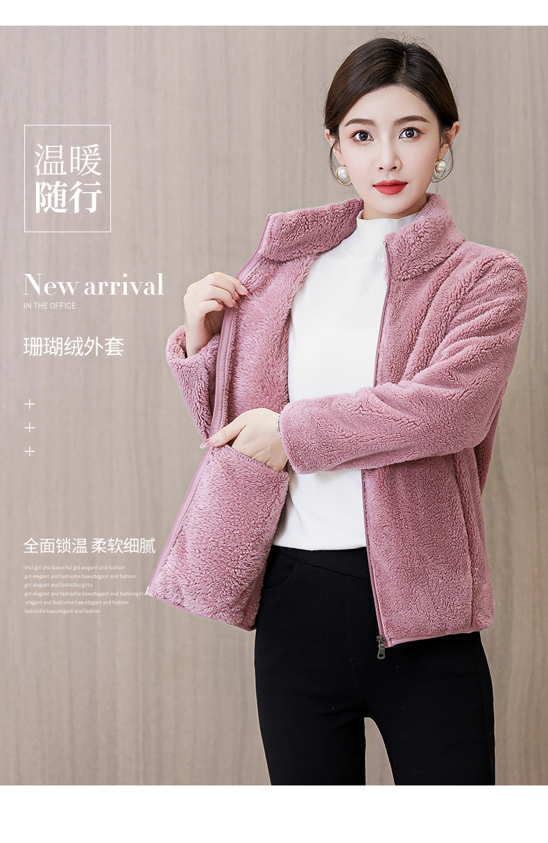 秋冬外套女短款加絨加厚雙面珊瑚絨保暖搖粒法蘭絨衣長袖毛絨內膽