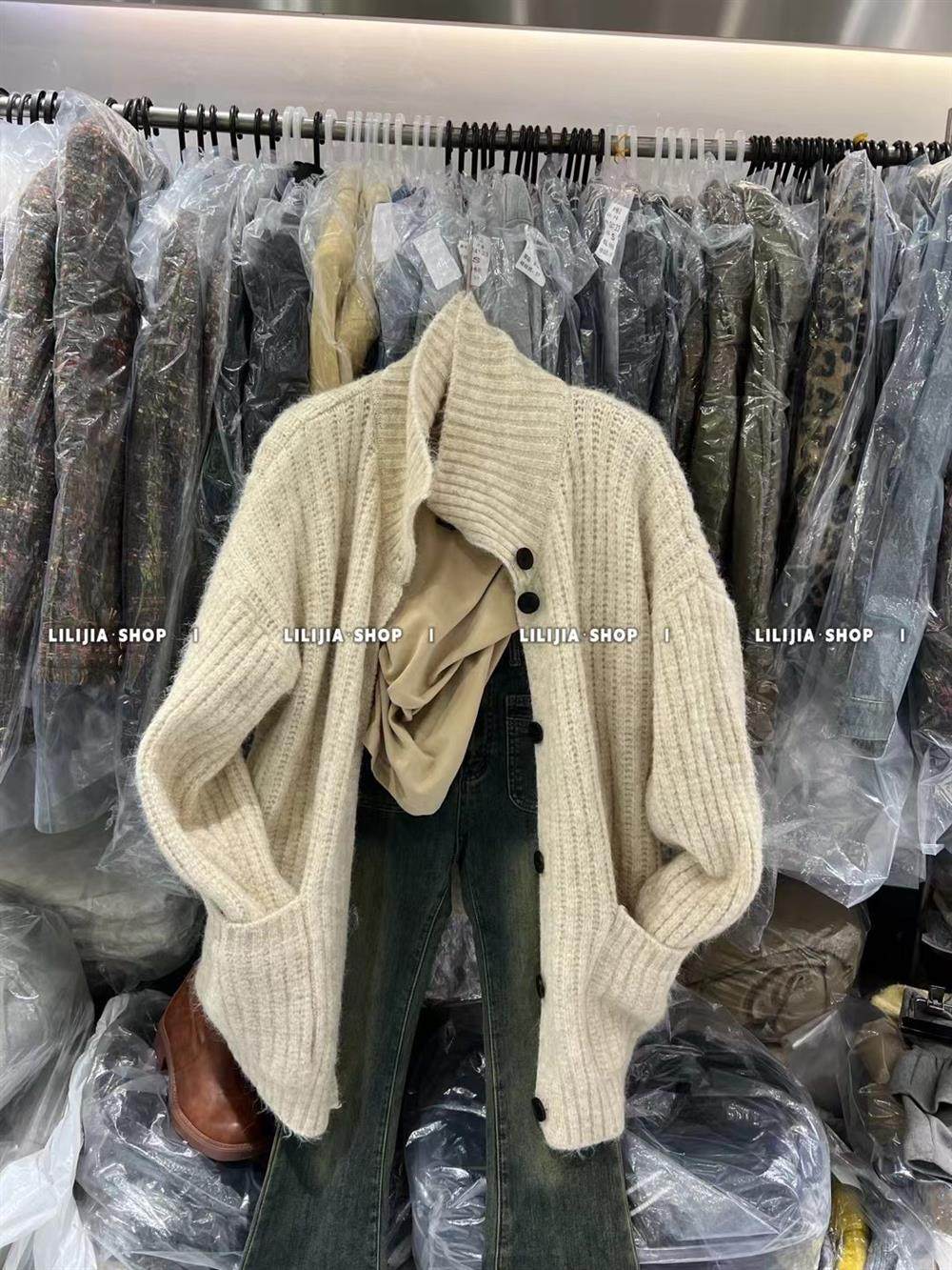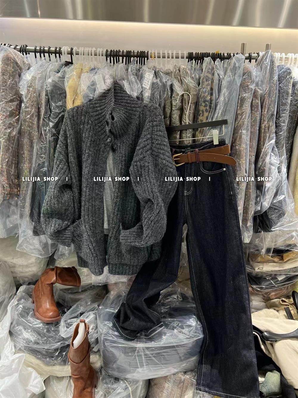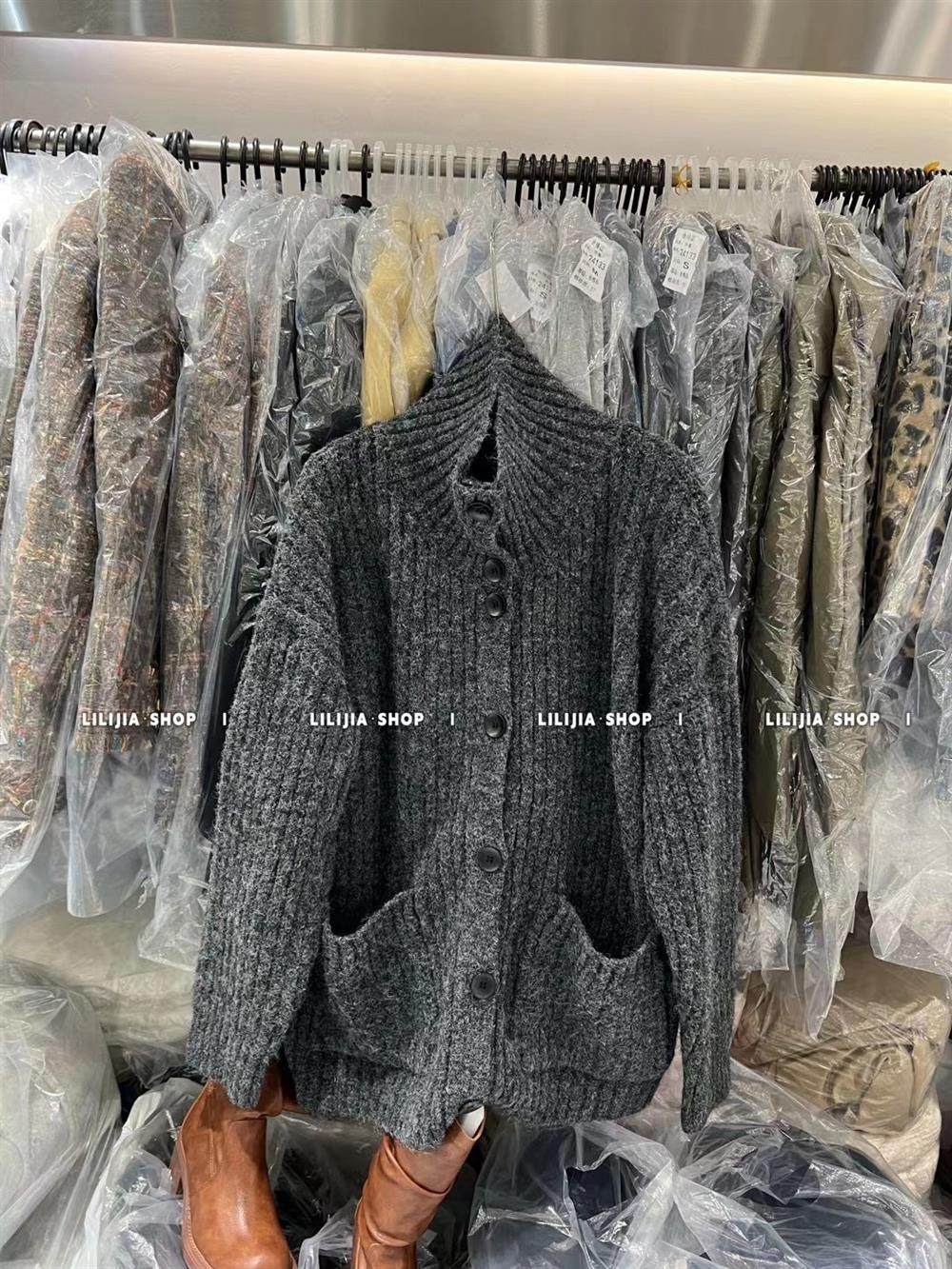 韓國東大門2025秋冬款寬松慵懶風針織開衫高級感高領加厚毛衣外套