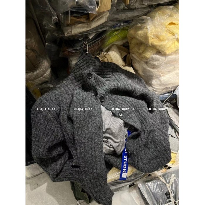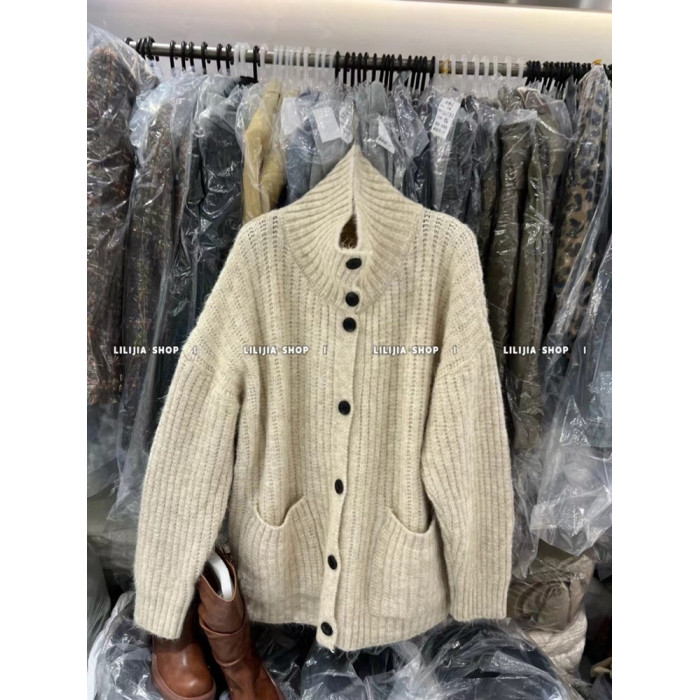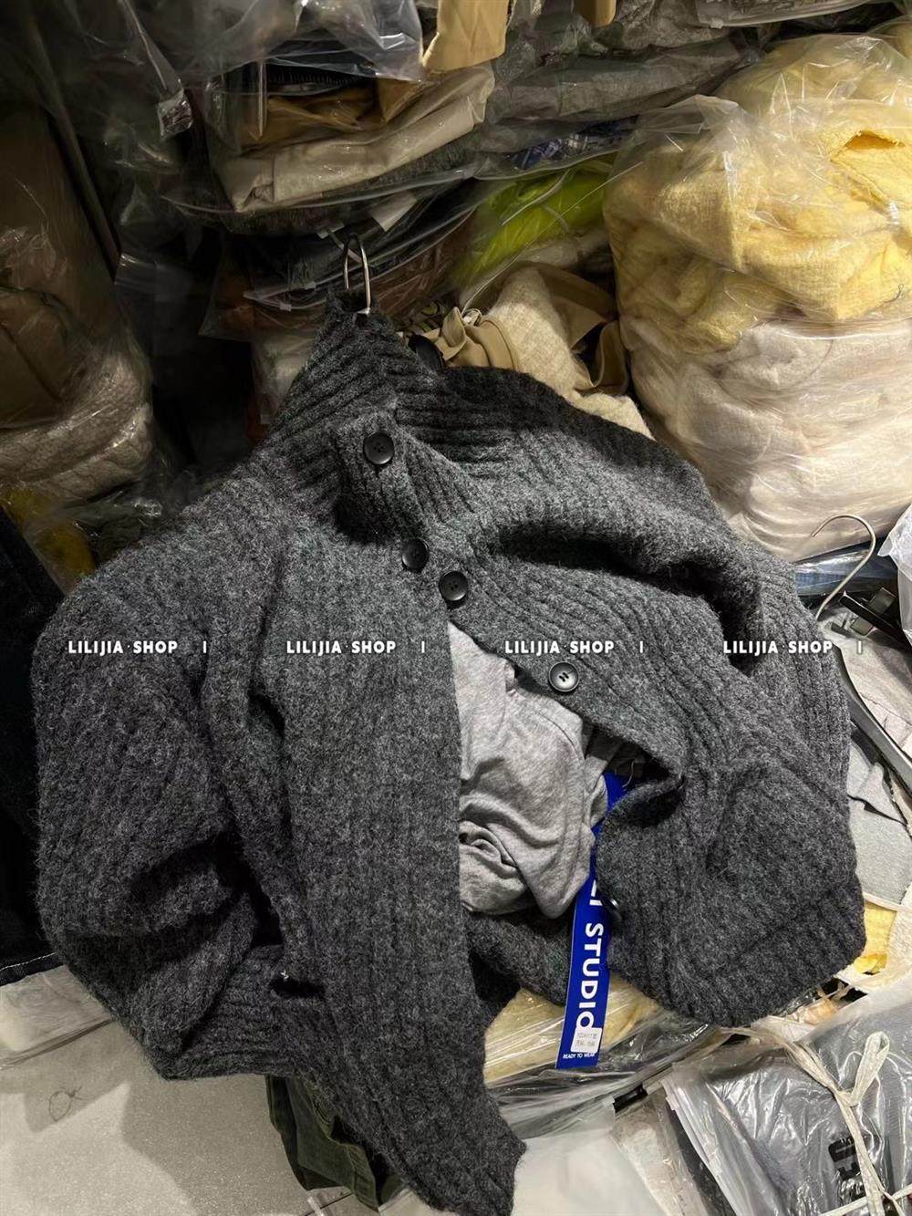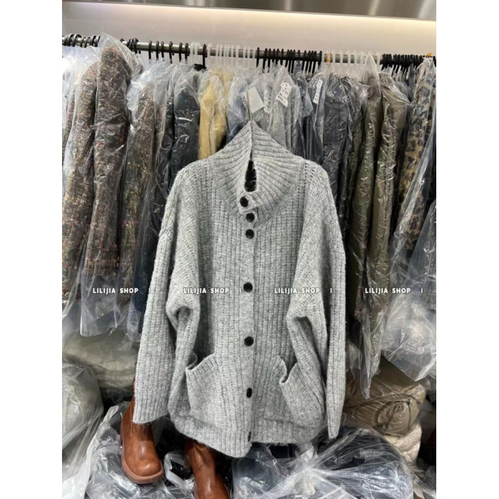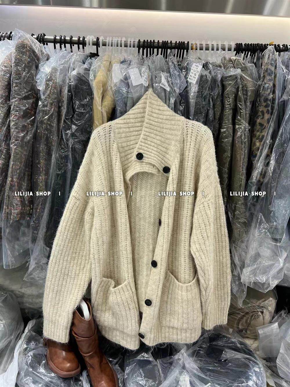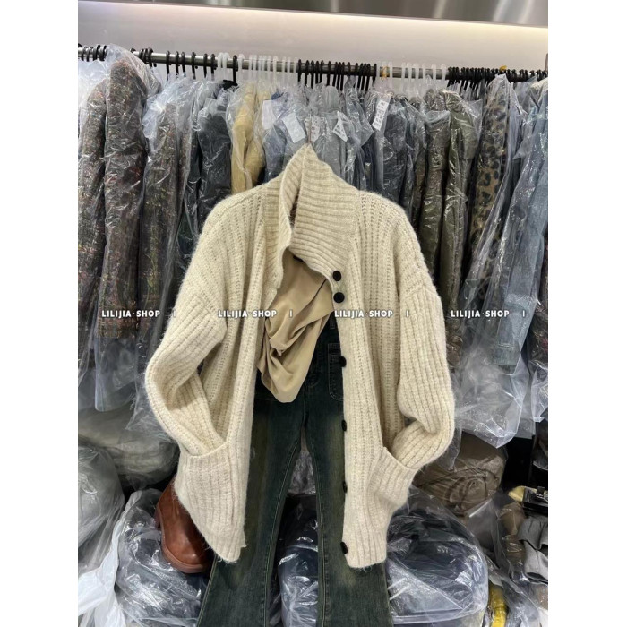 韓國東大門2025秋冬款寬松慵懶風針織開衫高級感高領加厚毛衣外套