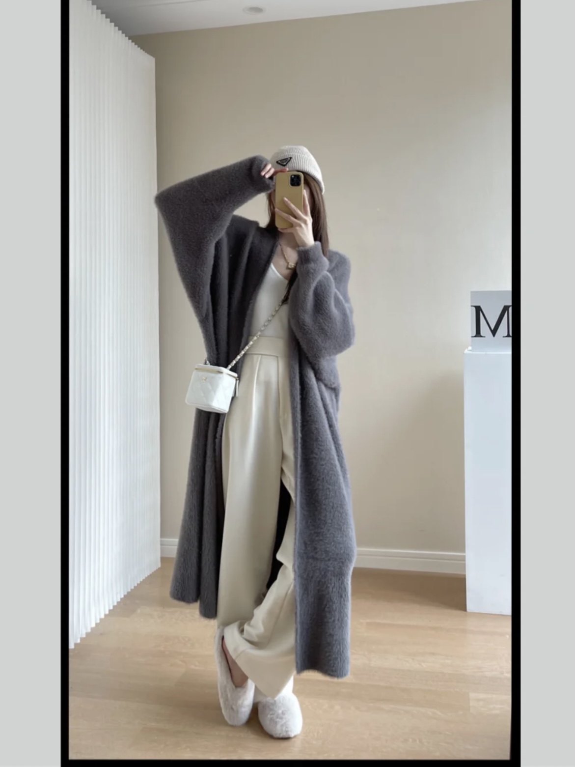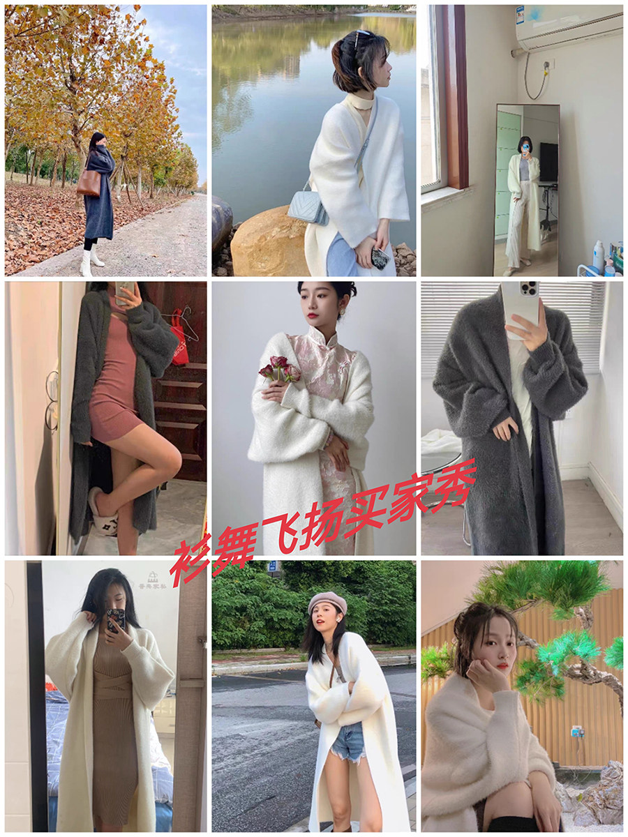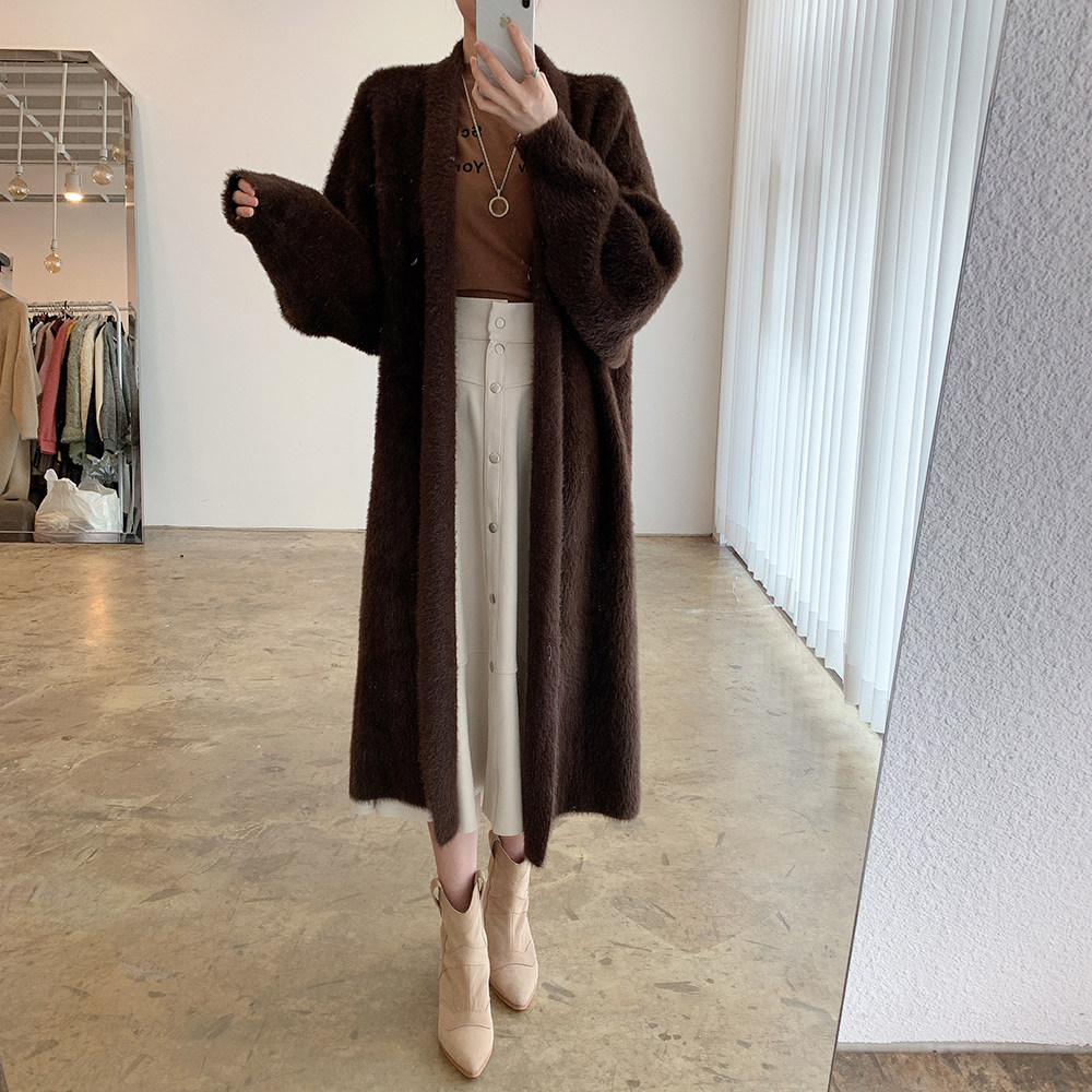 2024秋冬慵懶風寬松過膝加厚中長款水貂絨針織毛衣開衫外套大衣女