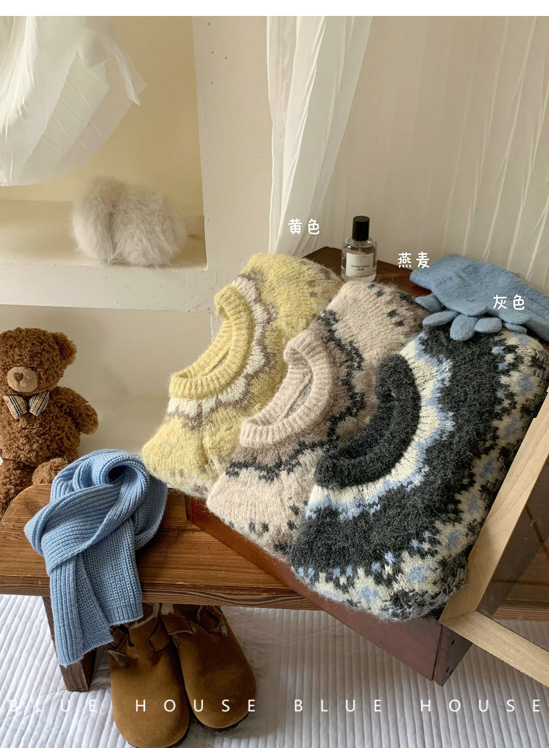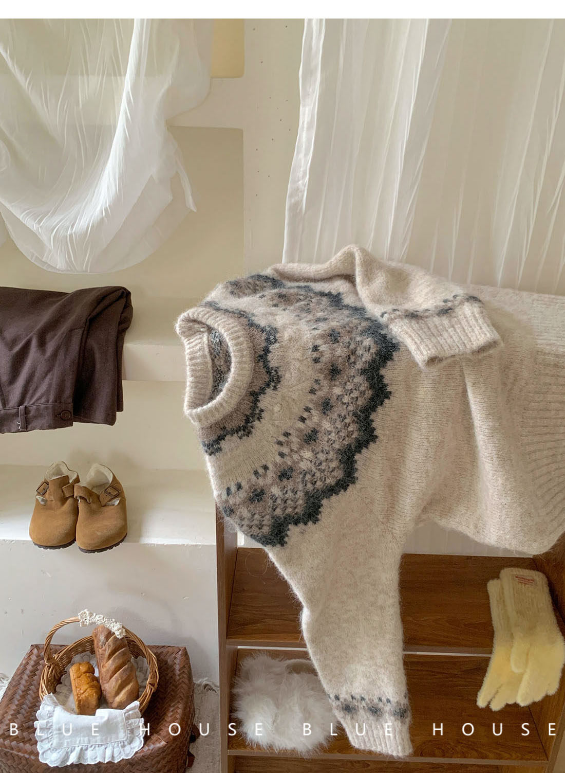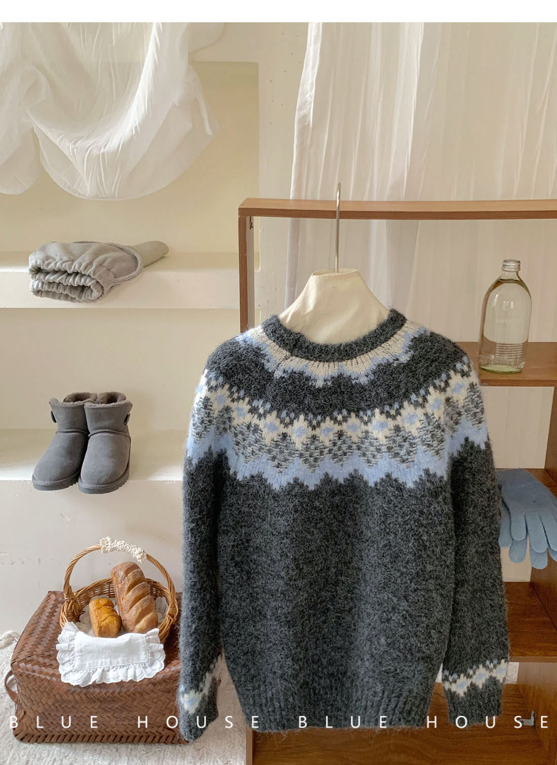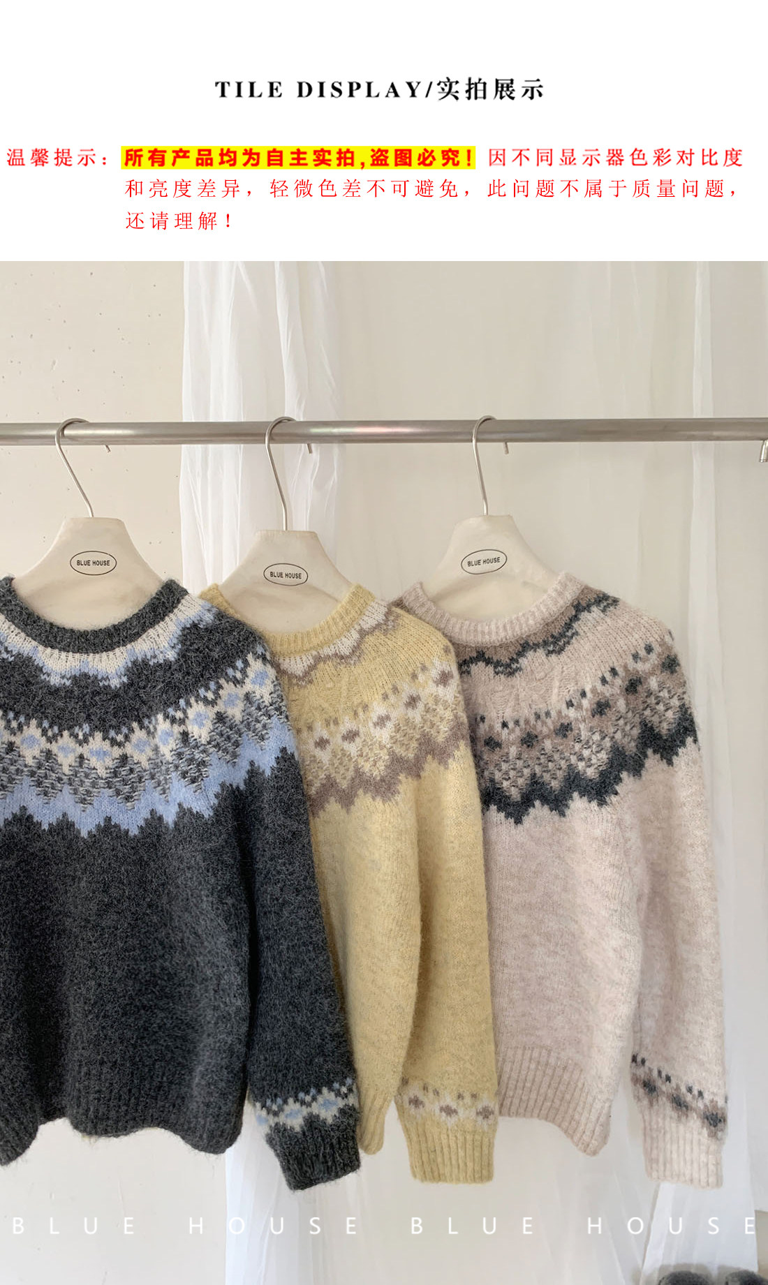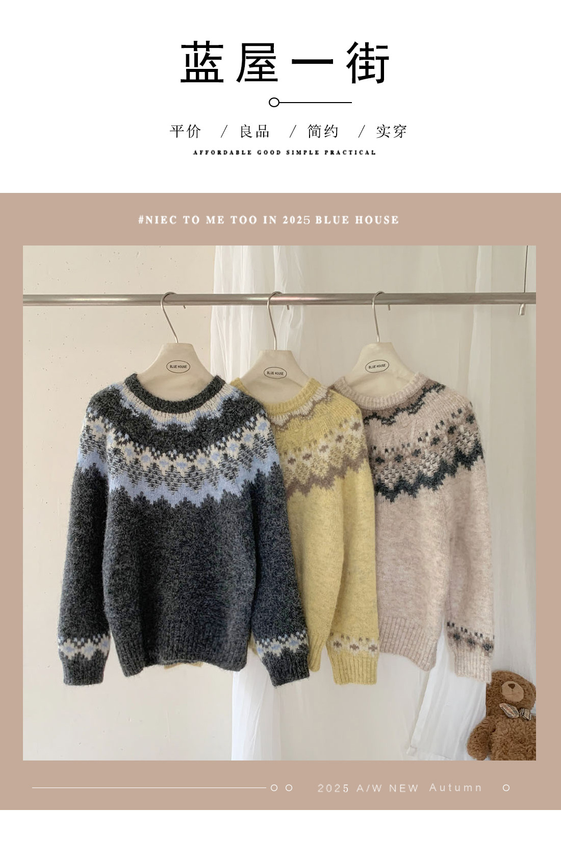 復古撞色提花獨特費爾島毛衣女秋冬季氛圍感寬松慵懶圓領針織上衣