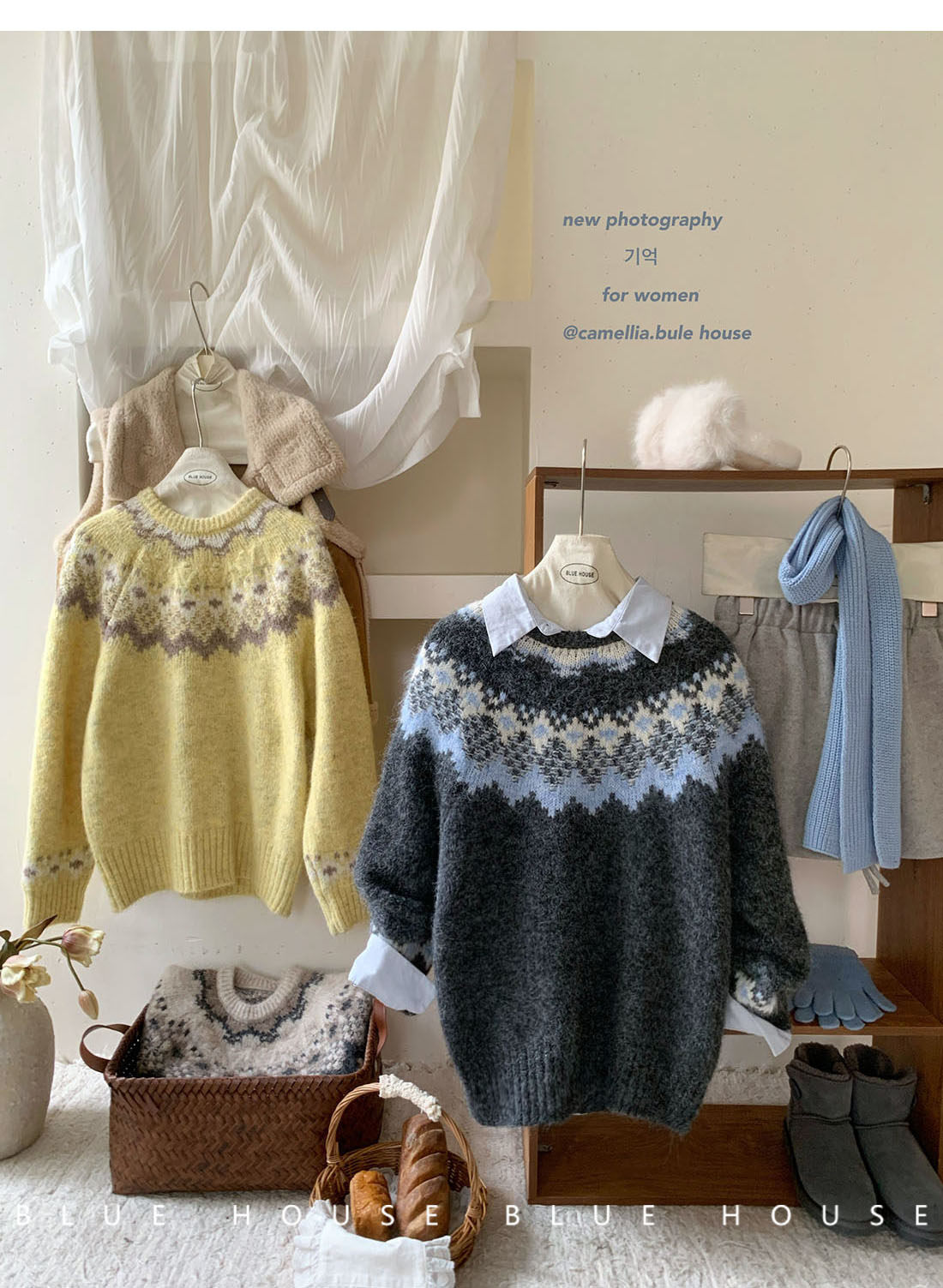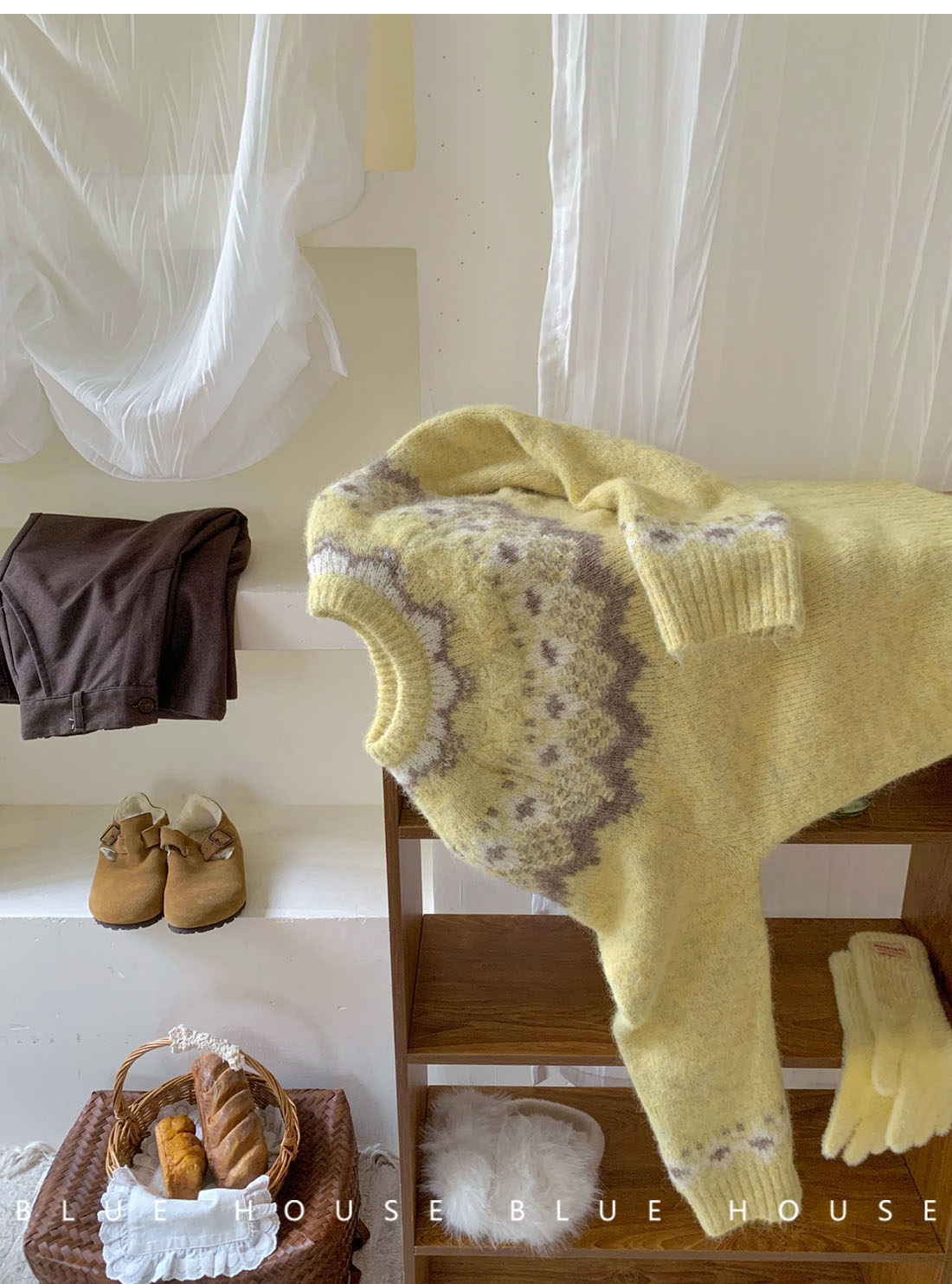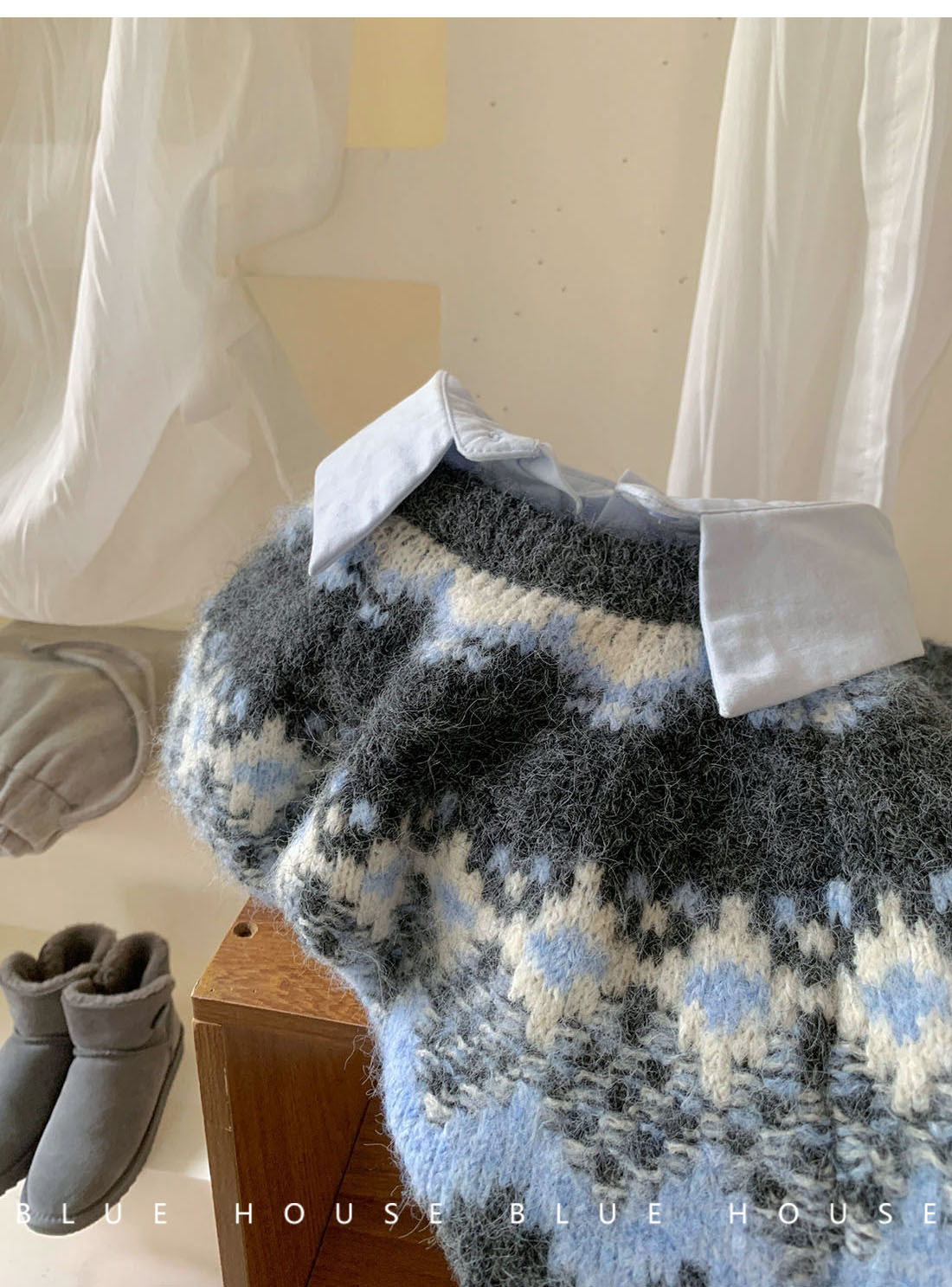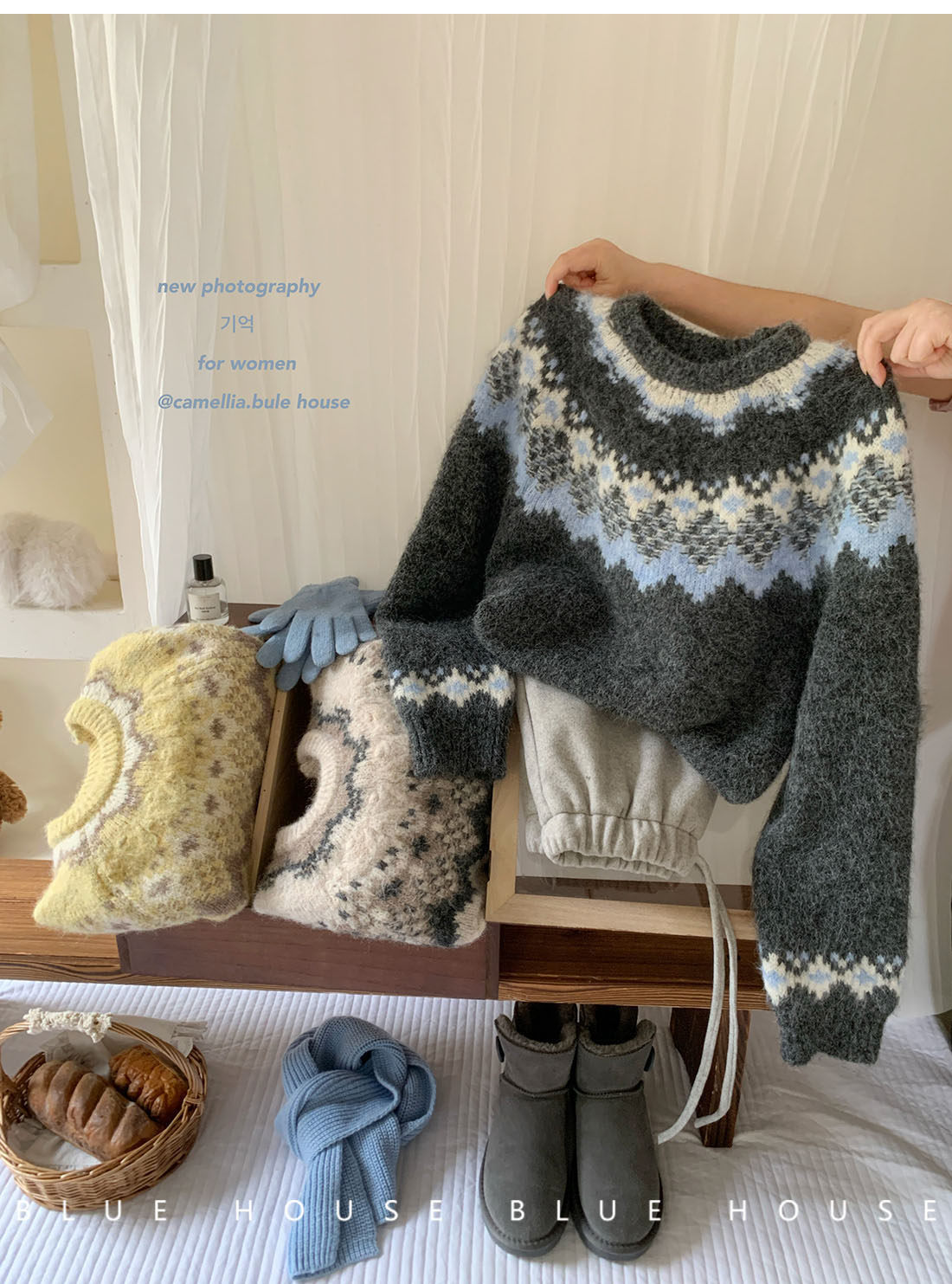 復古撞色提花獨特費爾島毛衣女秋冬季氛圍感寬松慵懶圓領針織上衣