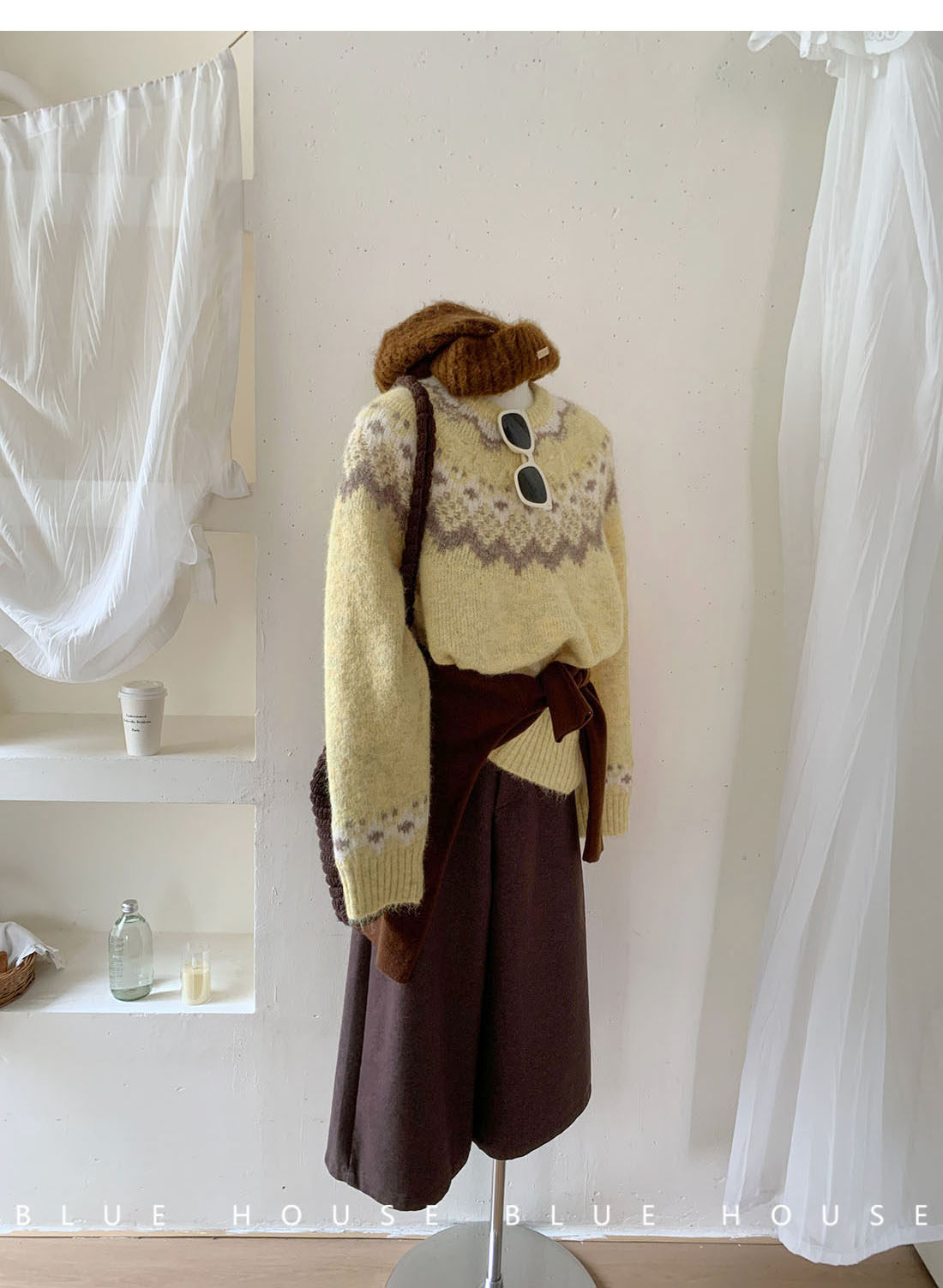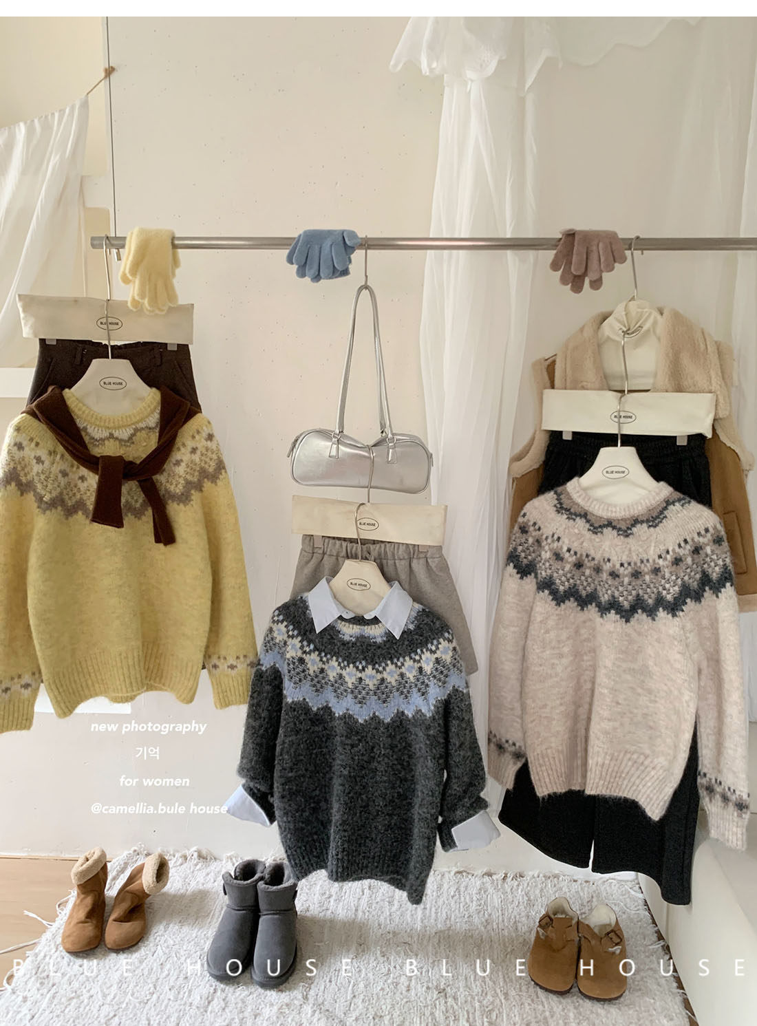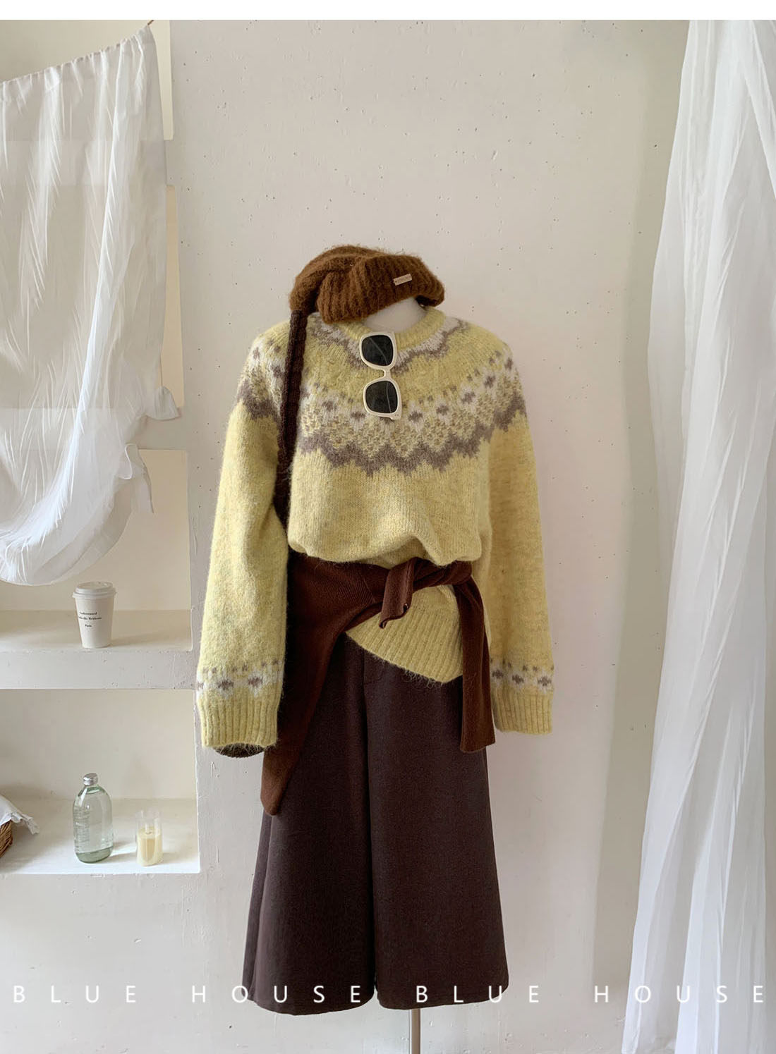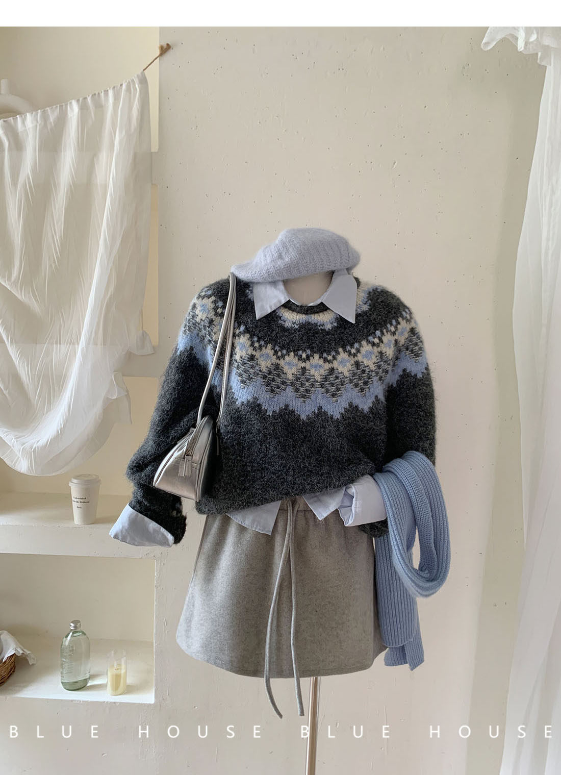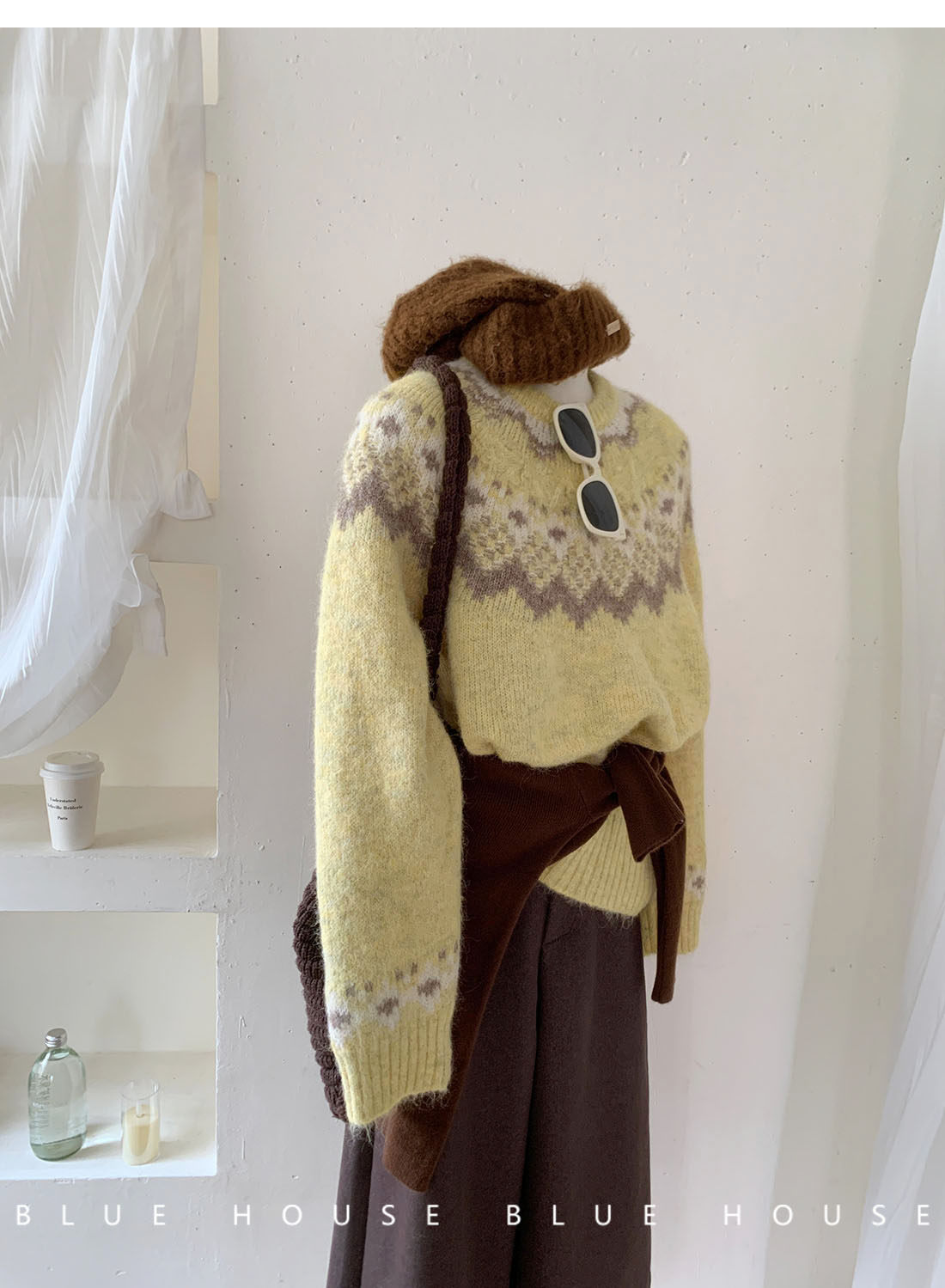 復古撞色提花獨特費爾島毛衣女秋冬季氛圍感寬松慵懶圓領針織上衣