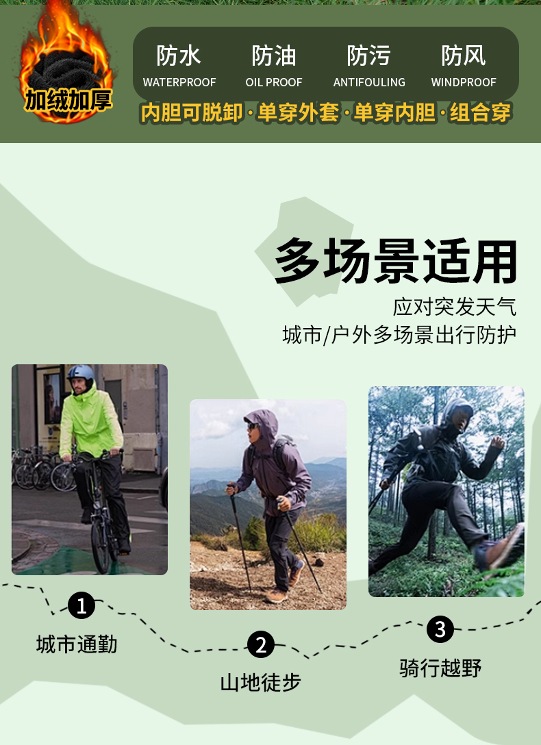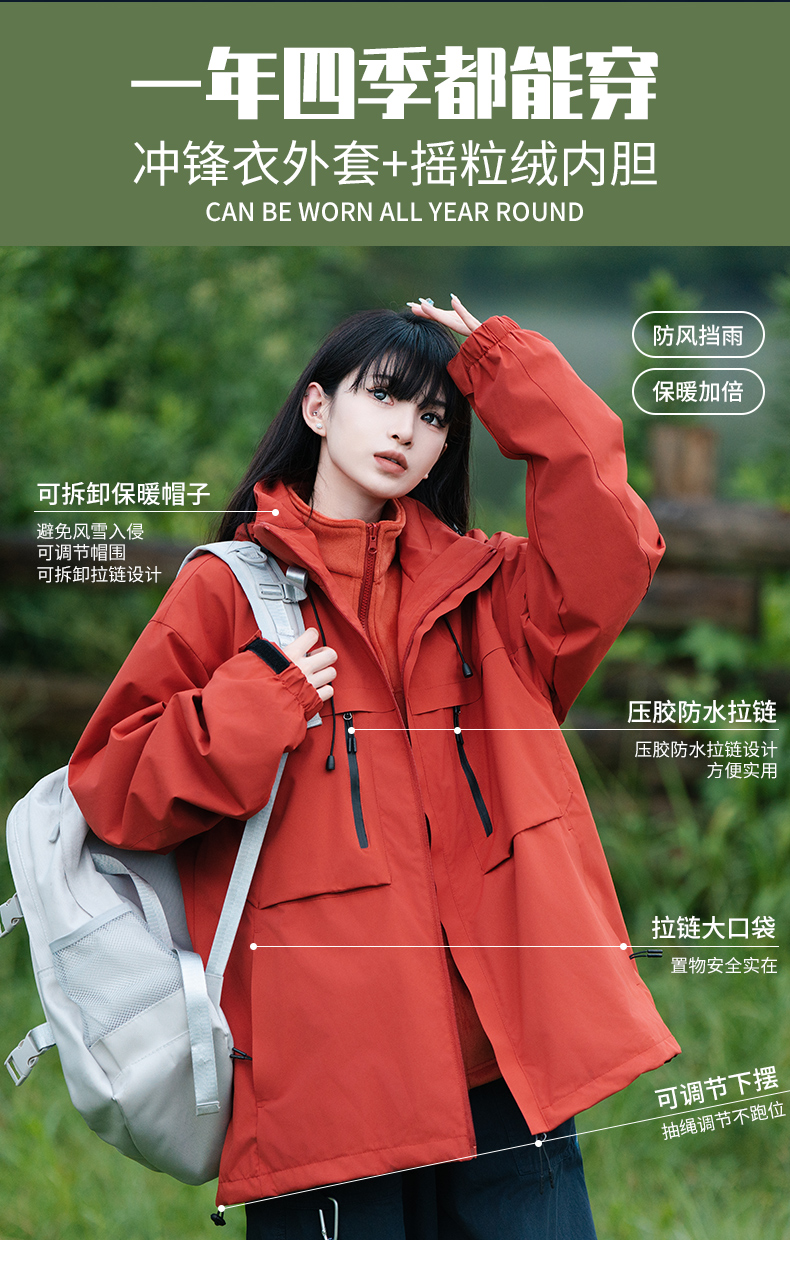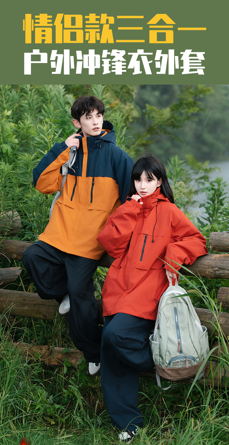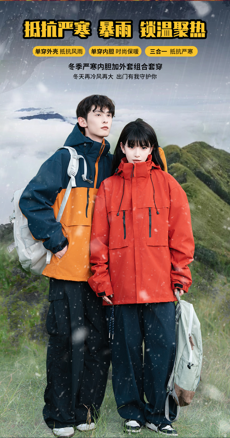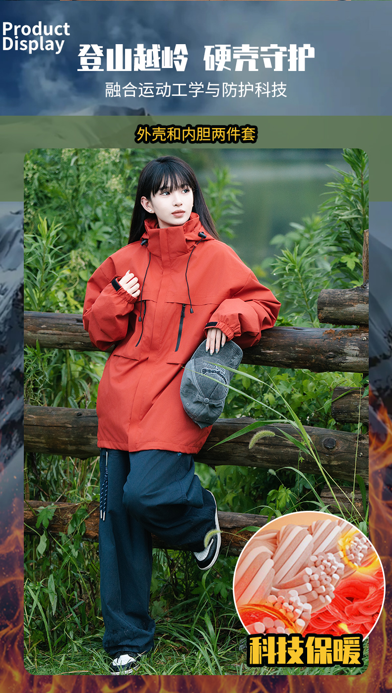 WASSUP CMKPO戶外沖鋒衣女三合一可拆卸兩件套防風防水登山服外套