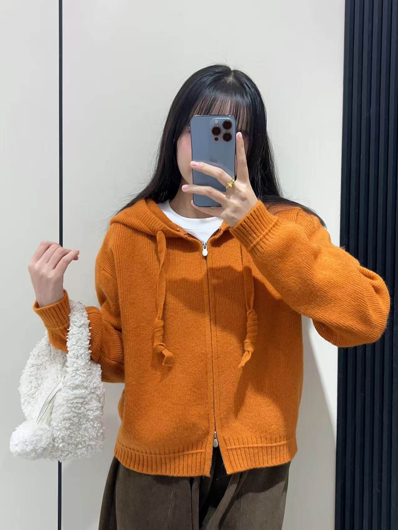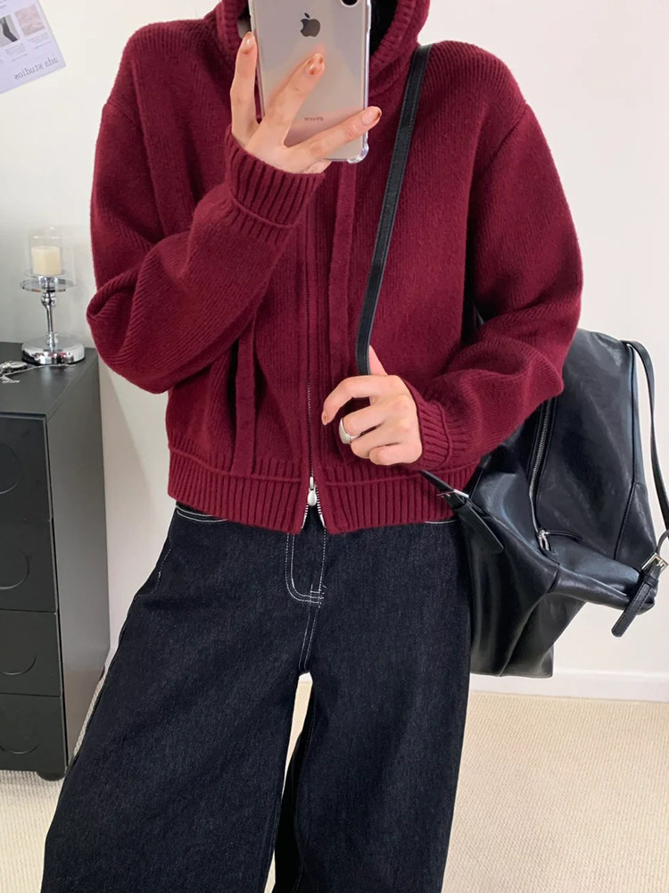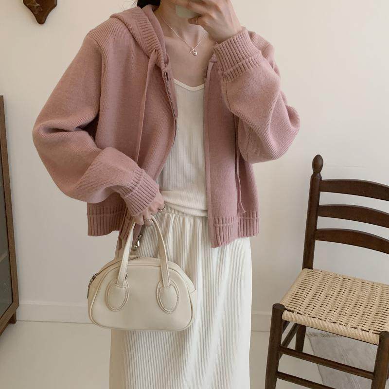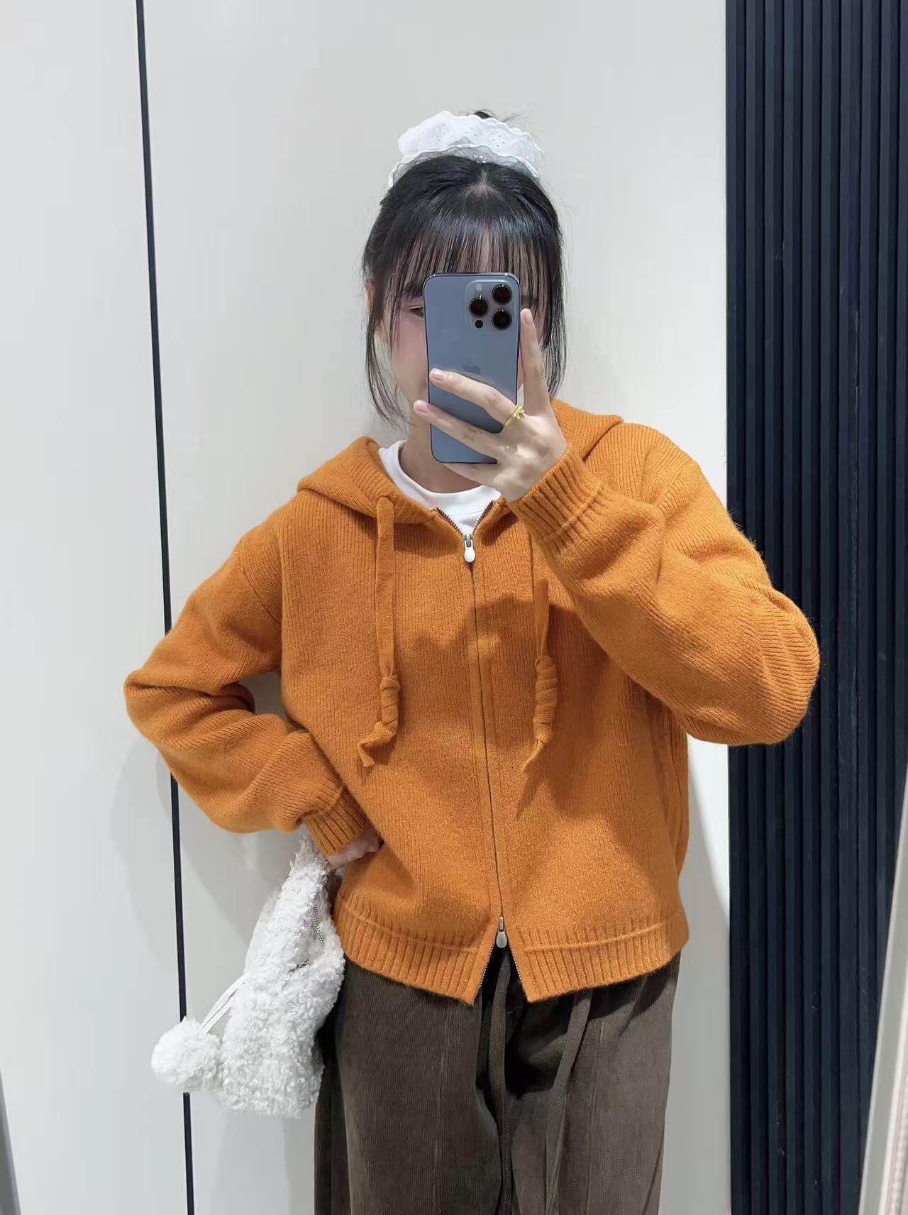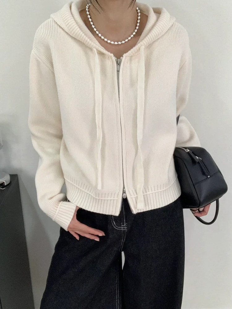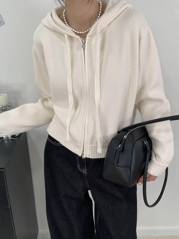 秋冬2025新款韓版雙頭拉鍊連帽毛衣女短款小個子氣質長袖上衣外套