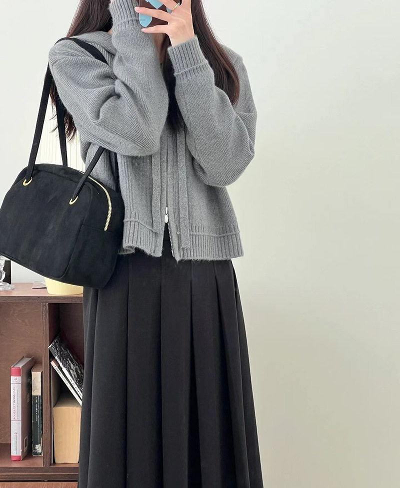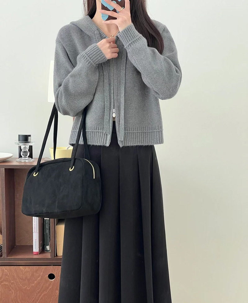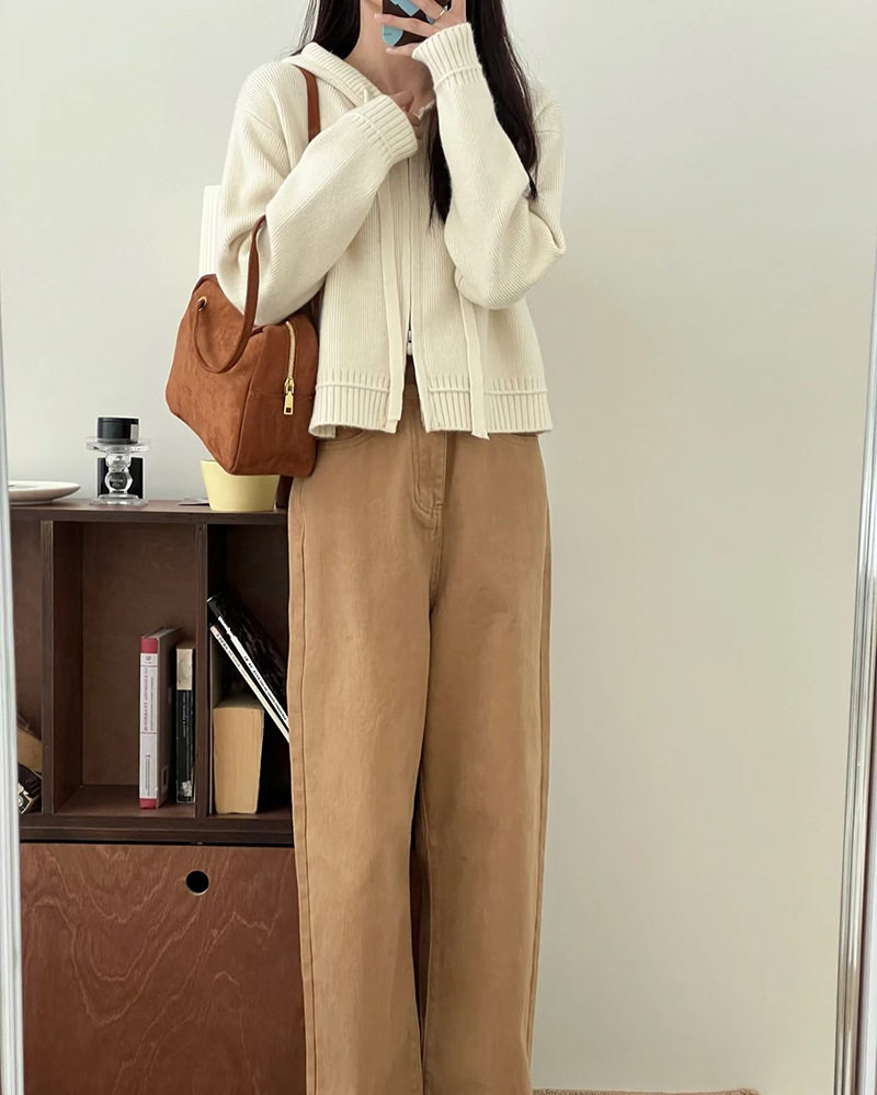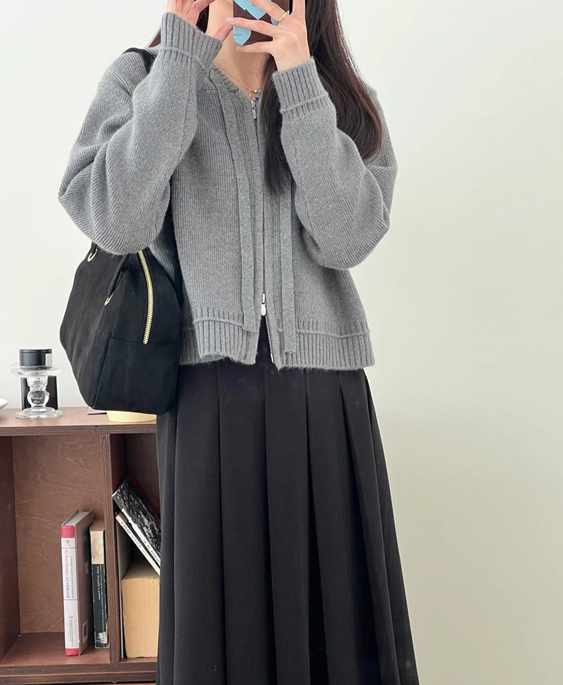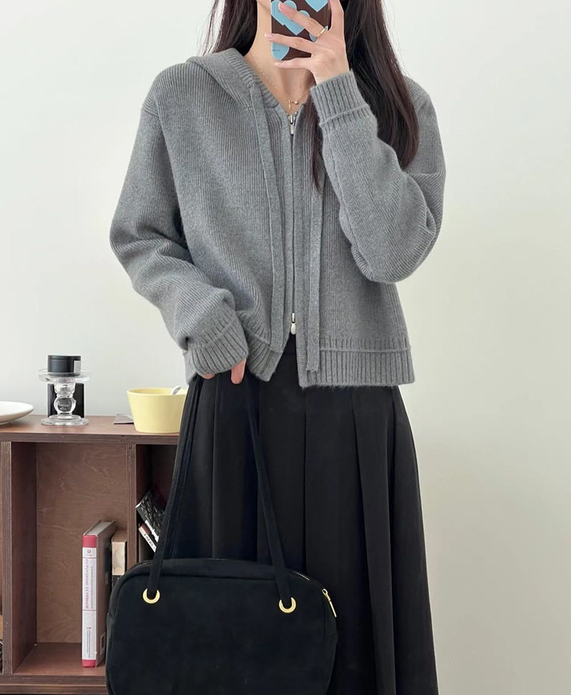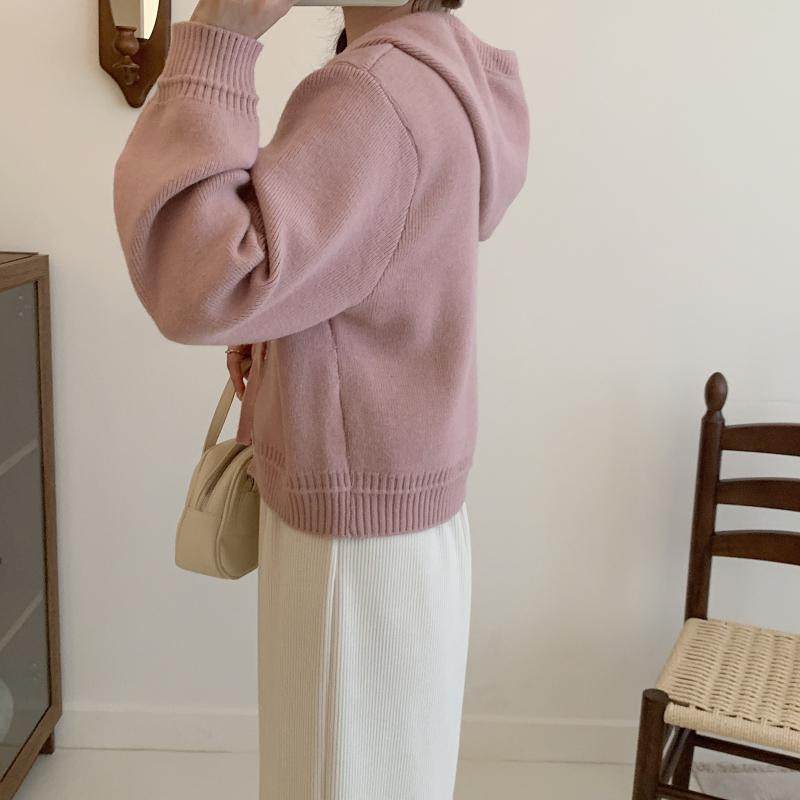 秋冬2025新款韓版雙頭拉鍊連帽毛衣女短款小個子氣質長袖上衣外套