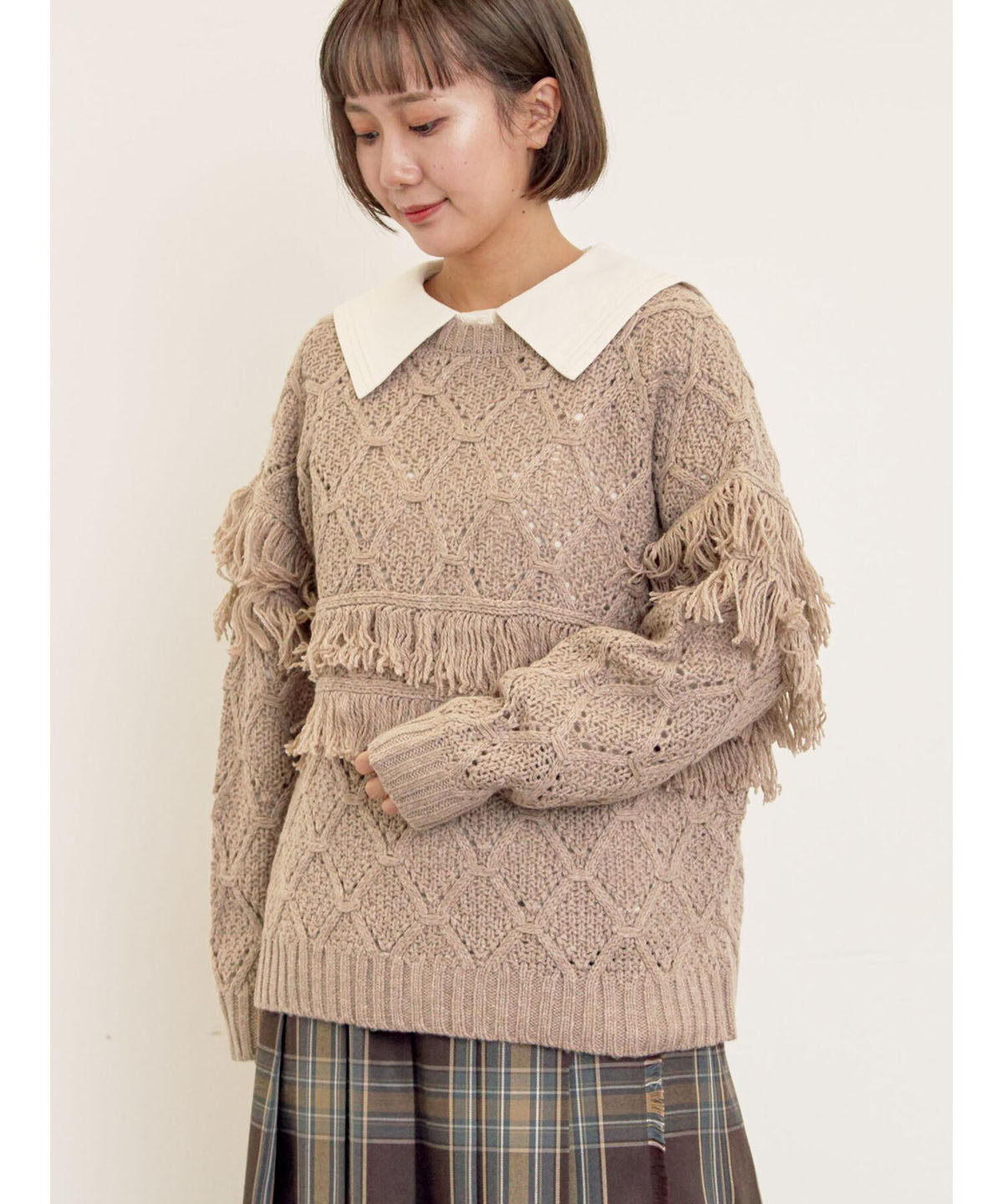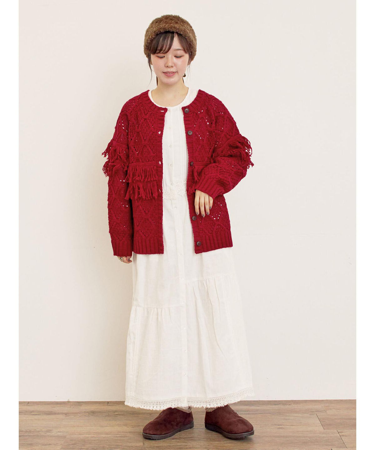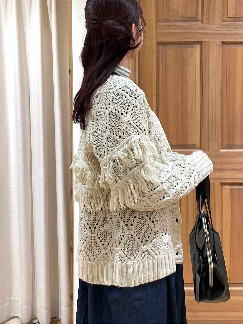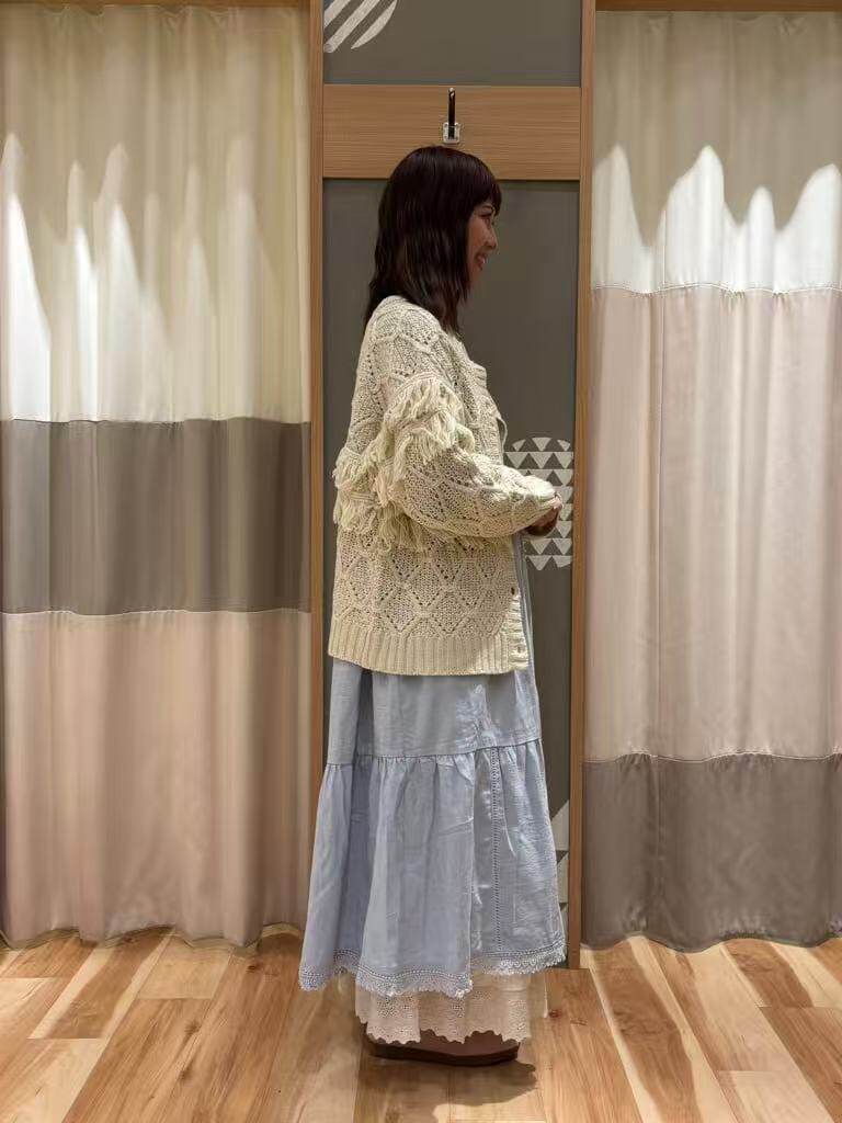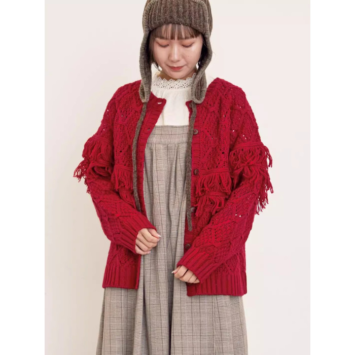 S2 秋冬新款 甜美 含30%羊毛 流蘇單排釦寬鬆毛衣外套女