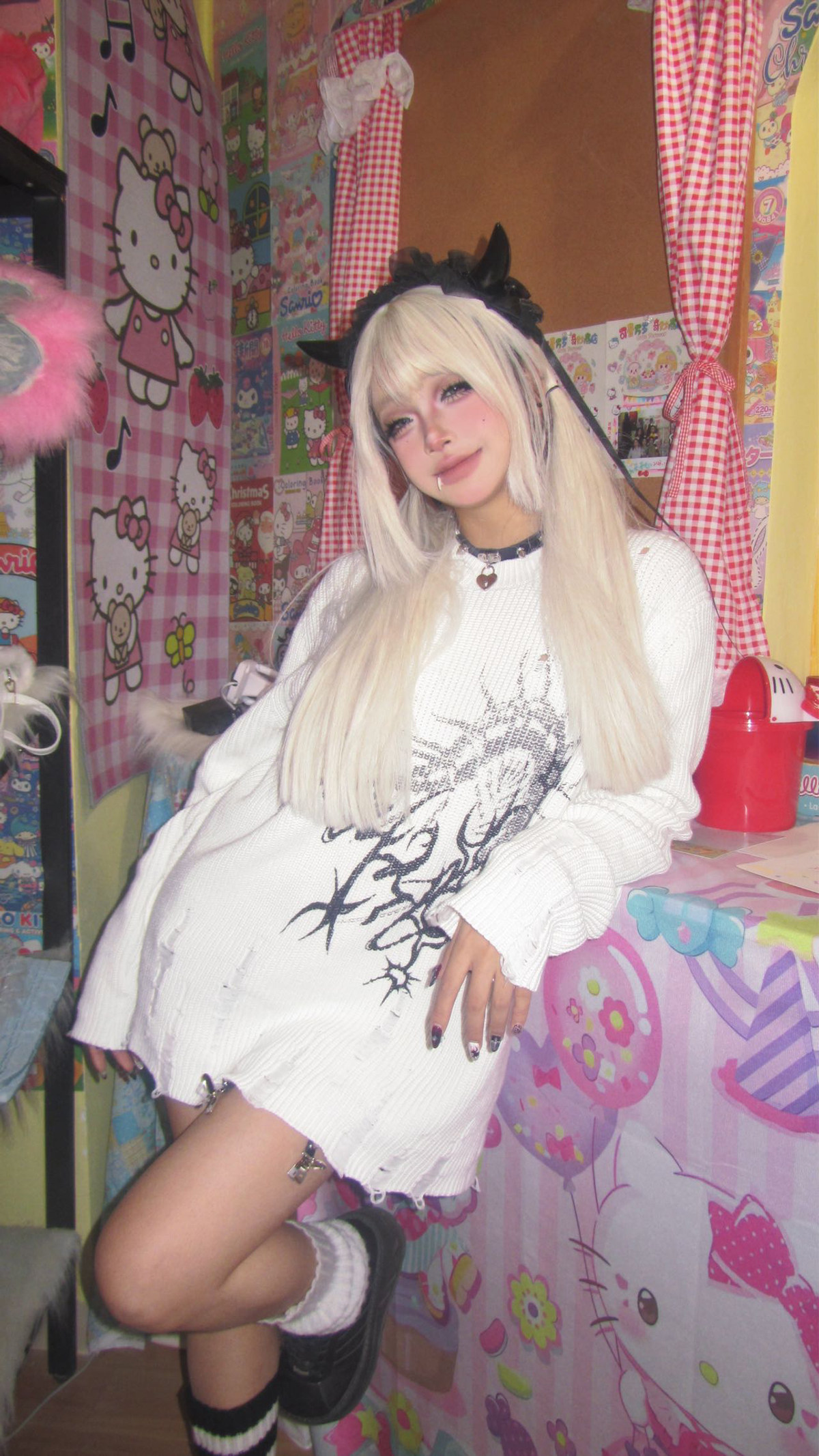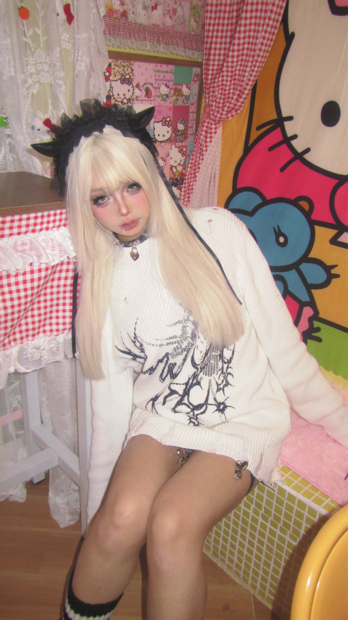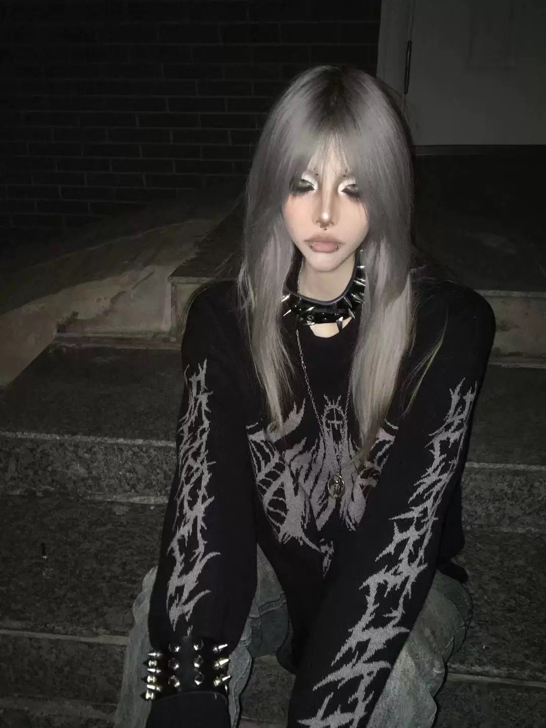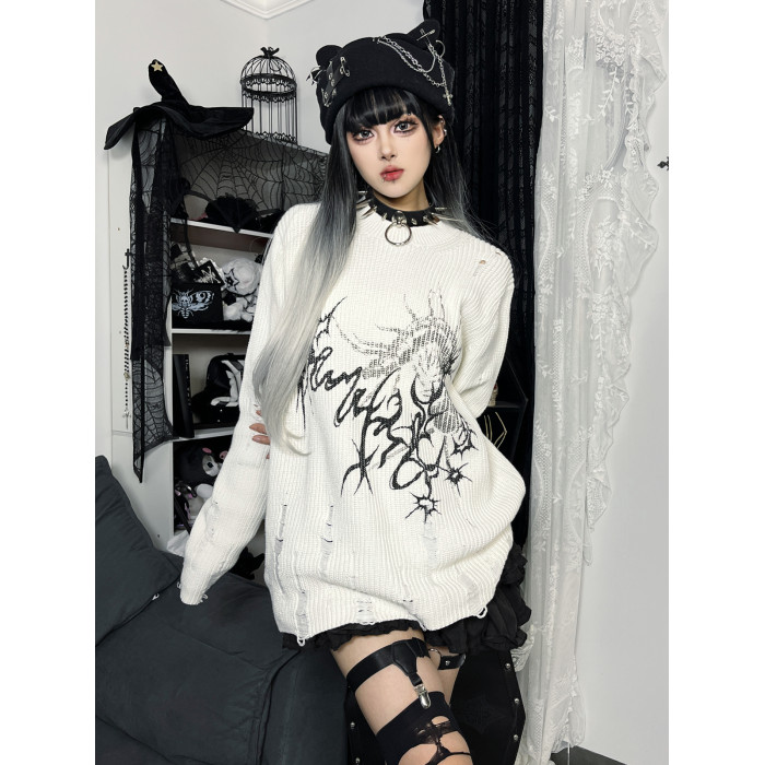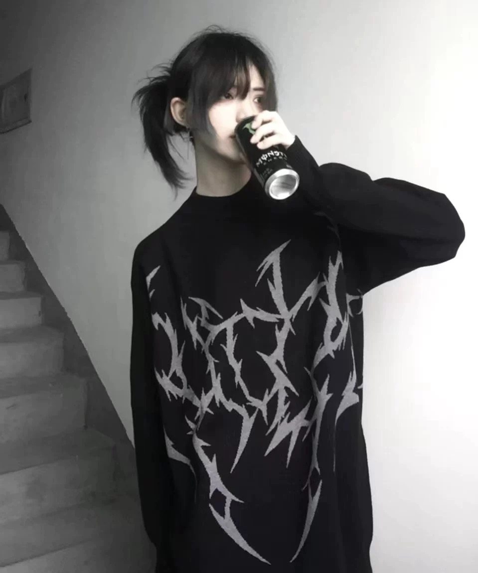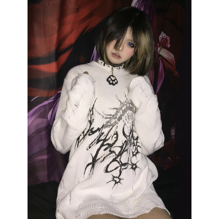 濕體&斷片小說聯名款 原創街頭亞文化套頭毛衣破洞寬鬆中性上衣