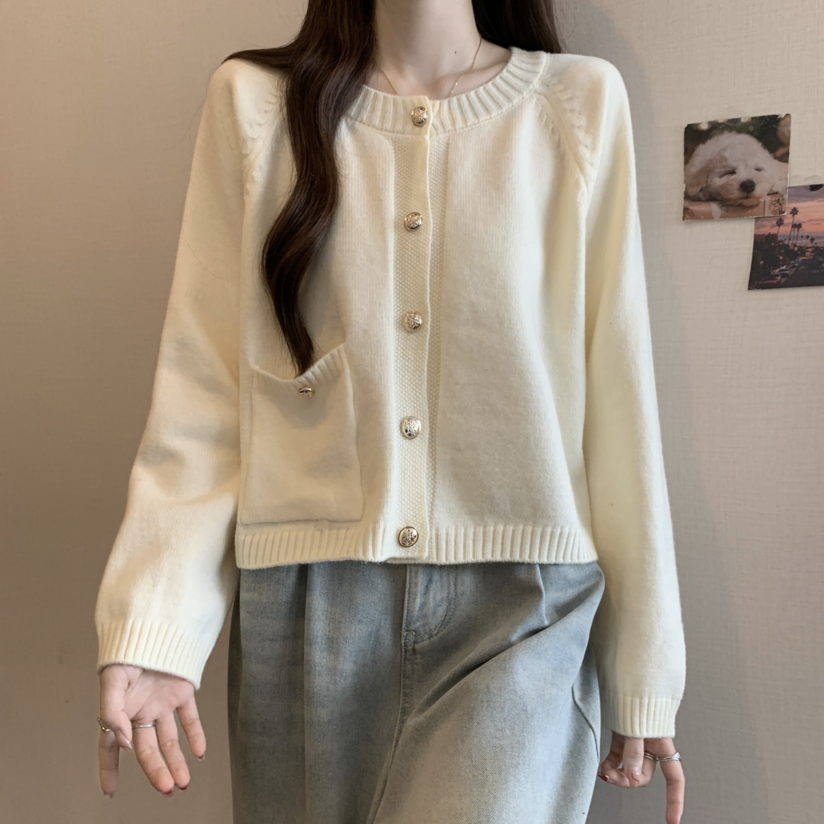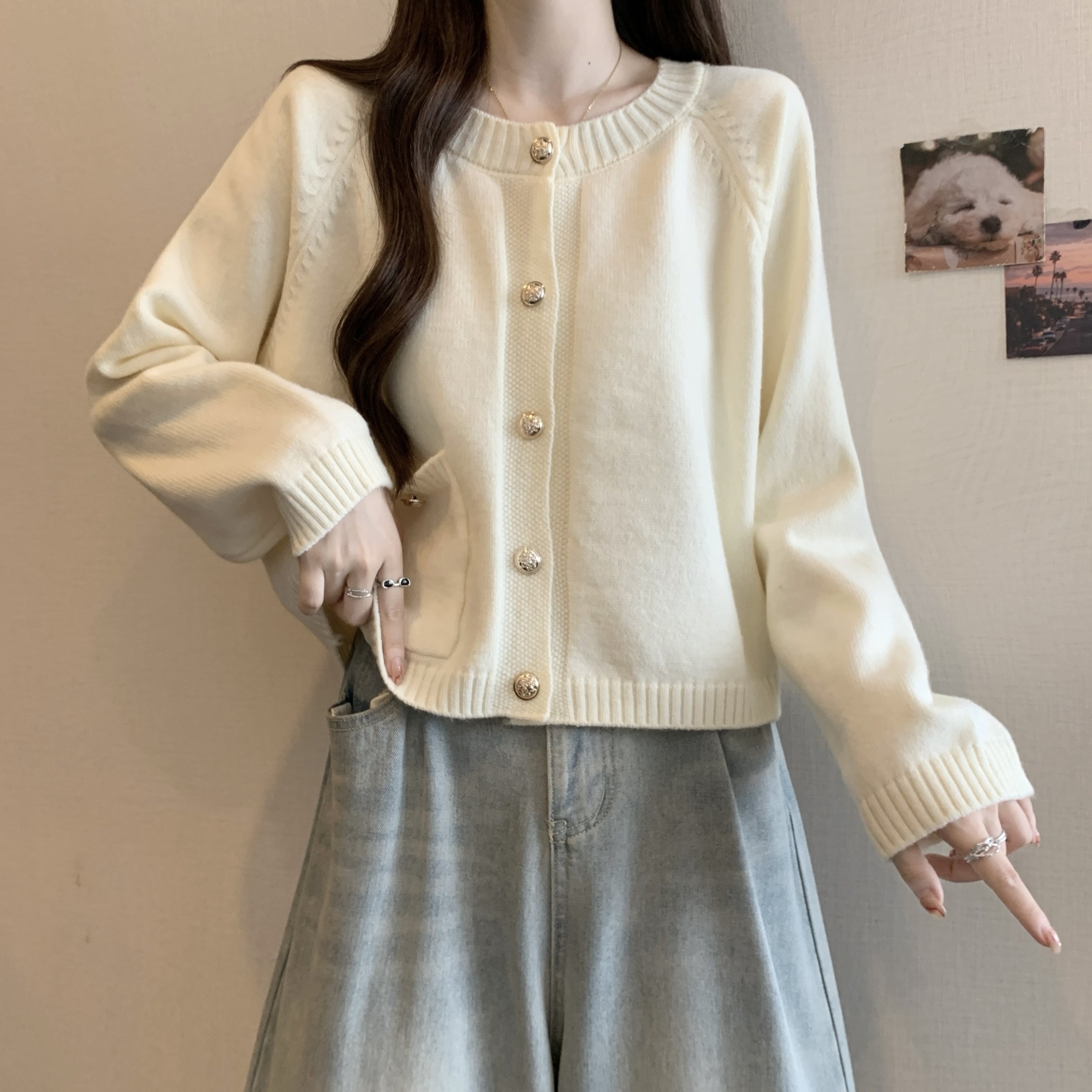 小香風毛衣開衫女2026新款外套春秋寬鬆慵嬾風針織衫短款上衣大碼