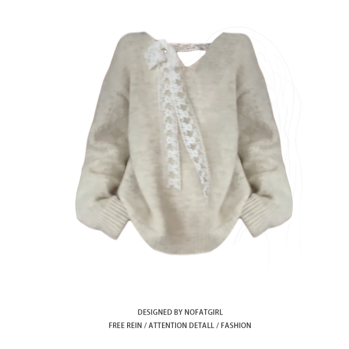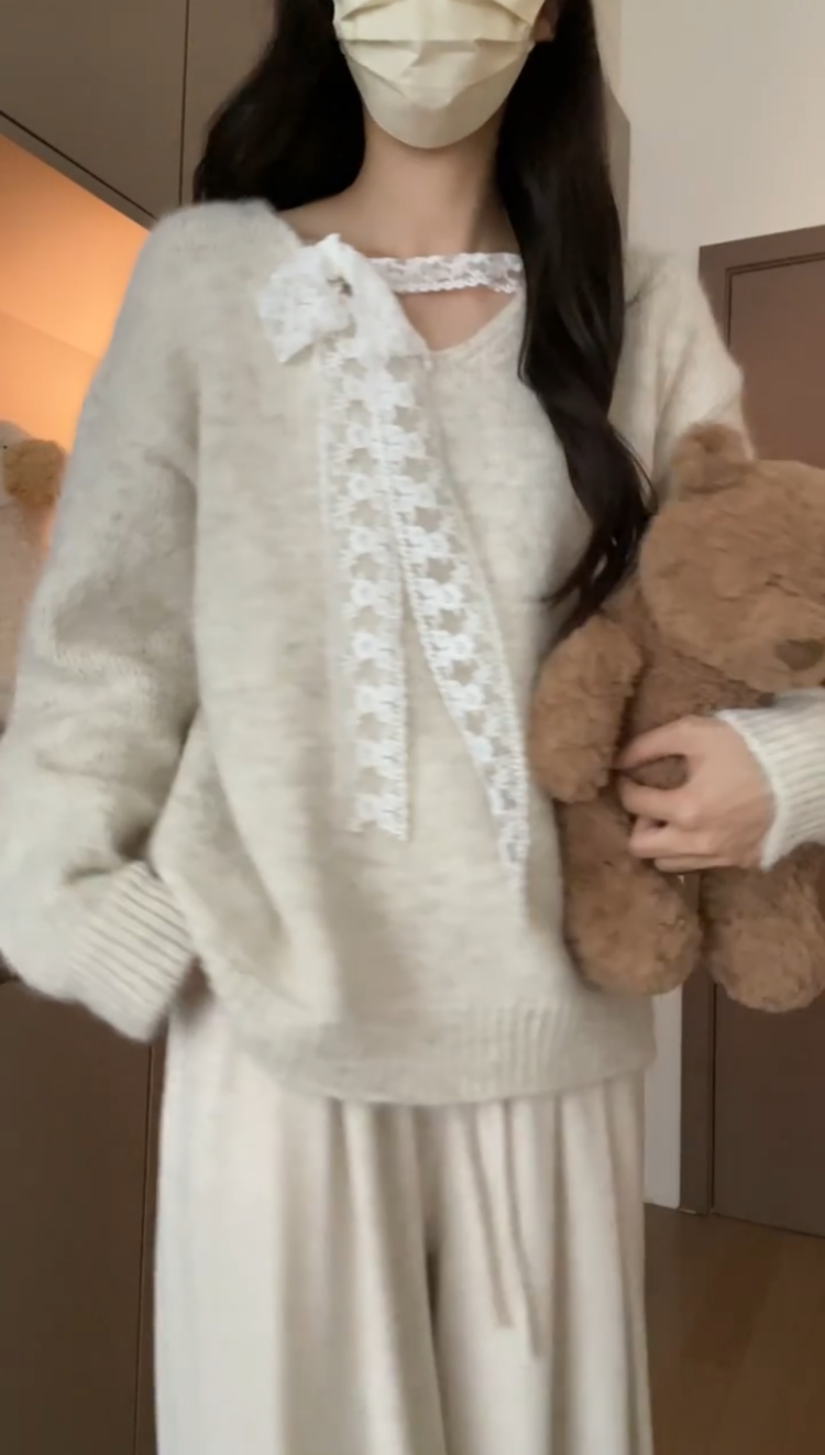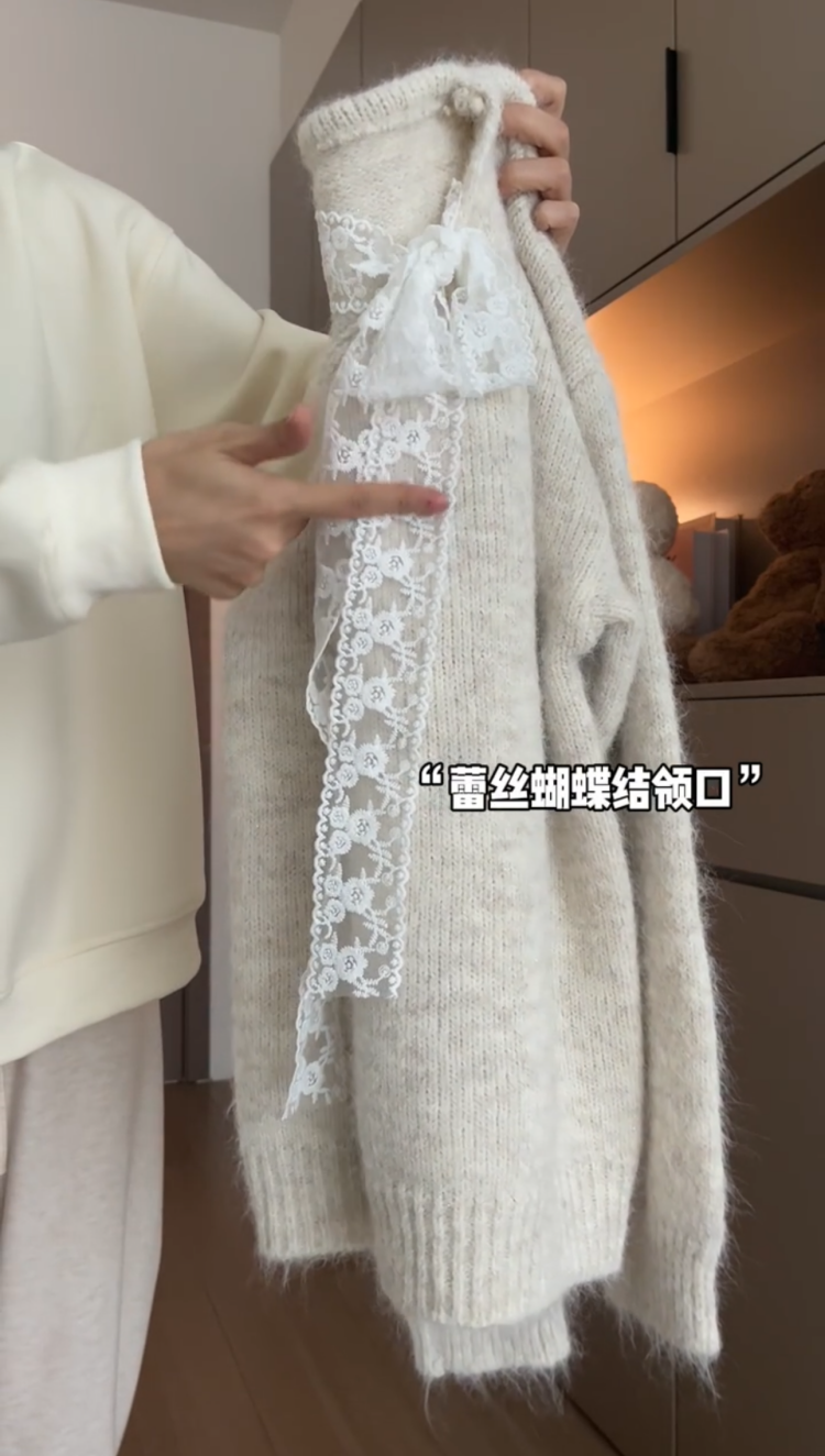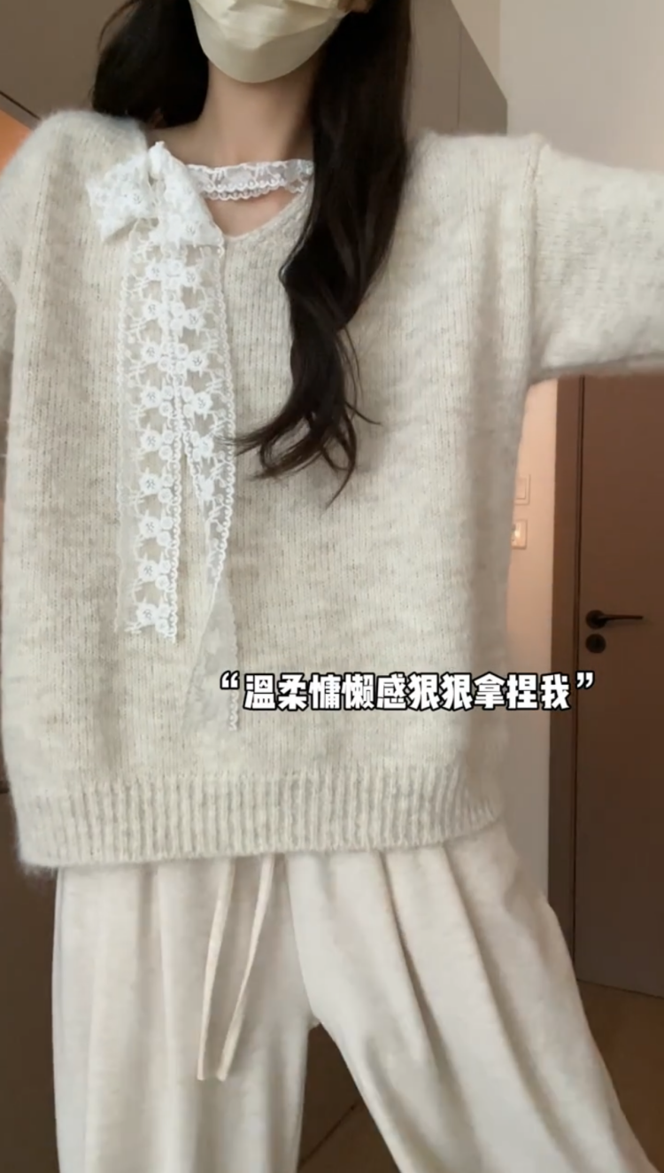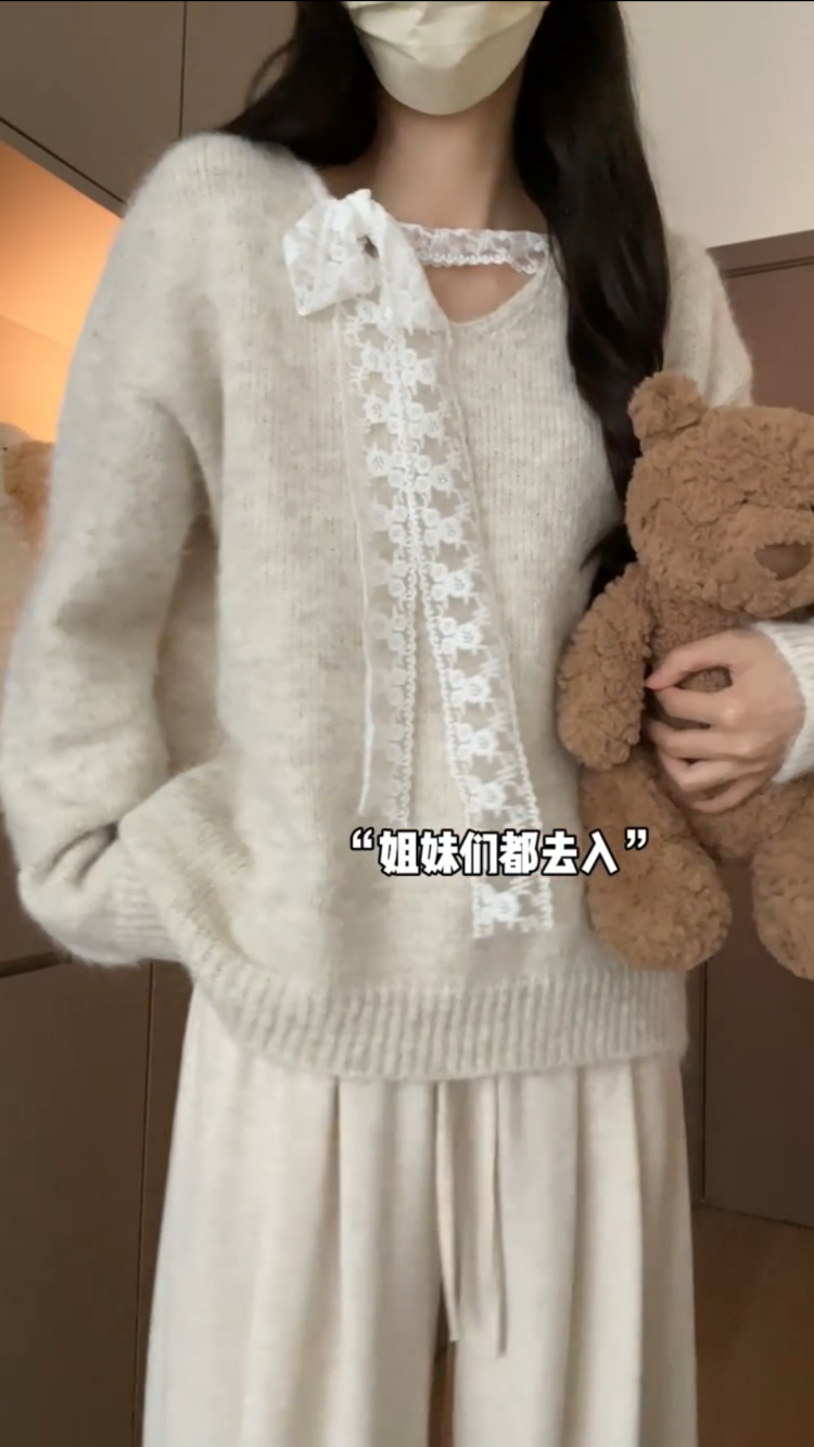 大碼胖MM溫柔風蕾絲拼接針織毛衣女秋冬季寬鬆慵嬾風甜美百搭上衣