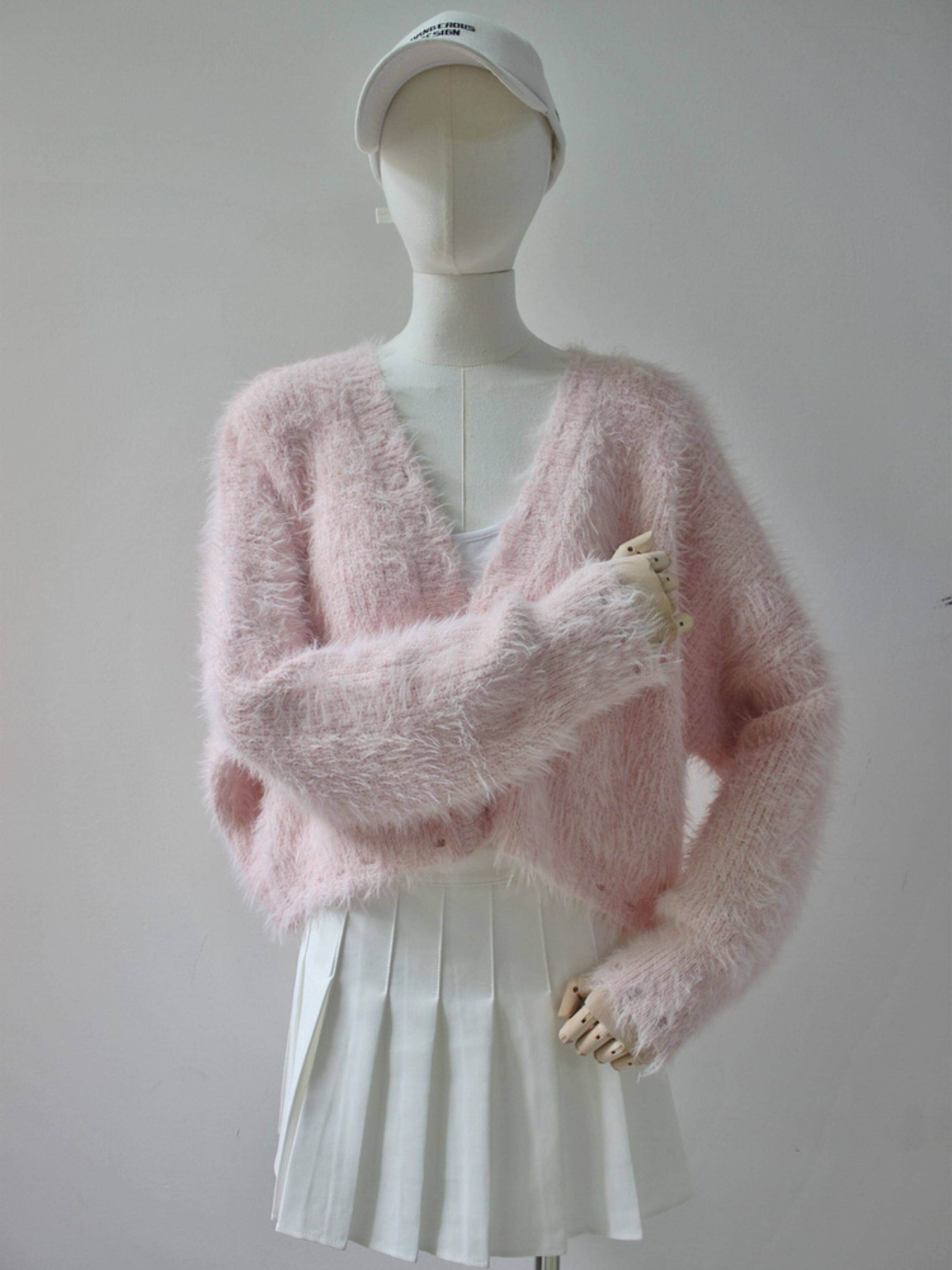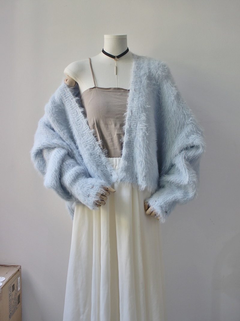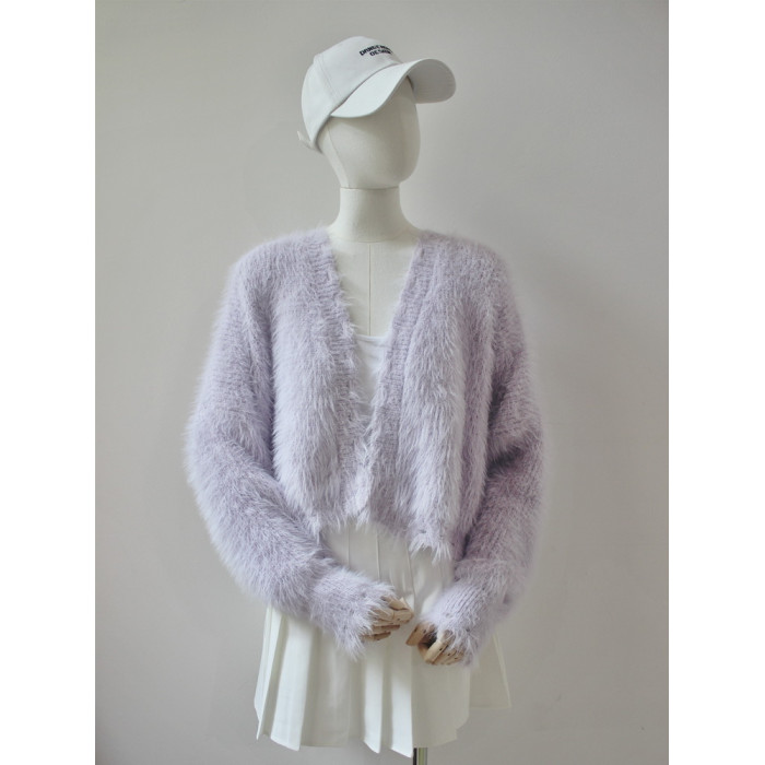 毛衫之都超好看軟糯針織開衫毛衣女春秋寬鬆慵懶仿水貂絨短款外套