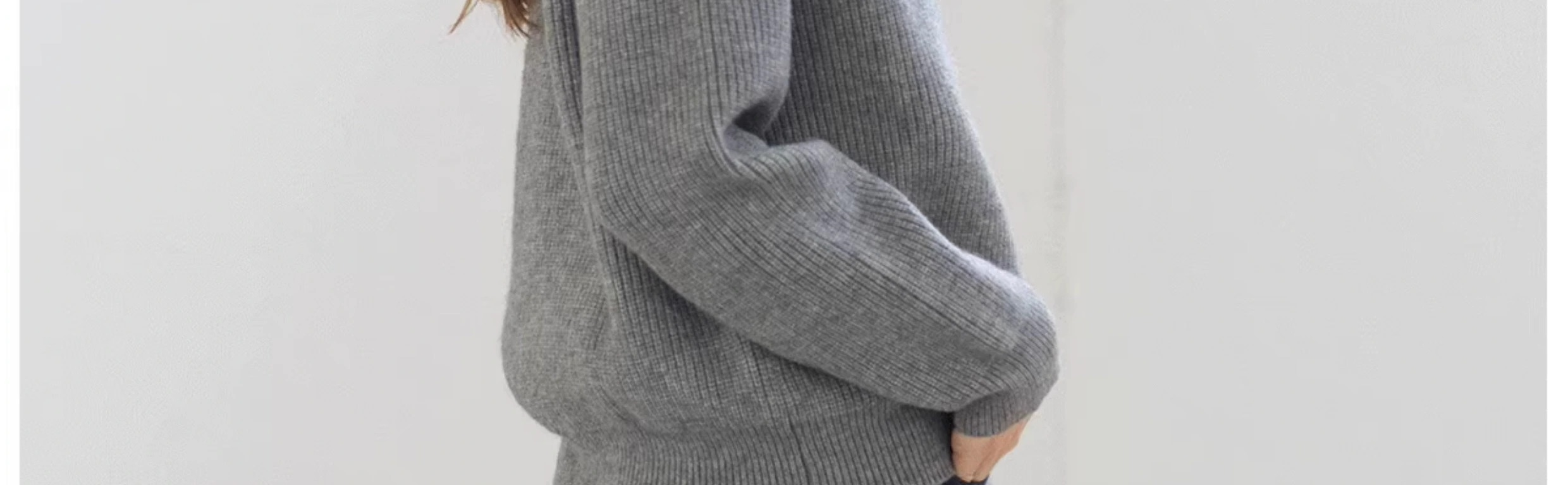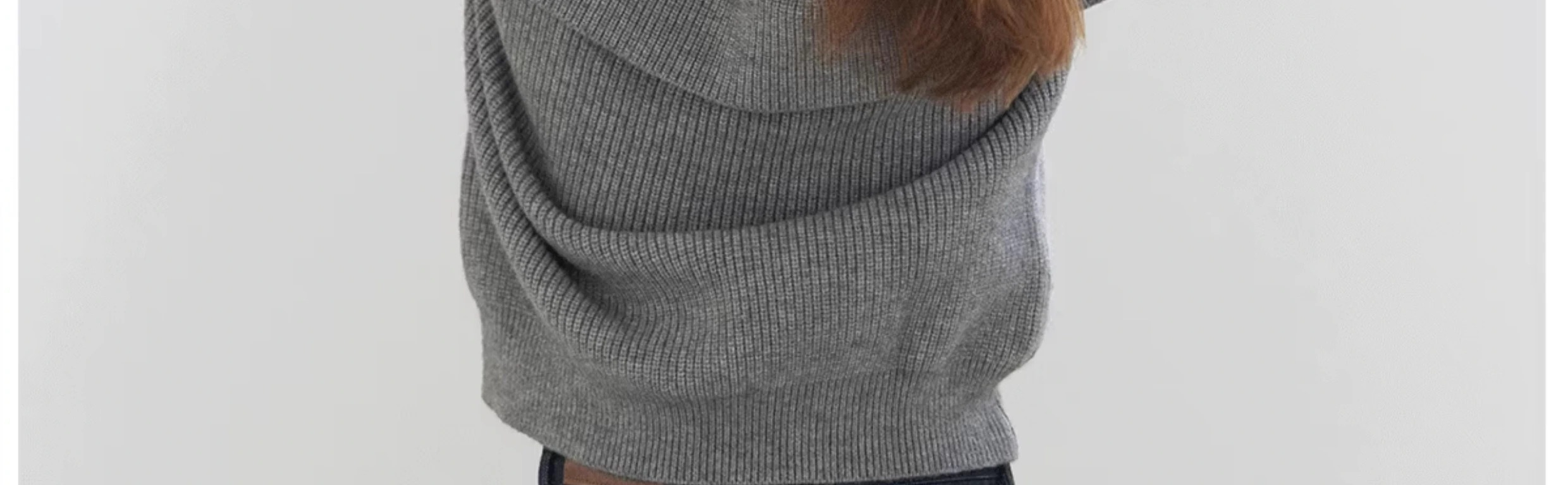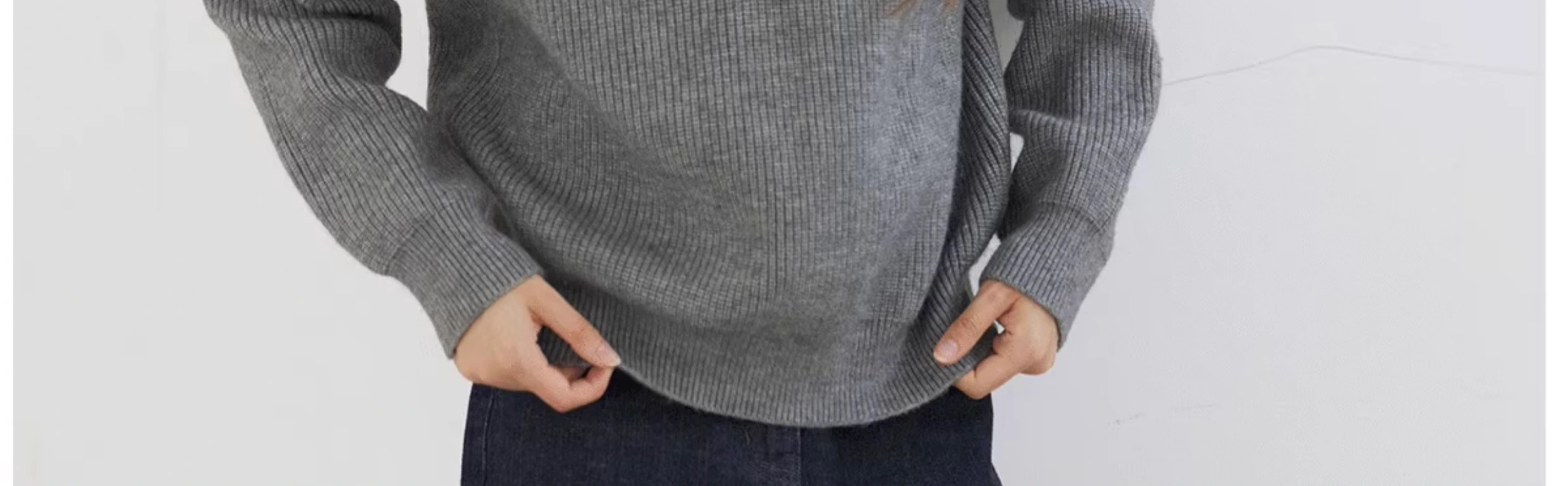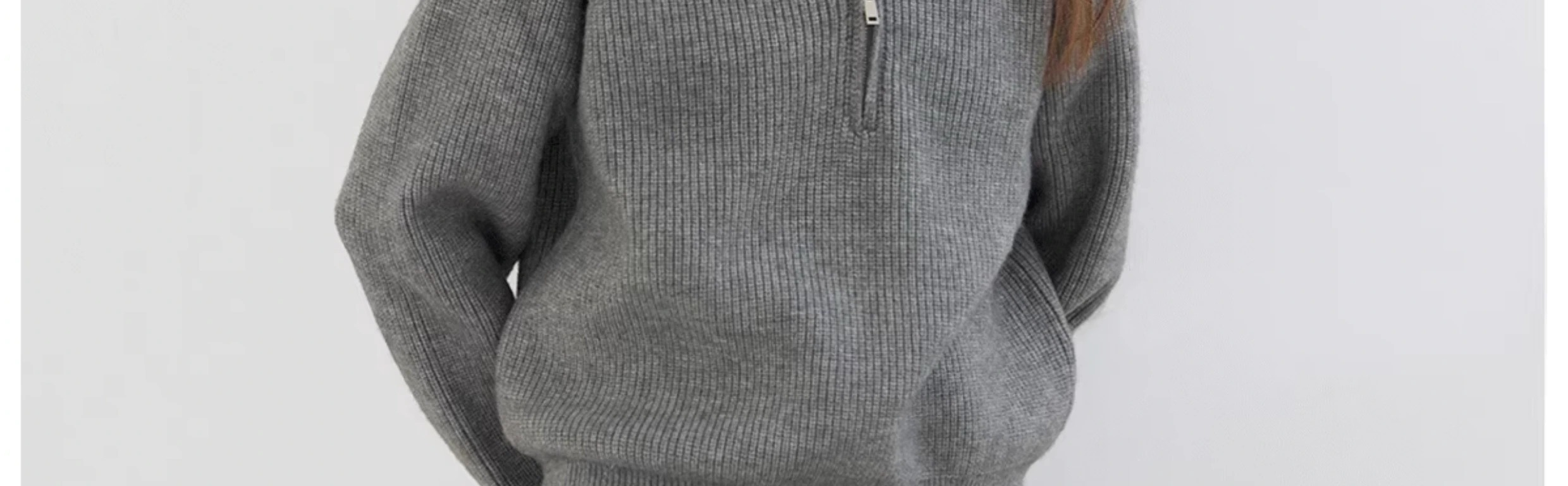 灰色復古法式海軍領套頭毛衣女秋冬寬鬆慵嬾繙領半拉鍊針織衫上衣