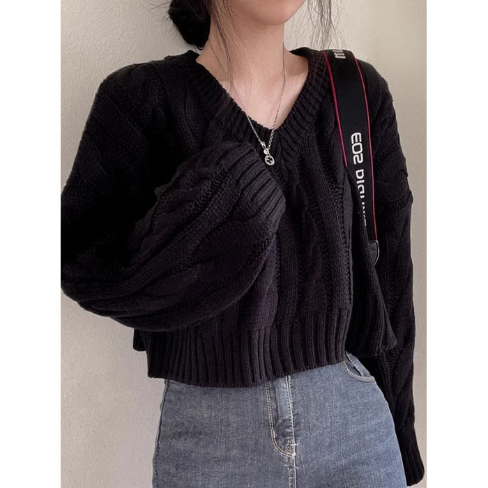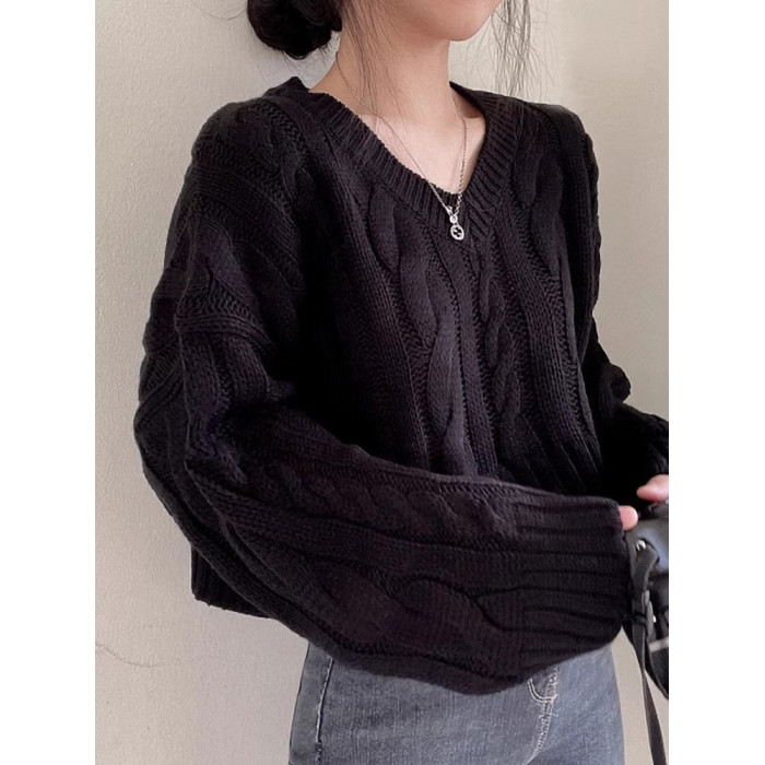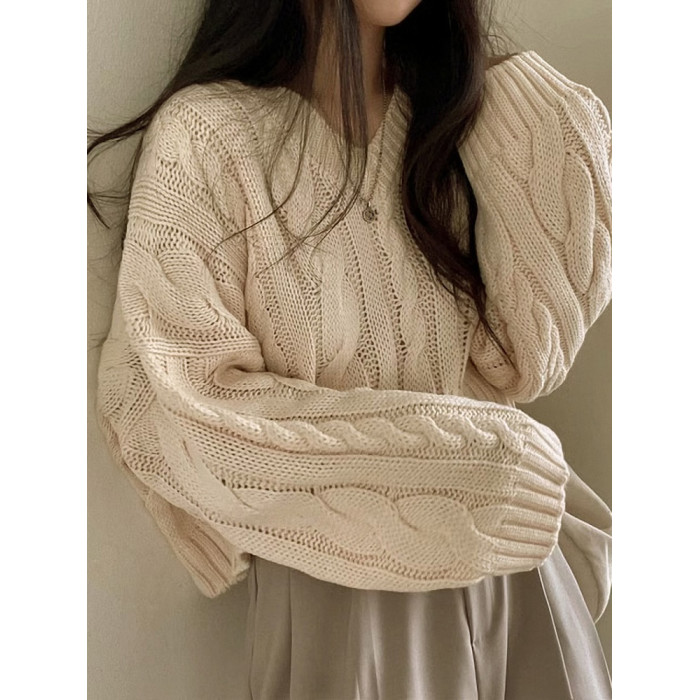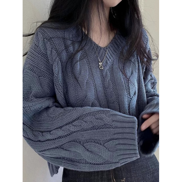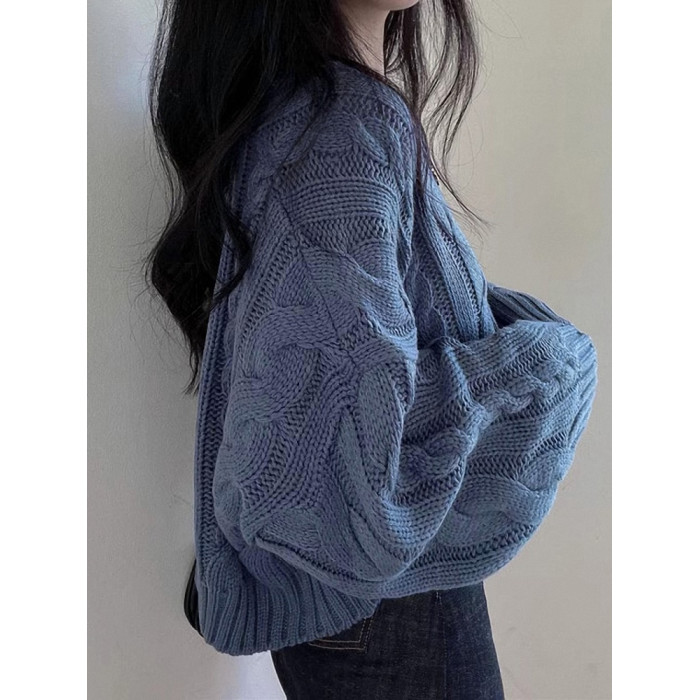 秋冬女裝批新款髮chic休閒復古長袖外穿寬松慵懶針織麻花短款毛衣