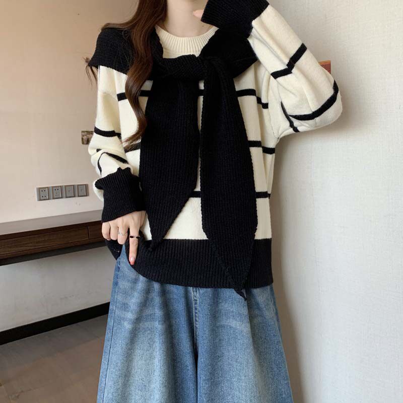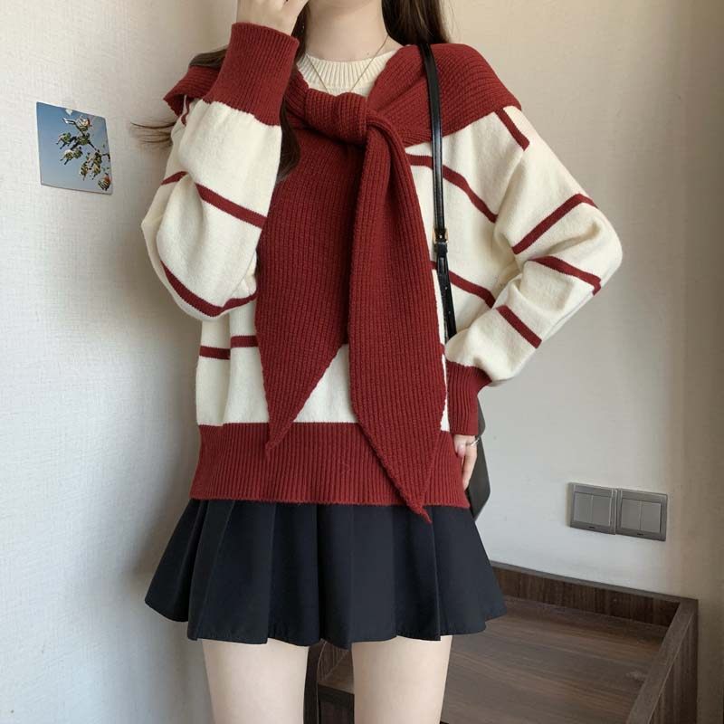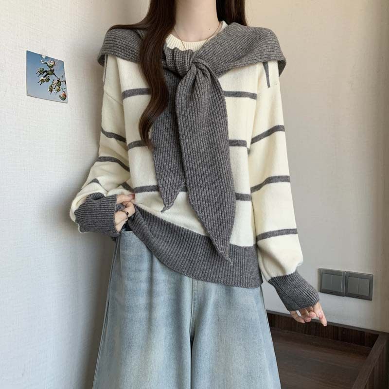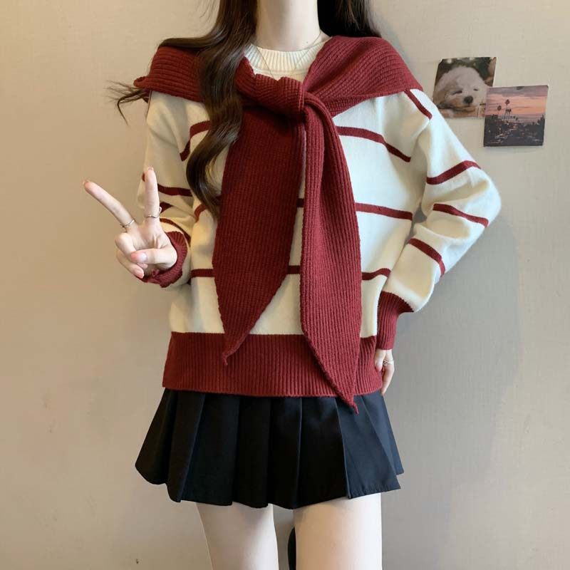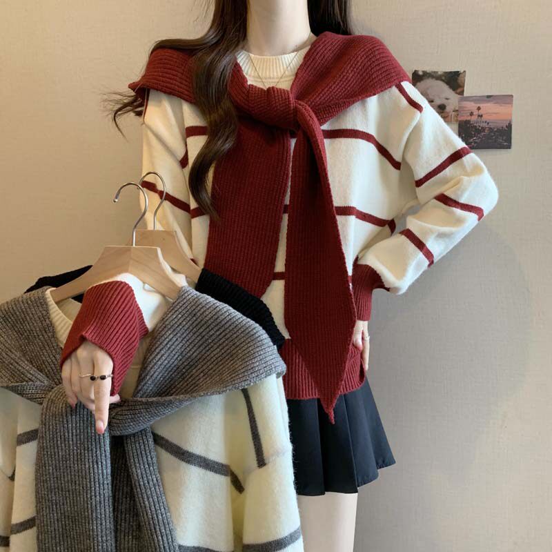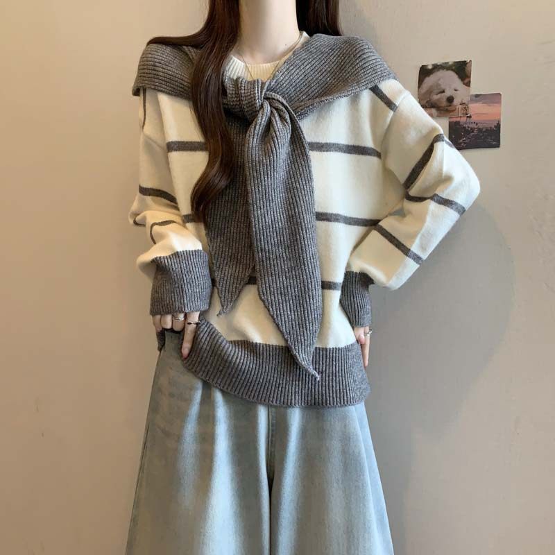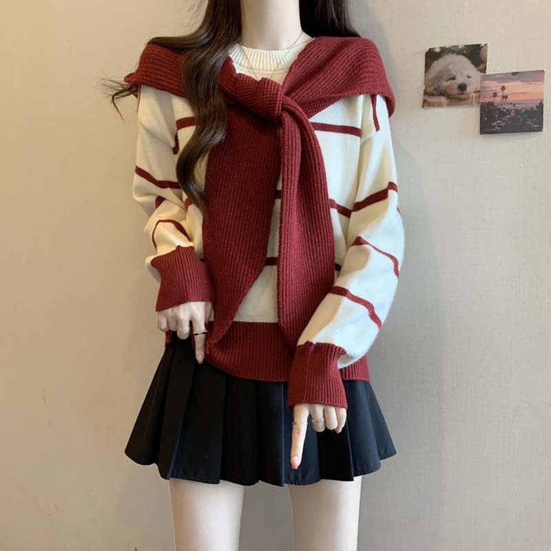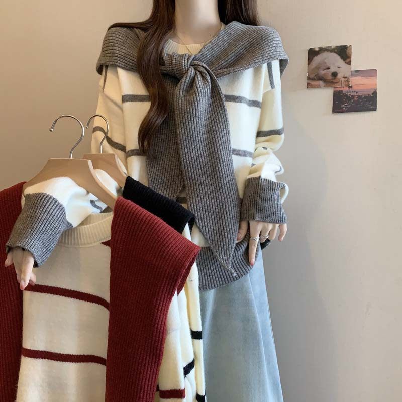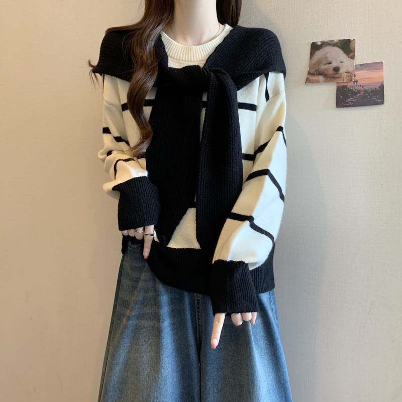 春秋搭配一整套女大碼微胖mm高級感時髦洋氣針織衫毛衣披肩兩件套