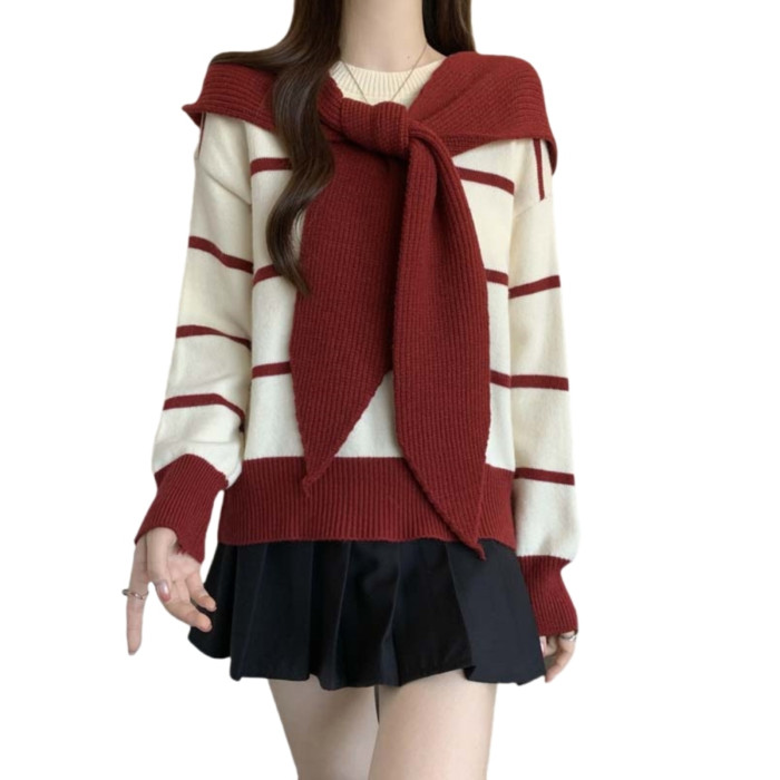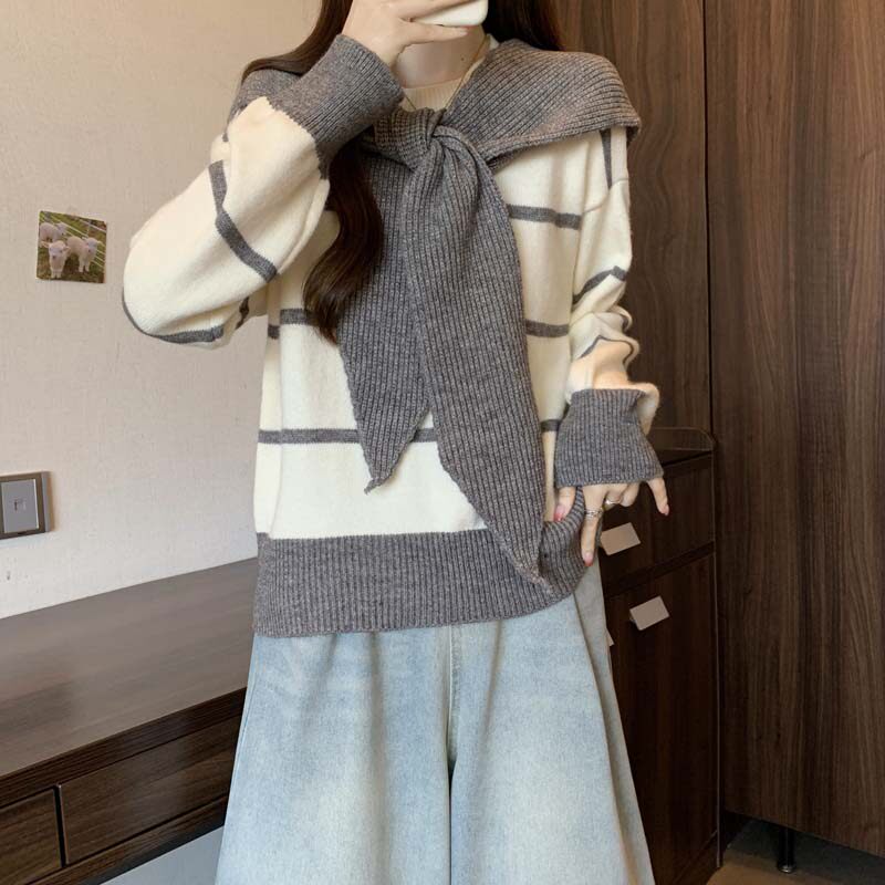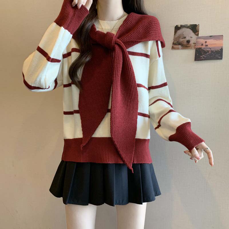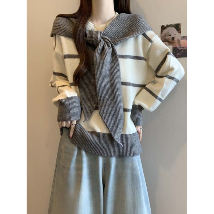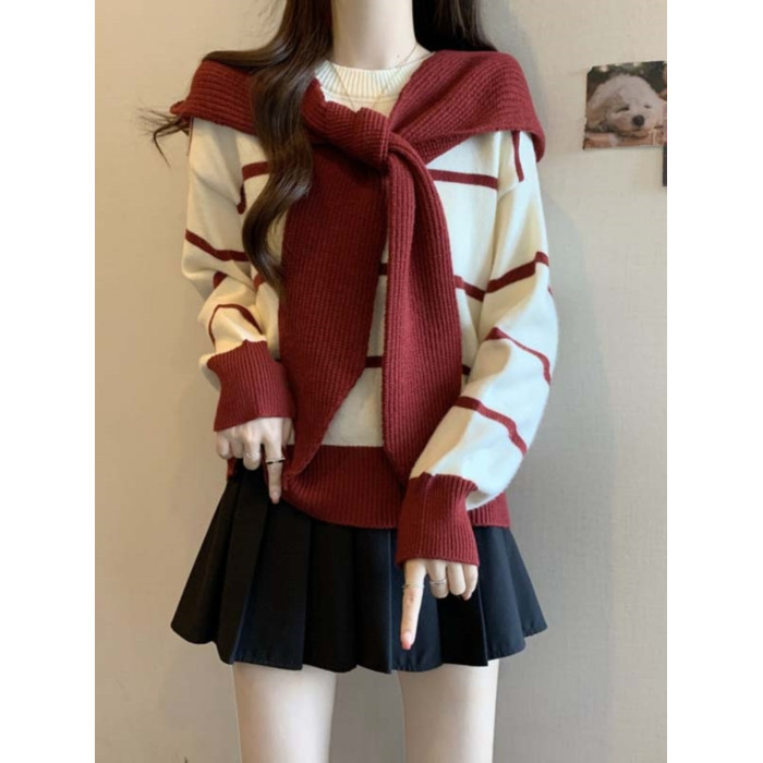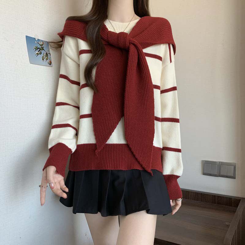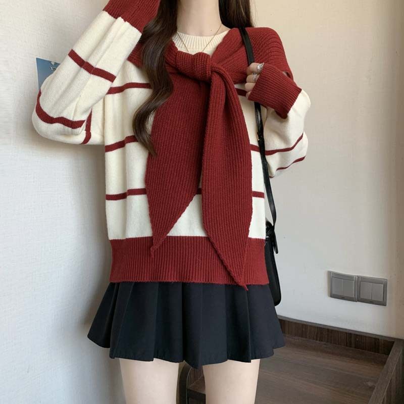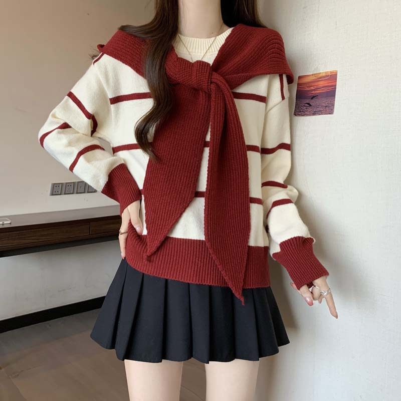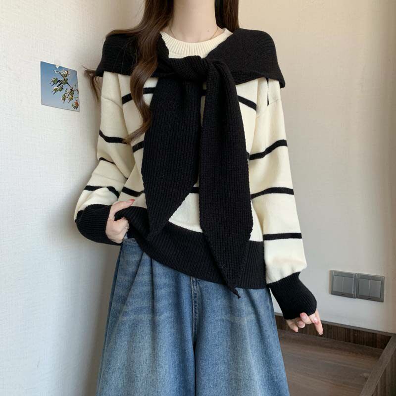 春秋搭配一整套女大碼微胖mm高級感時髦洋氣針織衫毛衣披肩兩件套