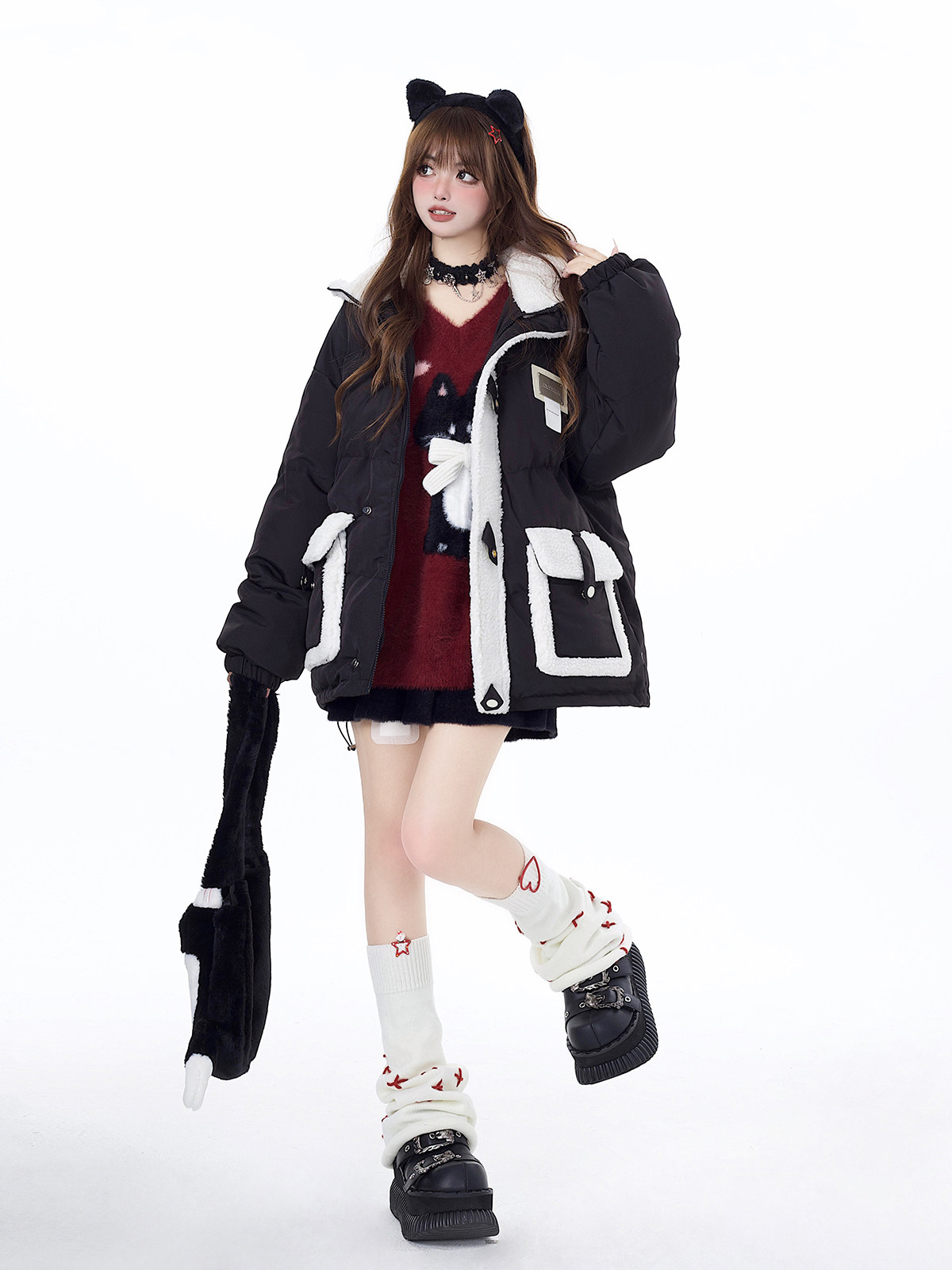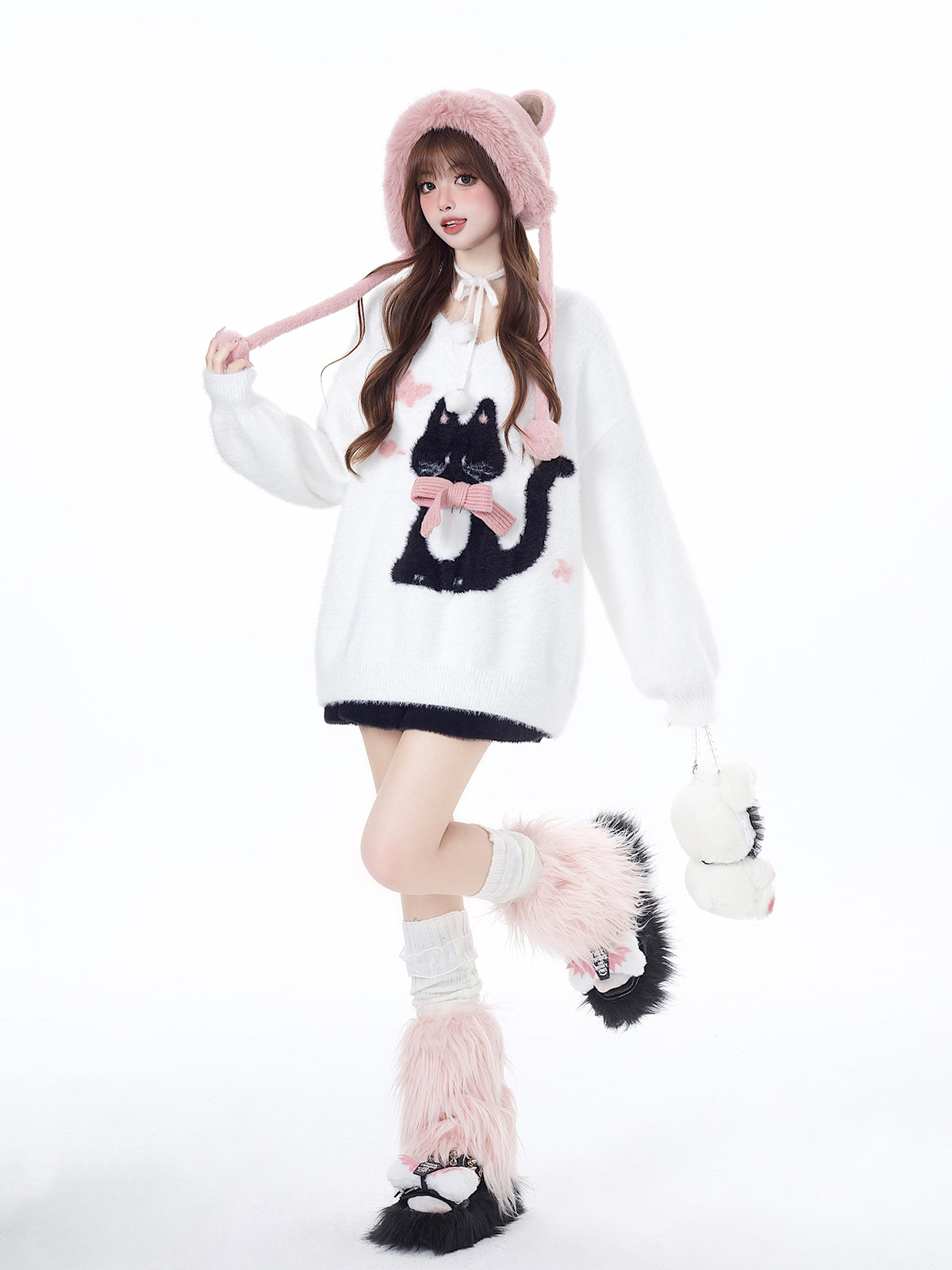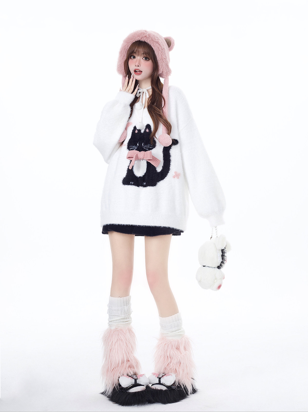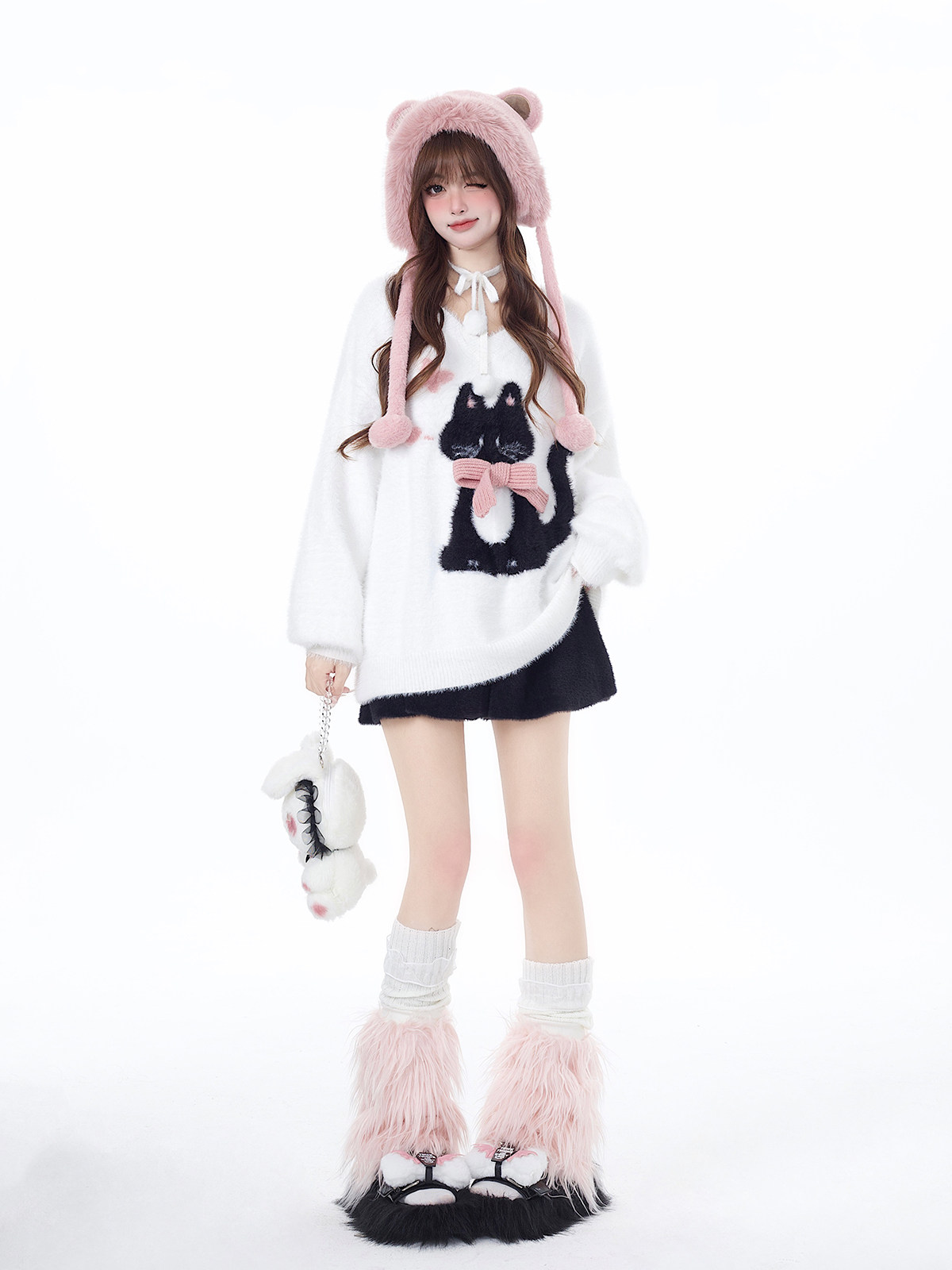 crazygirl【慵嬾小貓】原創蝴蝶結軟糯秋冬新年紅寬鬆內搭毛衣
